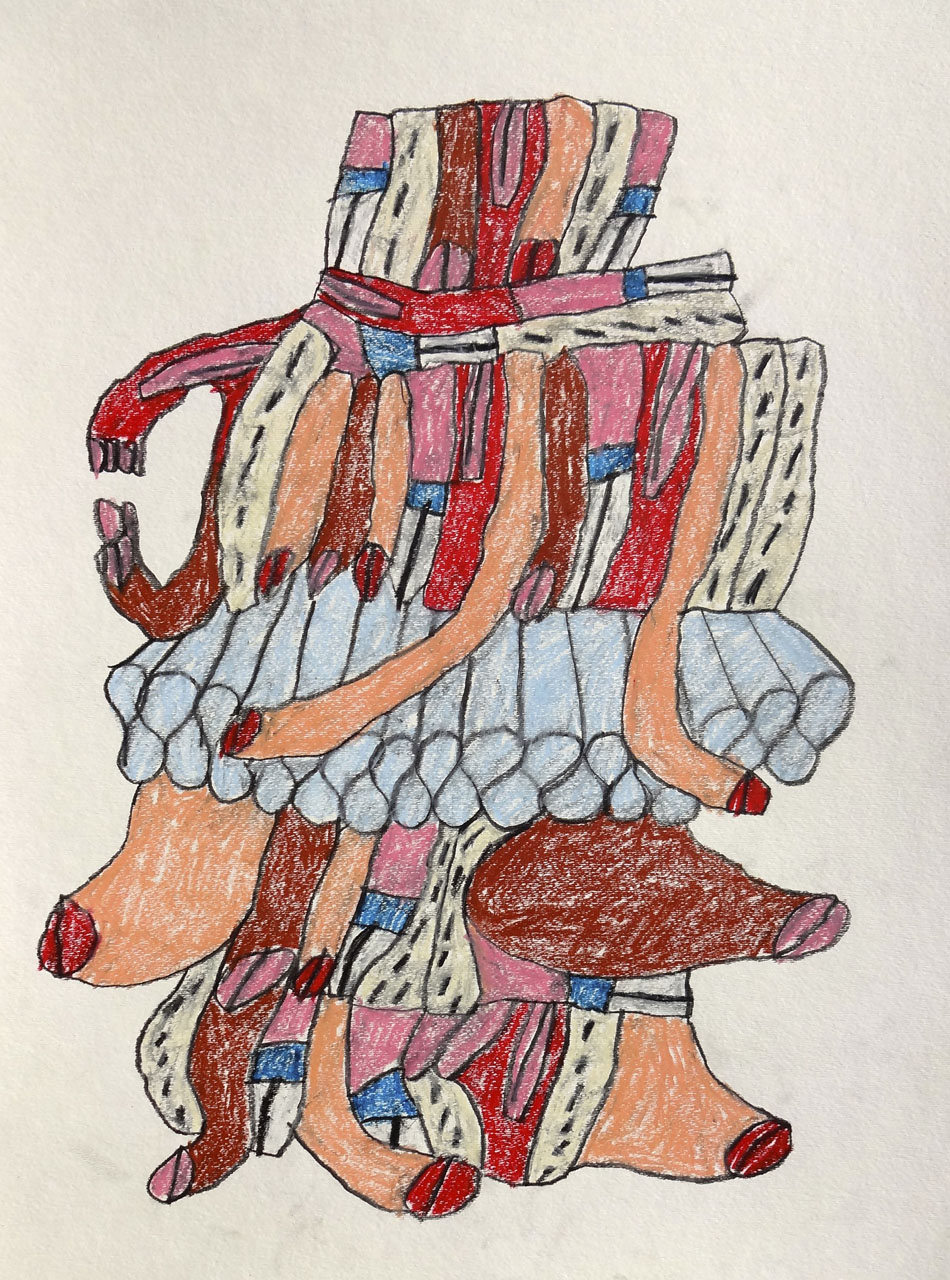 The Hole is proud to present an exhibition of new drawings by Adam Green in our Gallery 3 space. These works explore the female form in unexpected ways, using oil crayons and an assortment of pencils and pens.