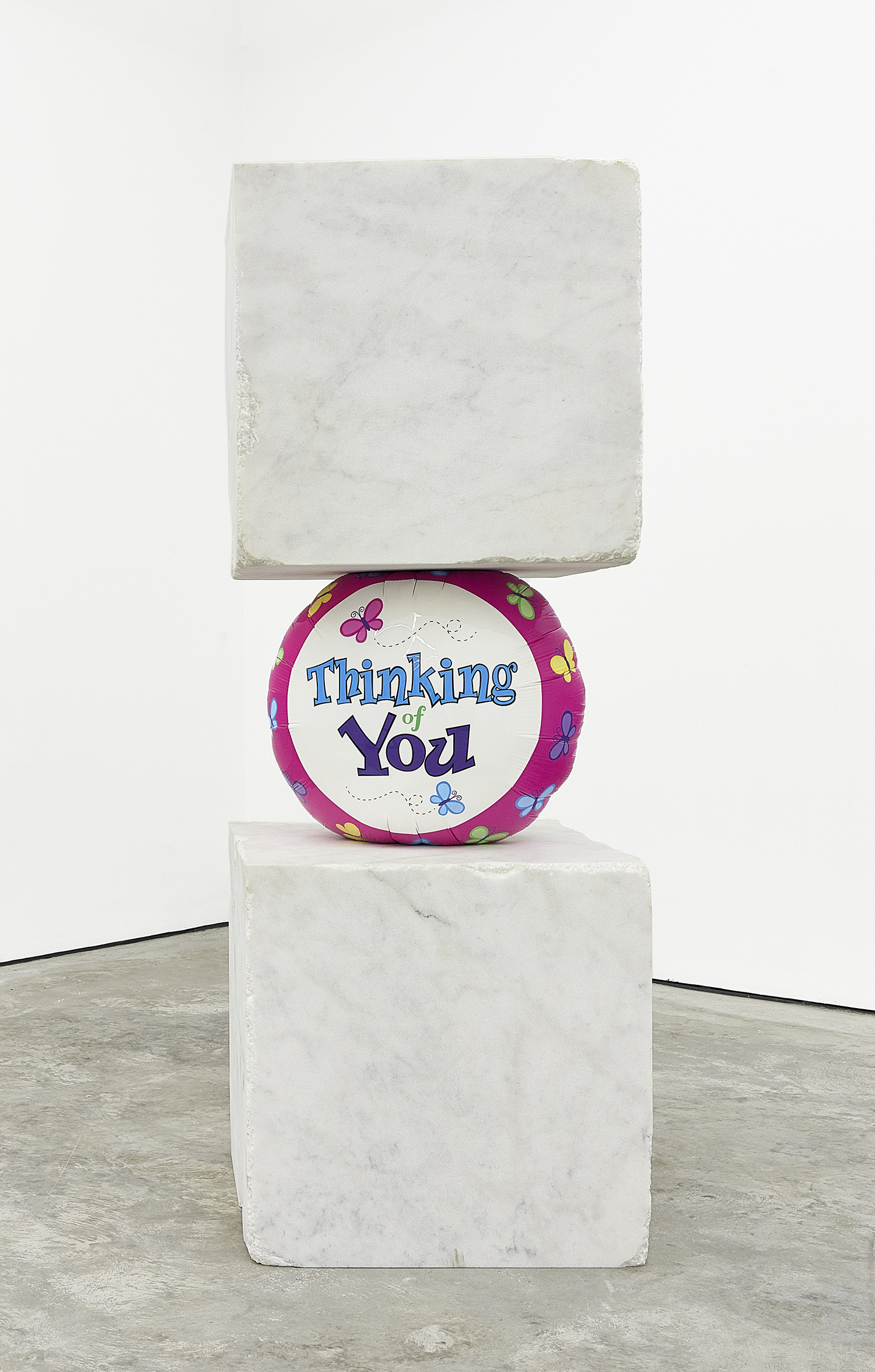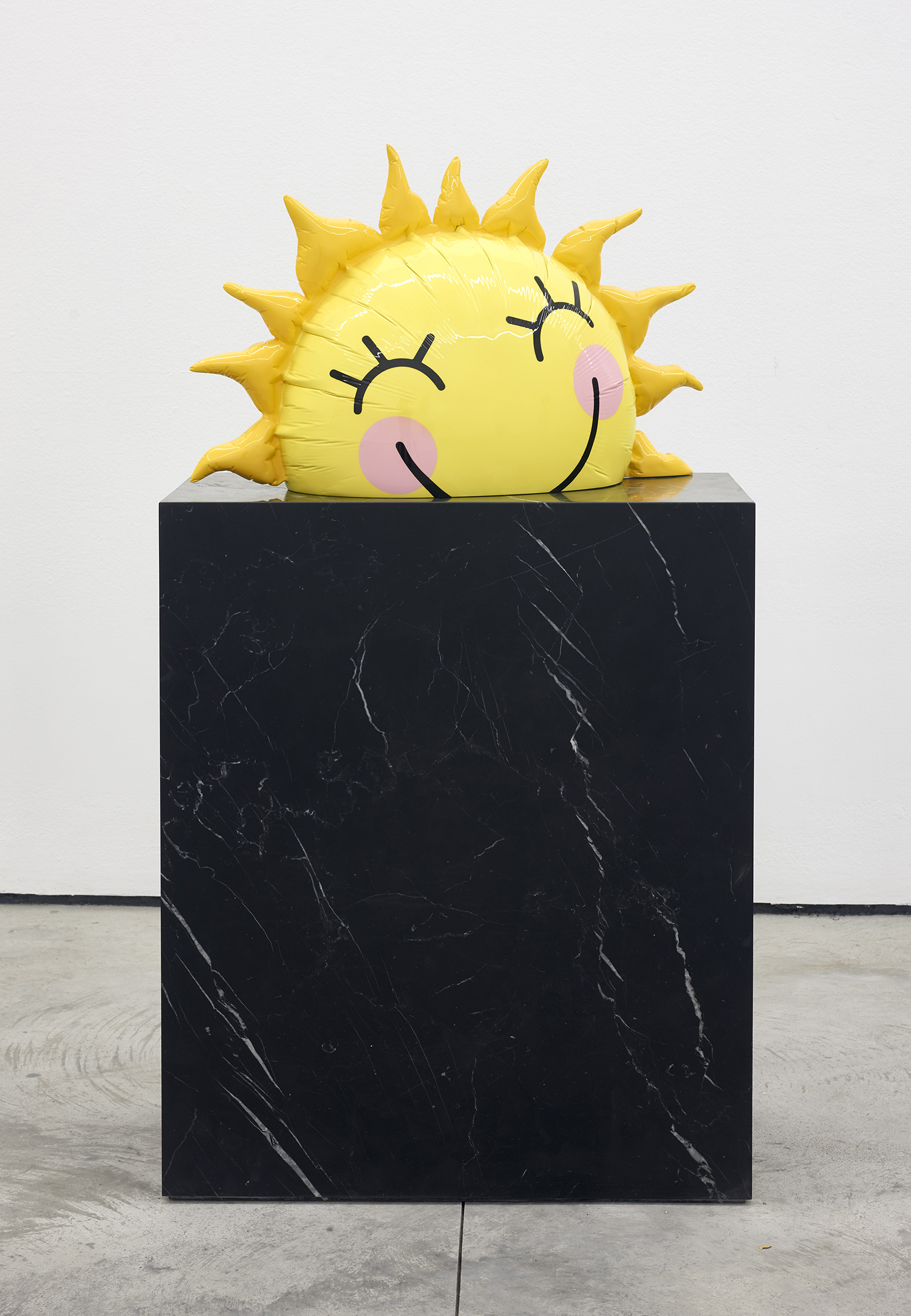 Let’s Celebrate; like the sunny sculpture above we are tempted to rejoice, and like the sun balloon above we sink inevitably into the void and annihilation. With nine new sculptures involving these cast resin and car painted balloons Smith deflates their deadpan optimism and pushes tragedy past its edge and back over into comedy.