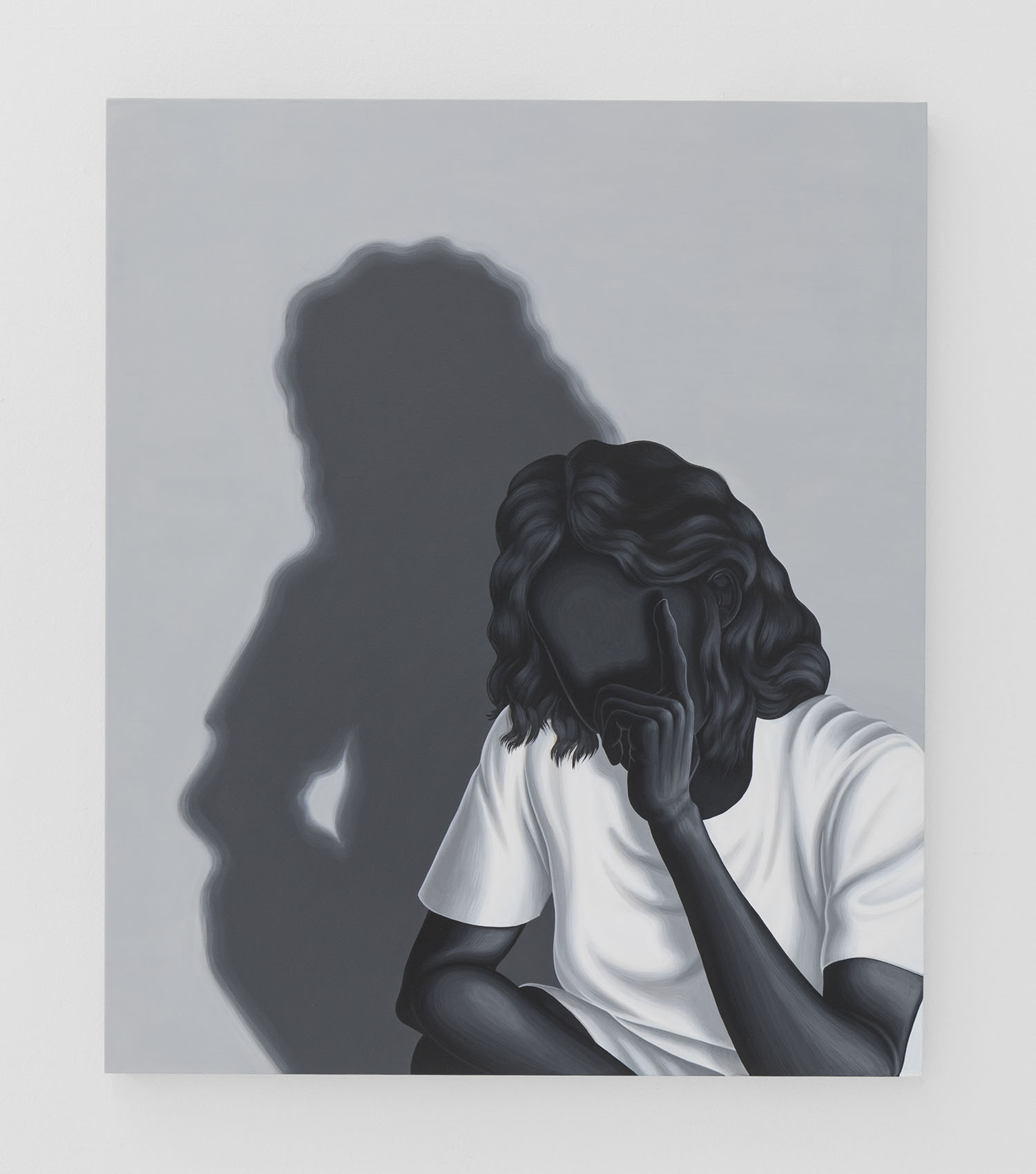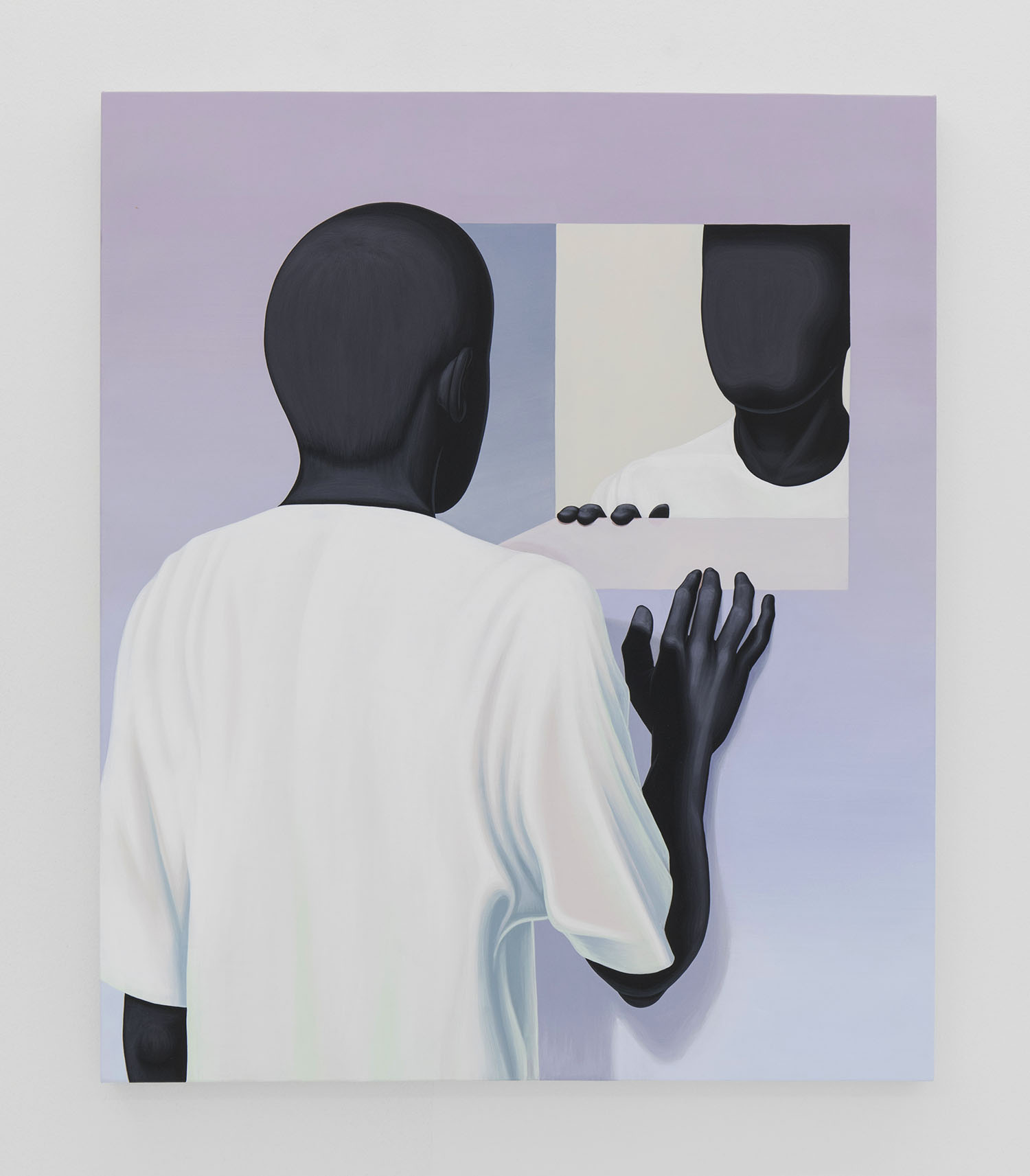 His titles try to ease the tension: “Forgot My Wallet” negates the intimacy depicted of one figure carrying the other, while “Picnic with a Future Ex” is glib. “Audition in the Frozen Food Section” emphasizes the performativity of romantic relationships as a theme, but the detached vibe doesn’t match the intense and dramatic works: as in the layers and layers of acrylic built up to form these precise gradients, there’s a lot going on beneath the surface.