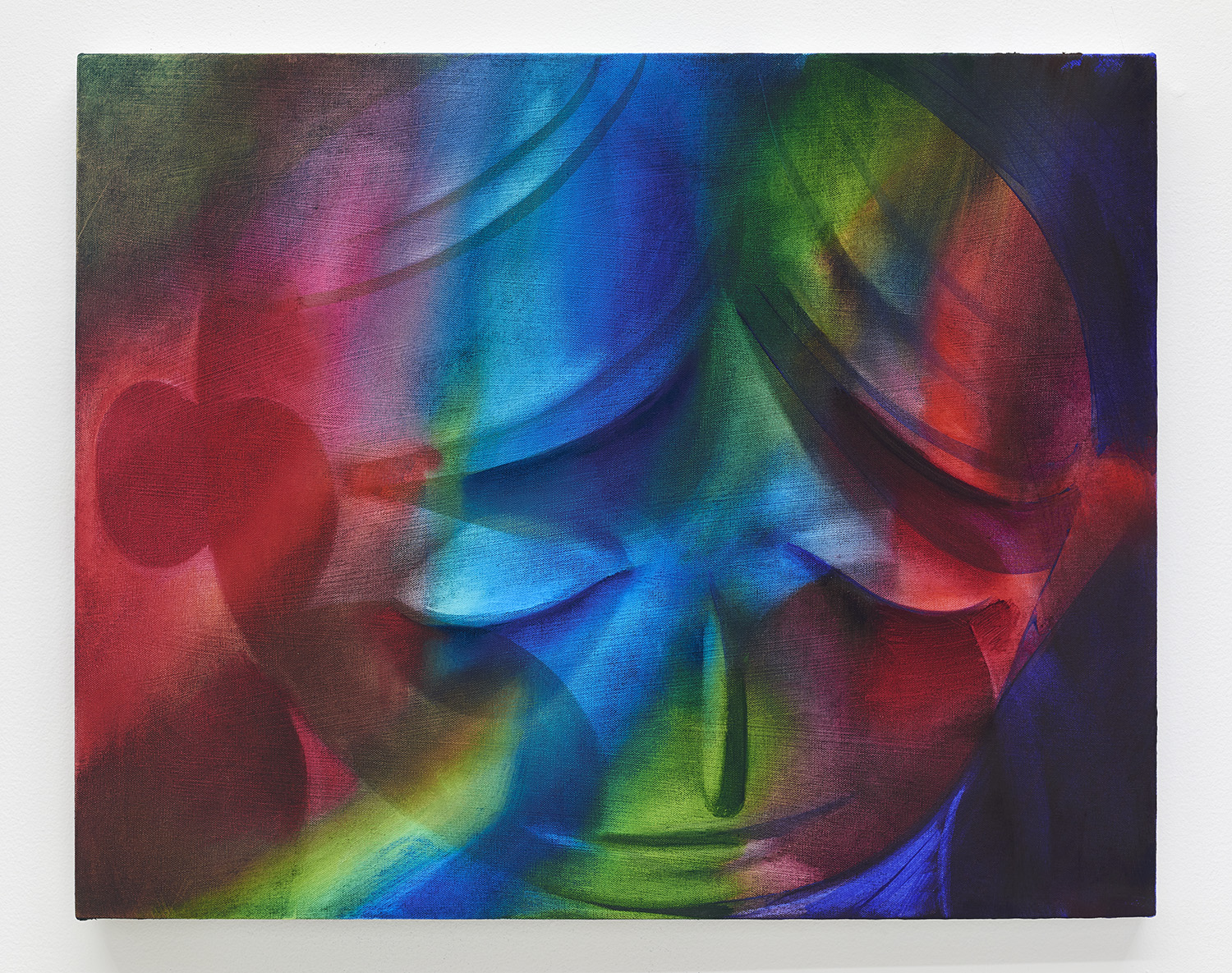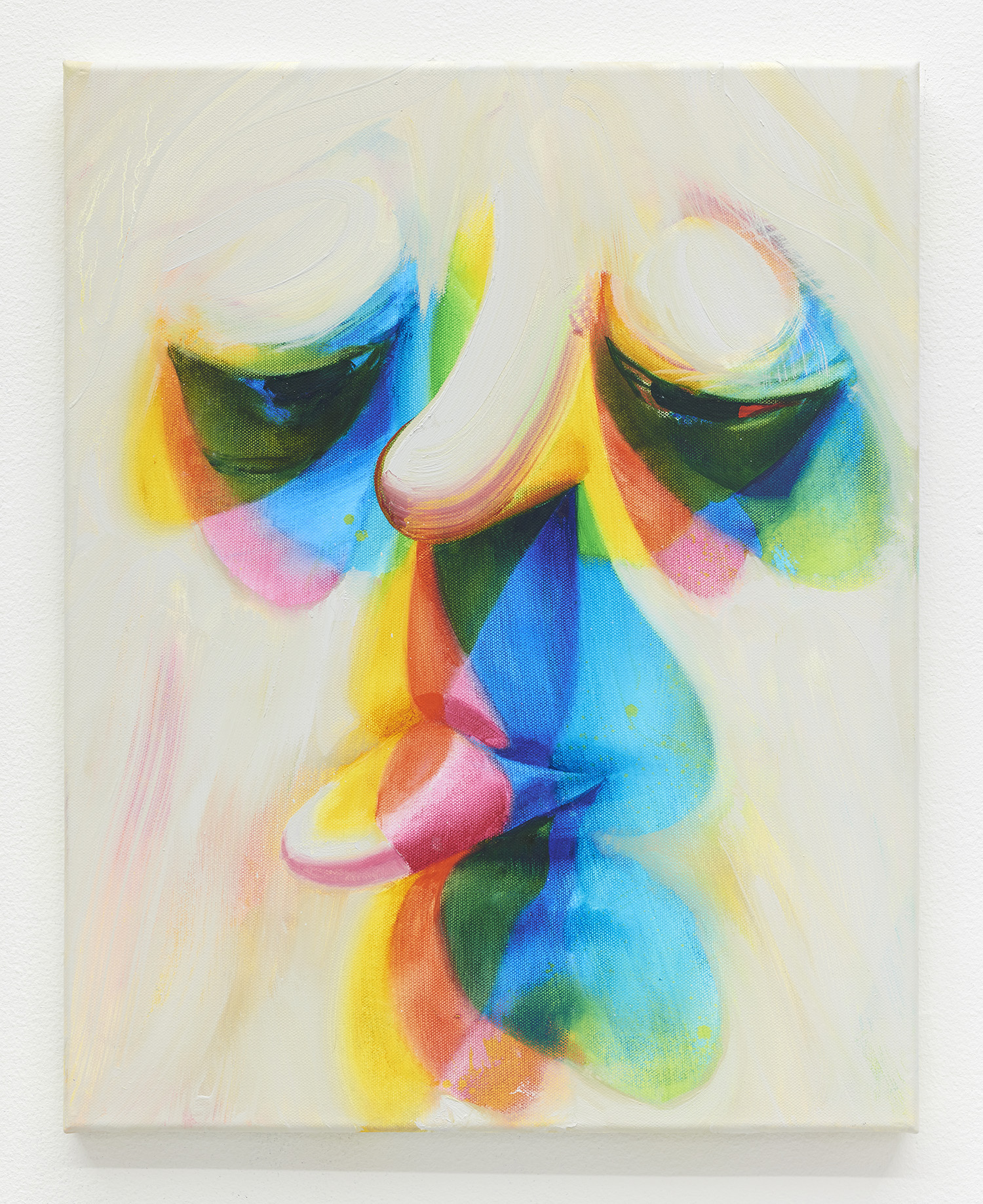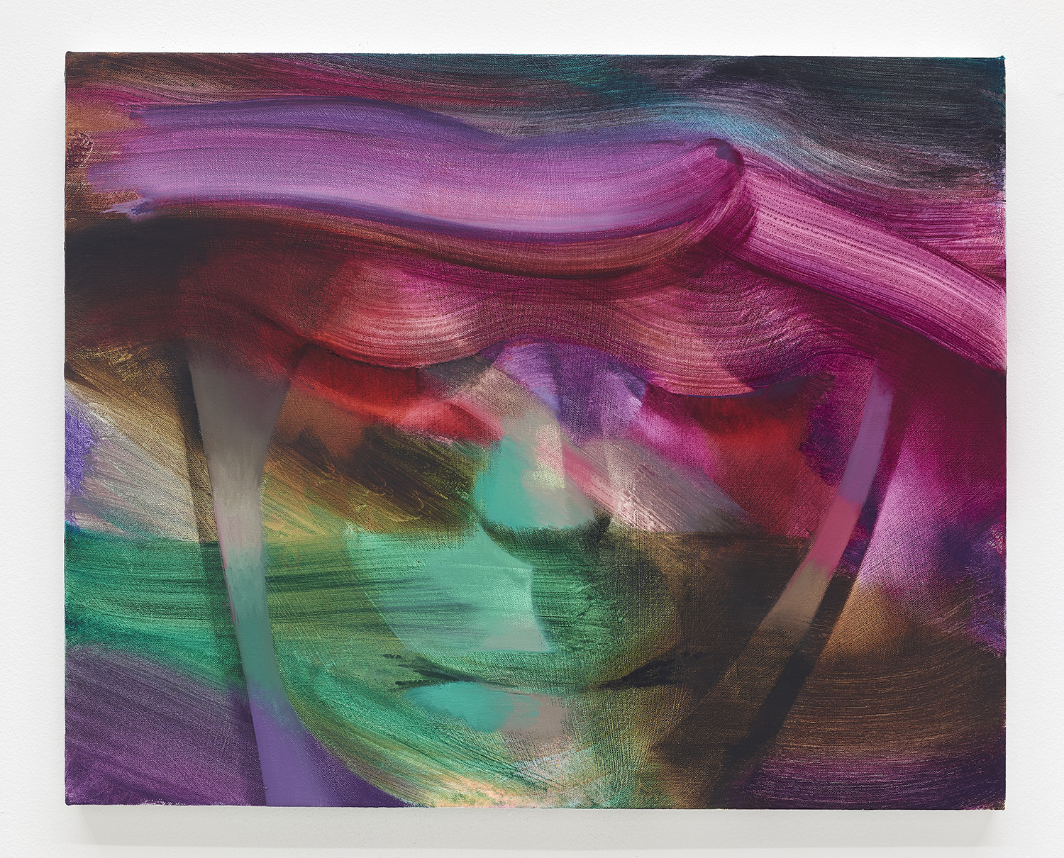 This exhibition includes works in his signature style of abstracted faces, sometimes reclining into a landscape, sometimes curling up like a cat or rippling away like water. Shadows and shapes, linework and paint washes are selectively deployed to pull the familiar out of the colorful ether. New for the exhibition are a series of works where paint is more removed than applied: like Francis Bacon is famous for, Anders is toweling off puddles of paint to show where colors have been subtracted as opposed to added. These smoky, misty paintings have a darker palette of greens, reds and purples.