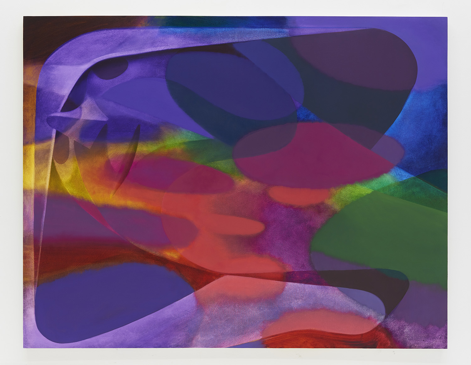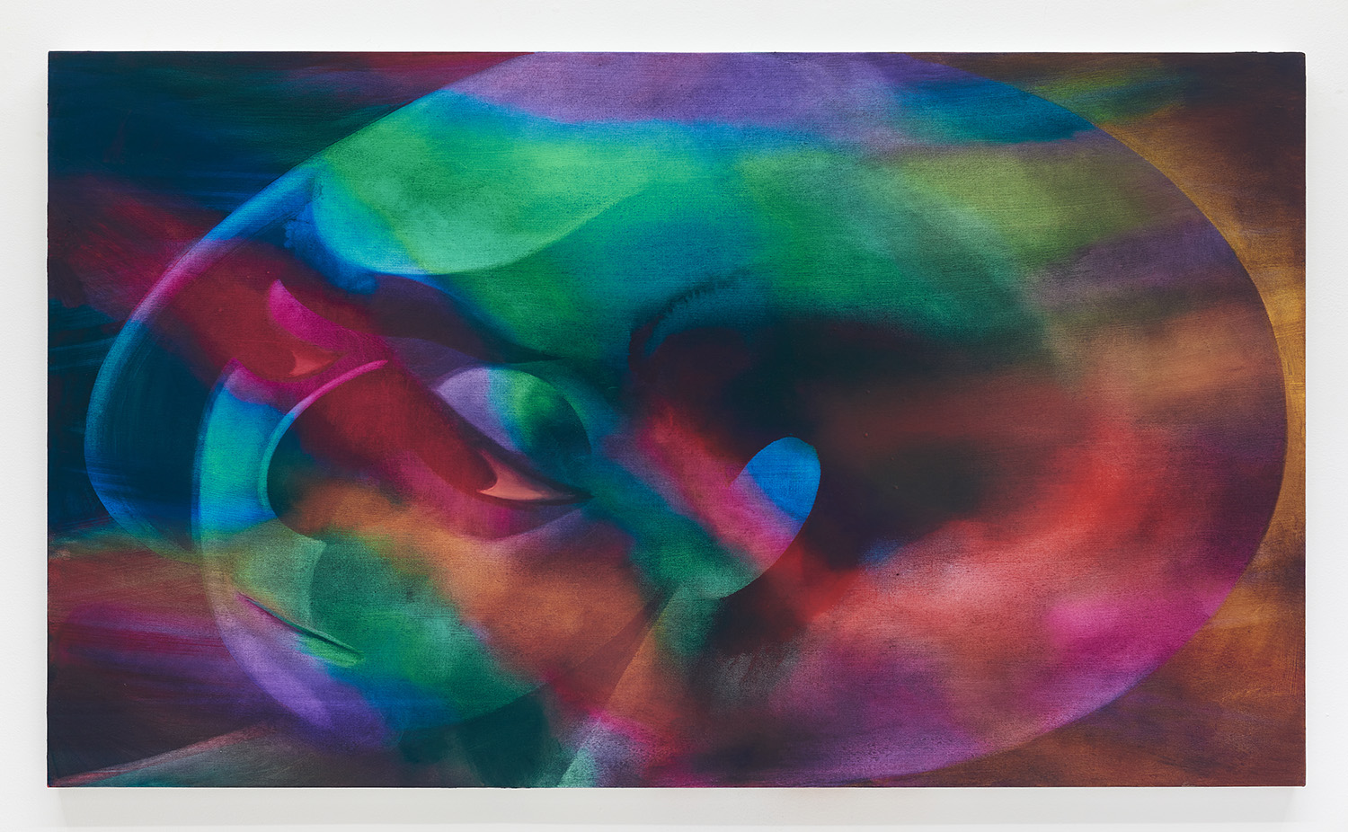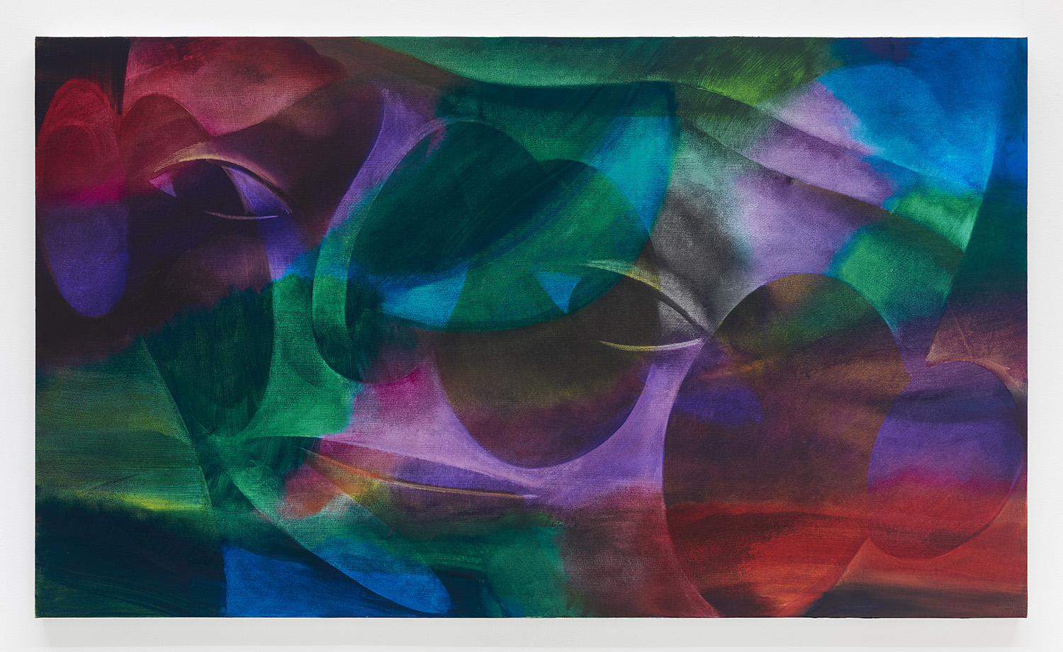 This exhibition includes works in his signature style of abstracted faces, sometimes reclining into a landscape, sometimes curling up like a cat or rippling away like water. Shadows and shapes, linework and paint washes are selectively deployed to pull the familiar out of the colorful ether. New for the exhibition are a series of works where paint is more removed than applied: like Francis Bacon is famous for, Anders is toweling off puddles of paint to show where colors have been subtracted as opposed to added. These smoky, misty paintings have a darker palette of greens, reds and purples.