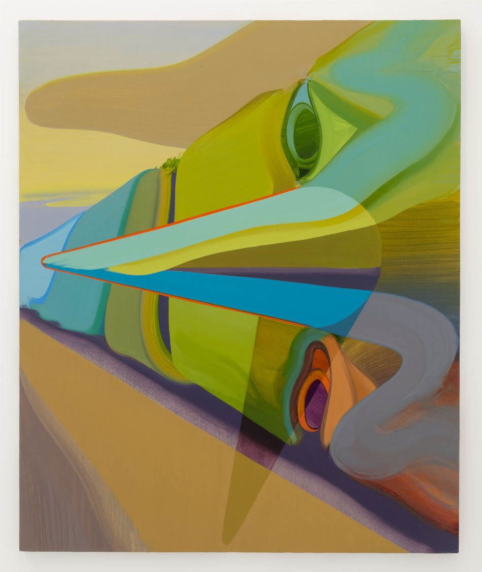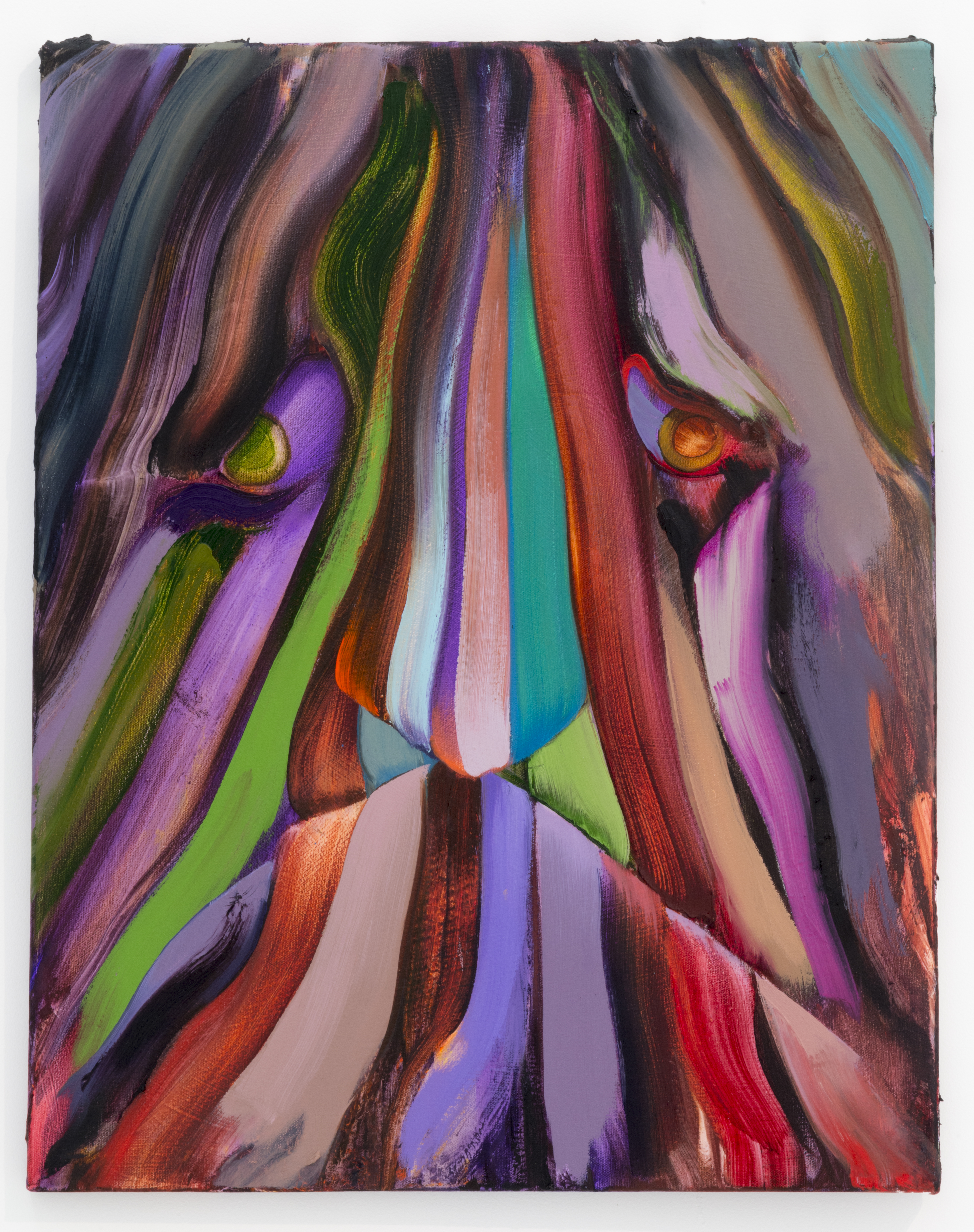 An openness to multiple readings is fundamental to me. These faces are meant to be open to interpretation; as a being, thing, landscape, abstraction, or even just paint. The faces sometimes have a blank or contemplative stare, often outside the picture plane, away from the viewer to allow for a less confrontational examination. The act of looking as the subject is meant to suggest that both painting and viewer, who are immersed in the same activity, are perhaps one and the same. The communicative goal is empathic in that I would like the viewer to feel caught in a loop of looking at a looker. This is meant to raise the awareness of the viewer enabling them to perhaps partake in the same emotion as the depiction, projecting a sentience onto the work. Within this facial framework I am abstracting and composing relationships of colours and shapes to generate illusionistic spaces suggesting further associations.”
