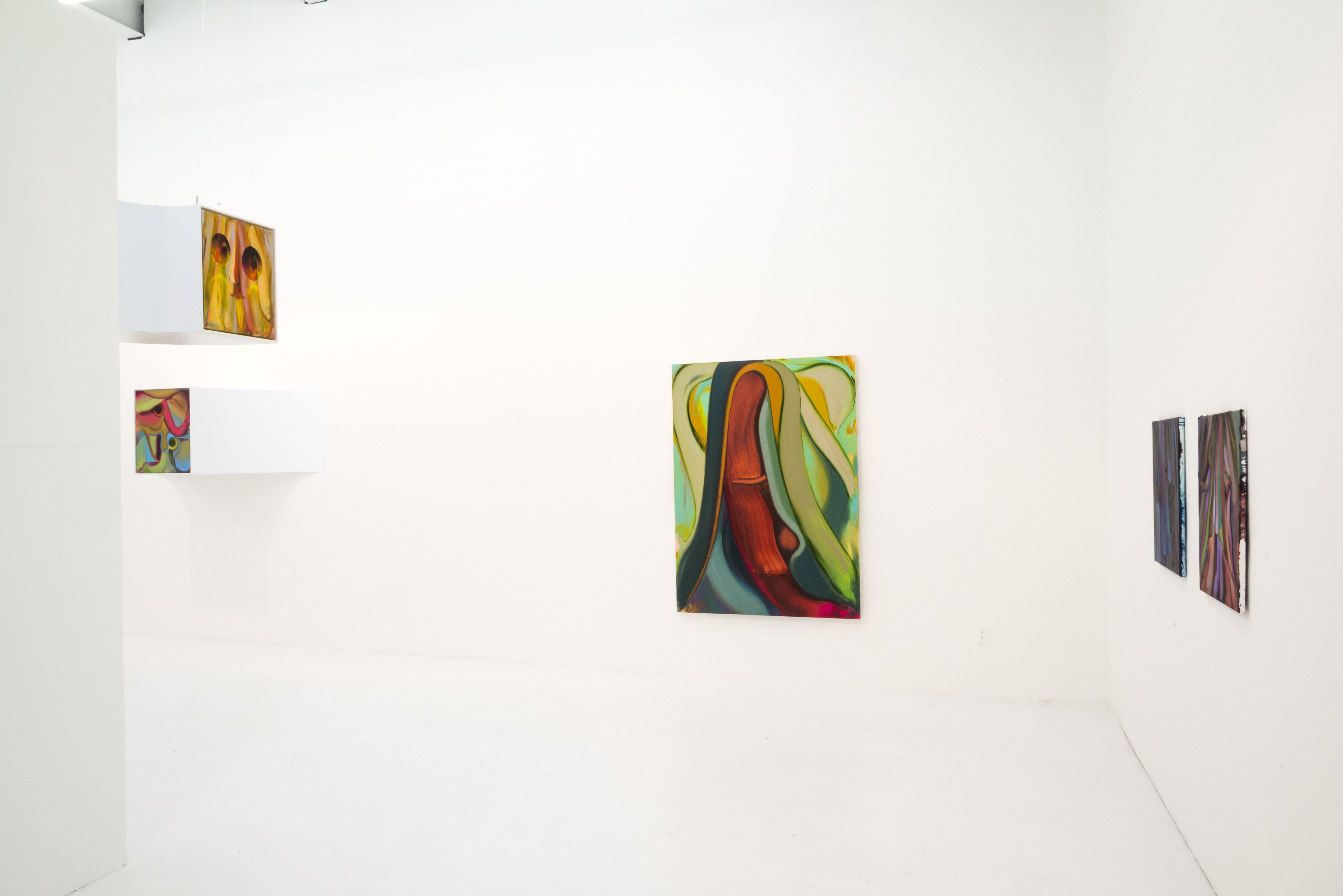 The Hole is proud to announce the second New York solo show by Toronto artist Anders Oinonen. In this exhibition he presents a group of new oil paintings in a variety of scales and personalities, some of them installed in three dimensional plinths that protrude retro-futuristically from the walls. The paintings are colorful and deep, where subtle decisions about brush stroke order and thickness of paint are used to pull faces out of landscapes and make psysiognomies into hills and valleys and cliffs.