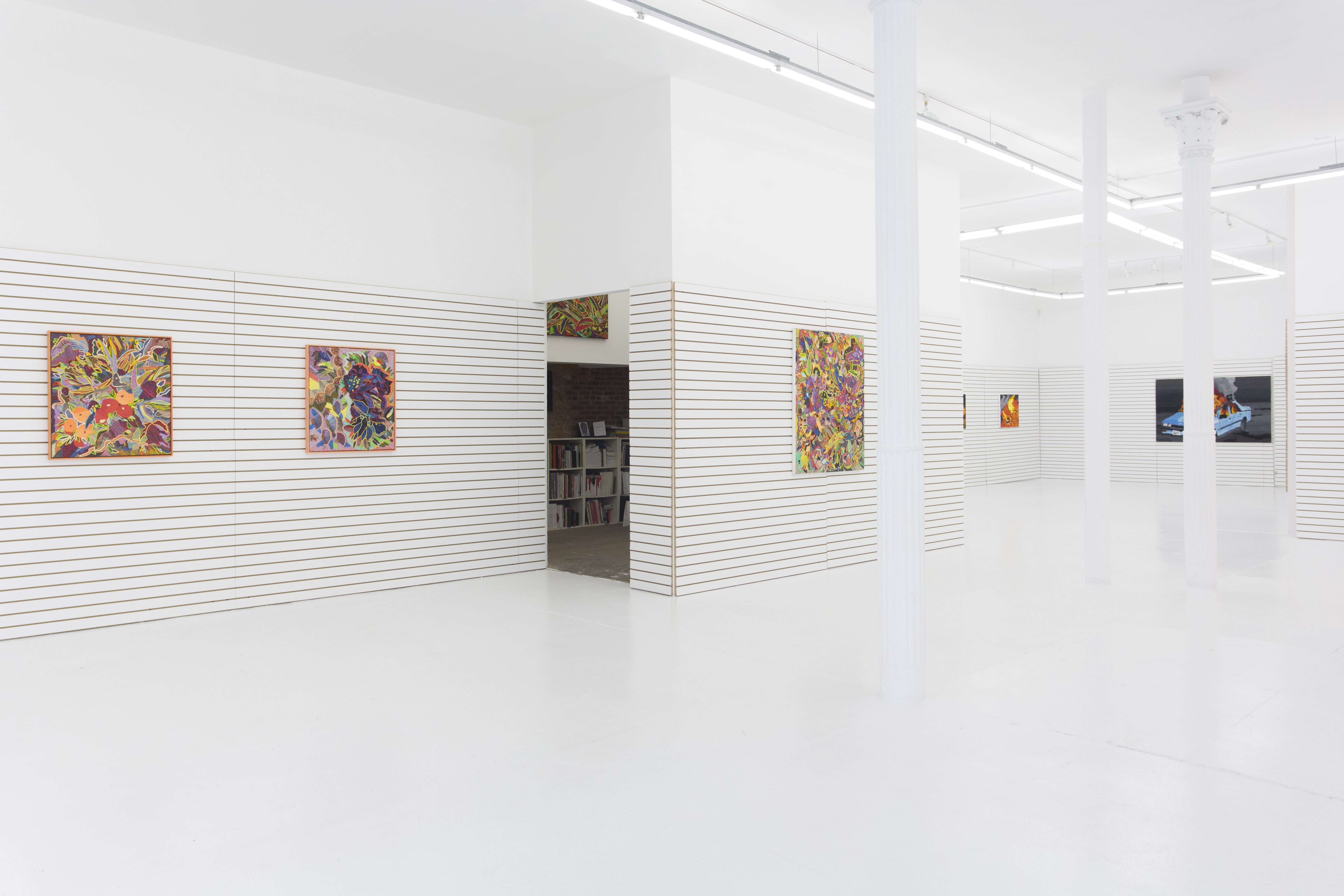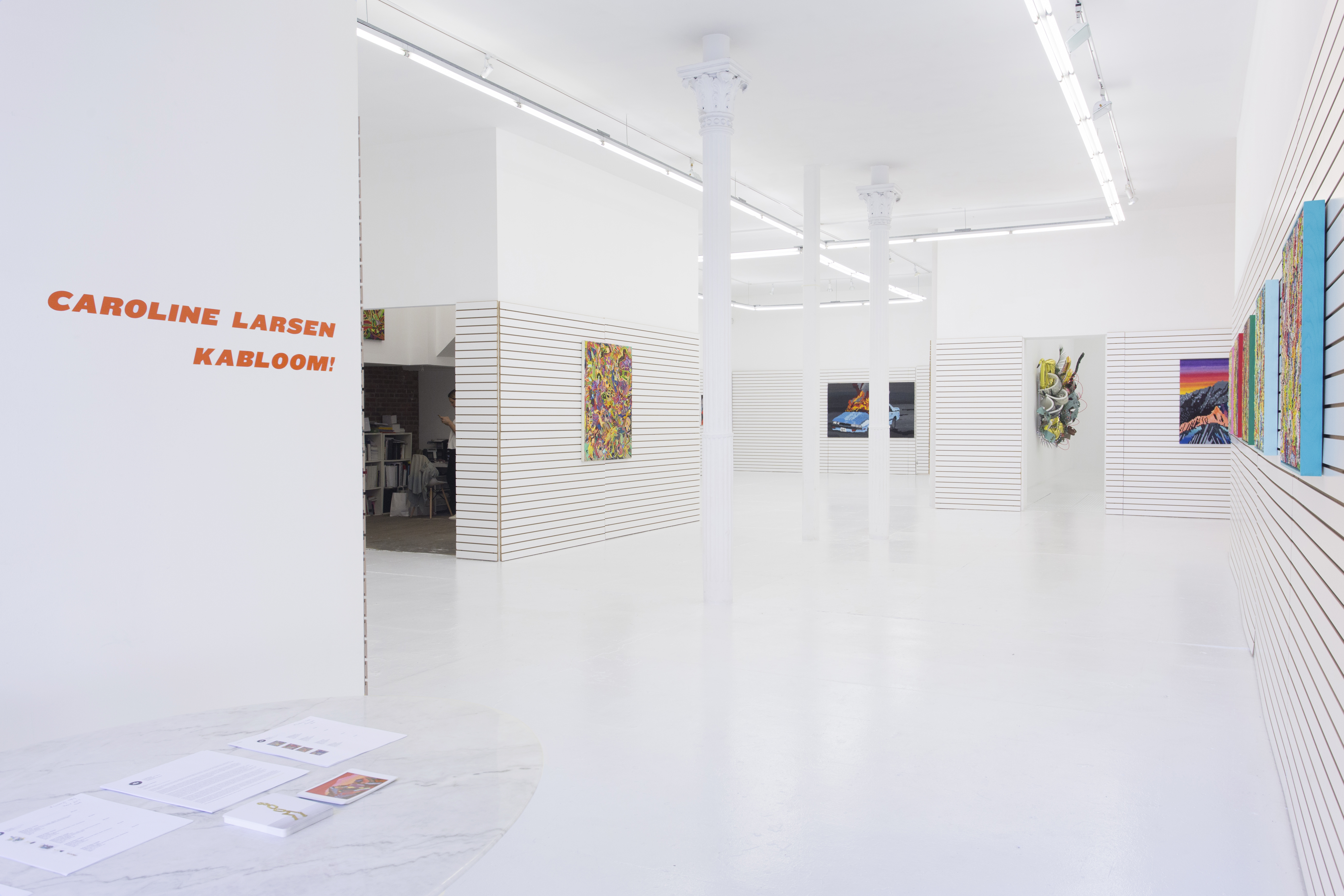The Hole is proud to announce a solo exhibition of paintings by Caroline Larsen. In oil paintings that experiment with icing-thick and even woven paint application, she explores flowers and plants, car crashes and mountain ranges as her subjects.