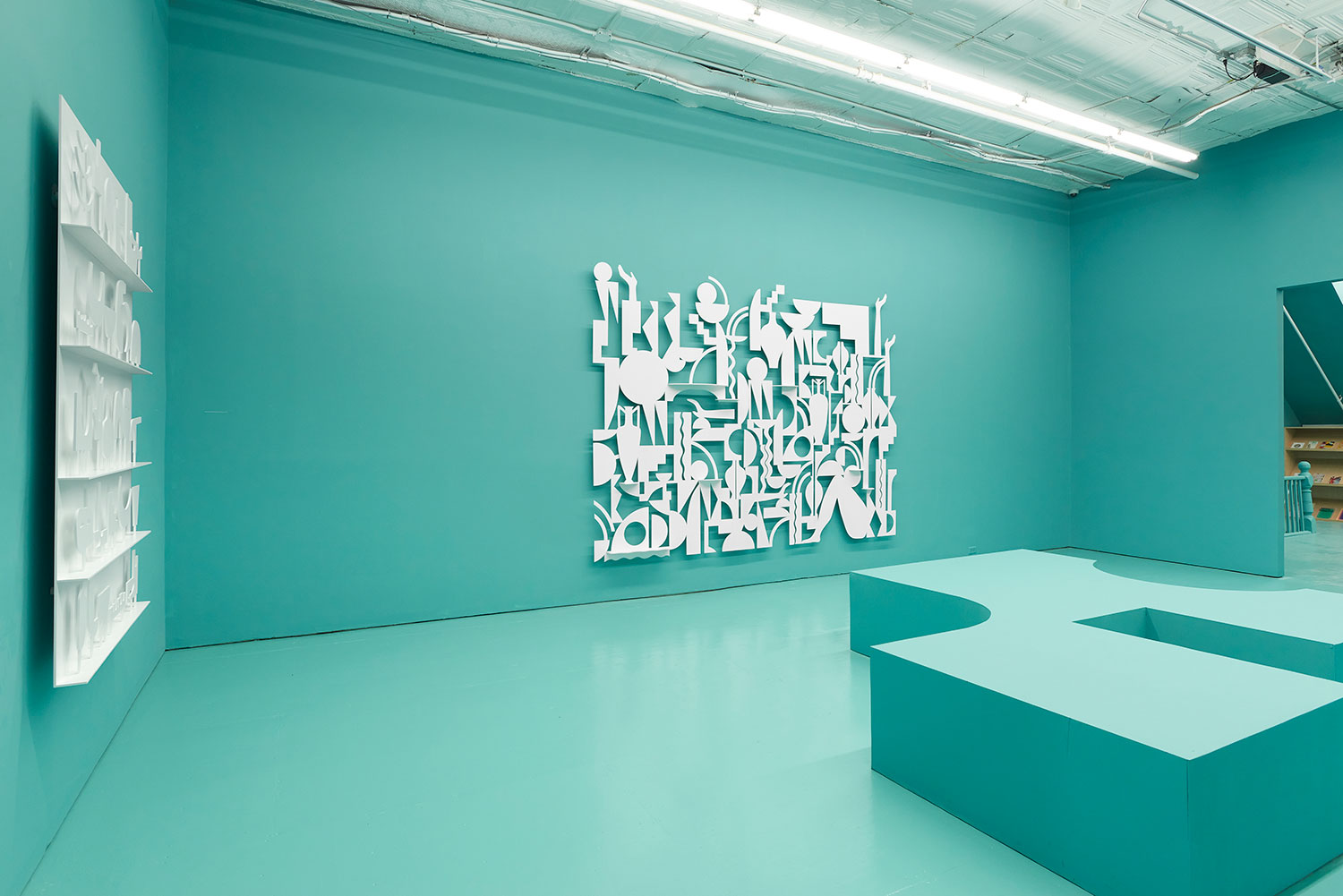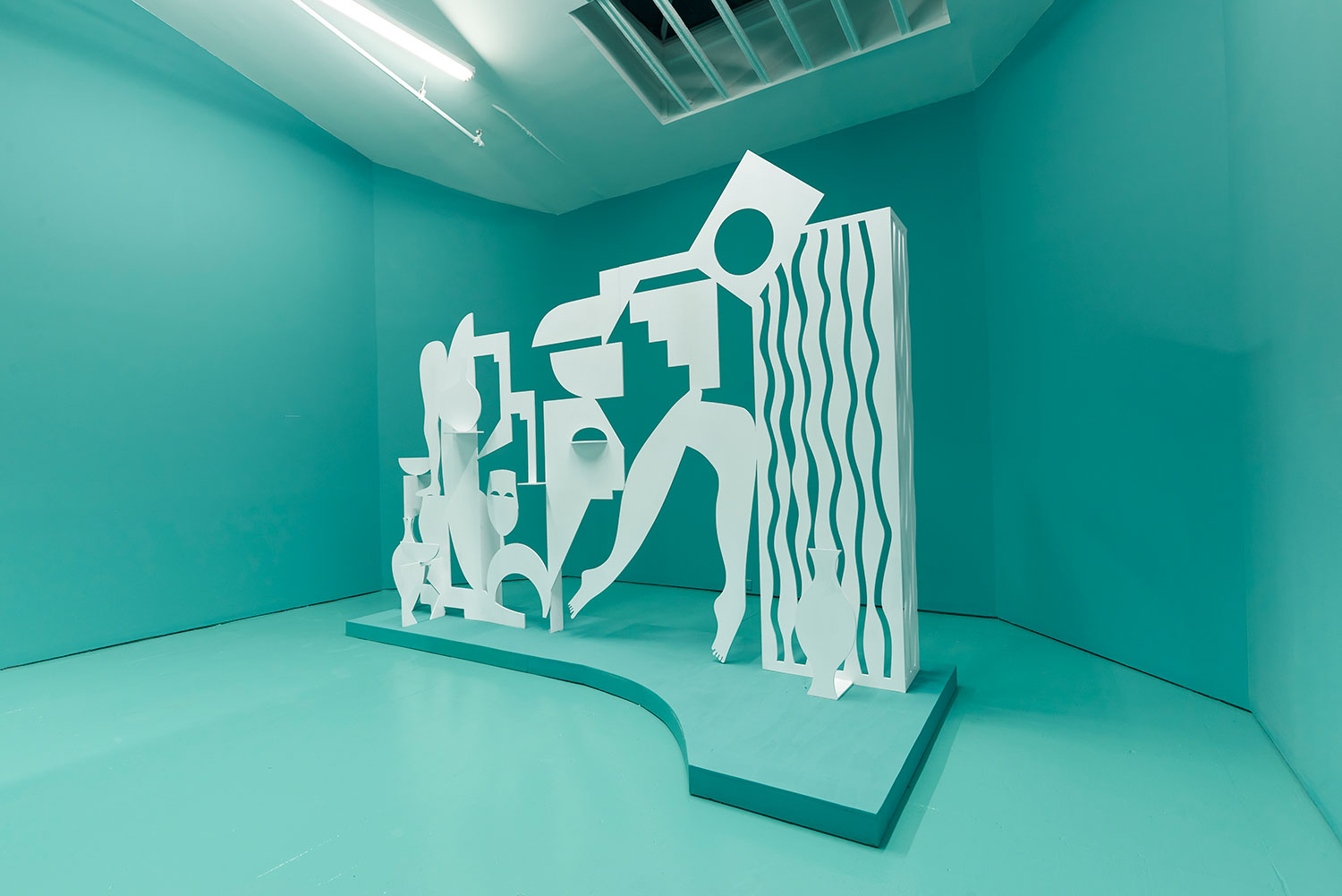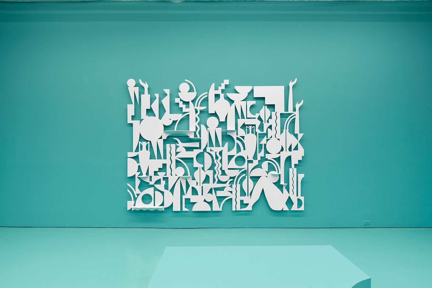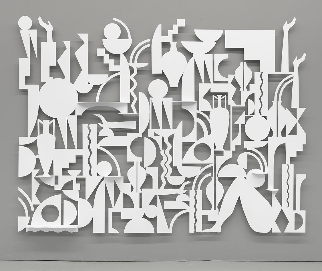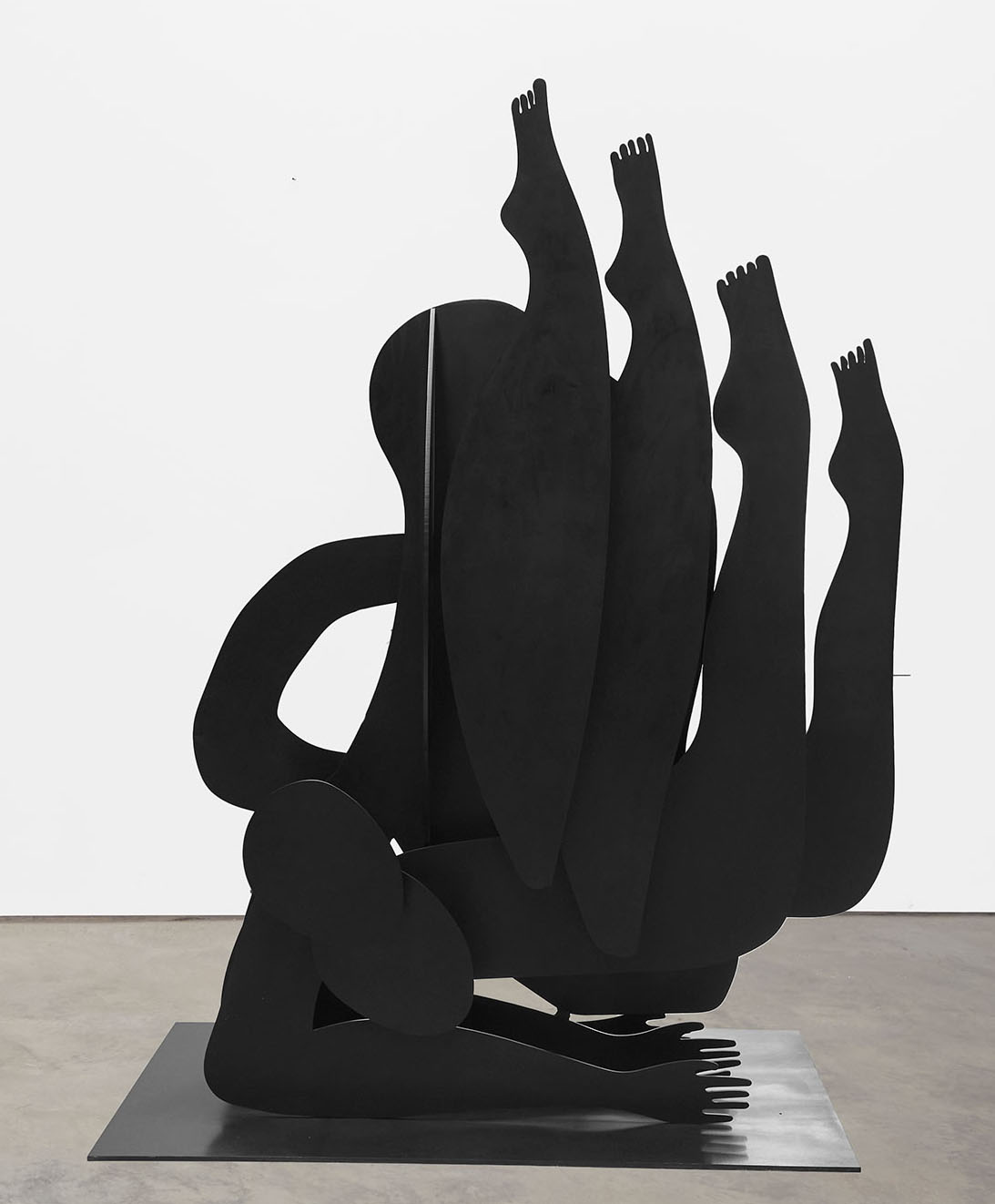 In this exhibition, Salas works entirely in laser-cut, powder-coated aluminum at a thickness optimized for permanent outdoor display. Her sculptures are carefully balanced compositions inspired by the visual lexicon of healing therapies and dream analysis. There is a deliberate vulnerability and resilience in these assemblages of signs: Salas shows us that her stacked and curving geometries, like the caryatids of antiquity, can have great physical and symbolic staying power.