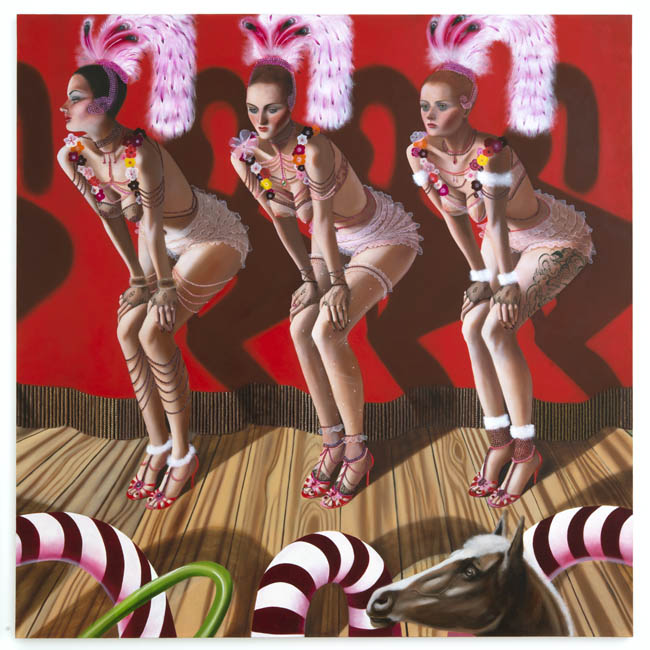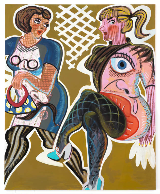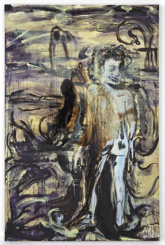 Despite how international the art world has become—not just art fairing, but internetting and institutional exchanging—the show hints at some regional differences in approach. Perhaps we confront the work with the stereotype that European painting is more conceptual or more academic; perhaps American painters are more iconoclastic and irreverent. After all, each region has their own gods in their own pantheons of figuration and certainly different teachers at their academies of higher learning. Daniel Richter guides grad students in Vienna while Cecily Brown and David Salle have consulted those at Yale for example. It would be hard to point out in words just what these regional differences might be, though such distinctions may appear to emerge when experiencing these artworks throughout the same gallery space.