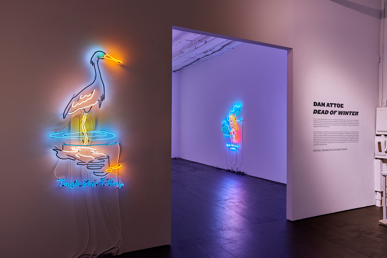 The Hole is proud to announce a luminous solo show of neons by Northwestern artist Dan Attoe. It’s gonna be dark and cold this Saturday, so come bask in the artificial glow of these six new beauties, produced and installed by our Tribeca neighbor Lite Brite Neon.