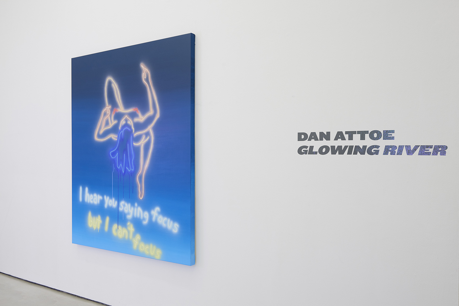 Glowing River is our first show of new works by Washington-based artist Dan Attoe. Four paintings and two neon wall pieces comprise this show characterized by light and nature, connectivity and spirituality.