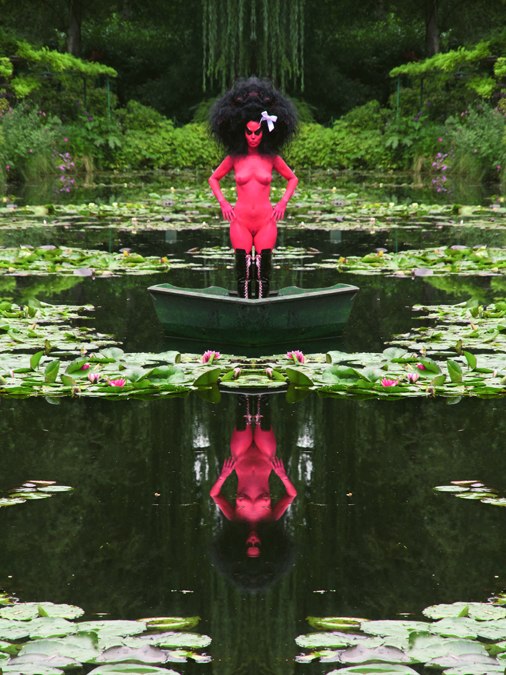 The Hole is proud to announce the exhibition “Giverny,” a collaboration between E.V. Day and Kembra Pfahler opening March 30th. The artists created photographic works in the famous French gardens built and immortalized in paint by Claude Monet, and will be exhibiting them for the first time here on the Bowery.