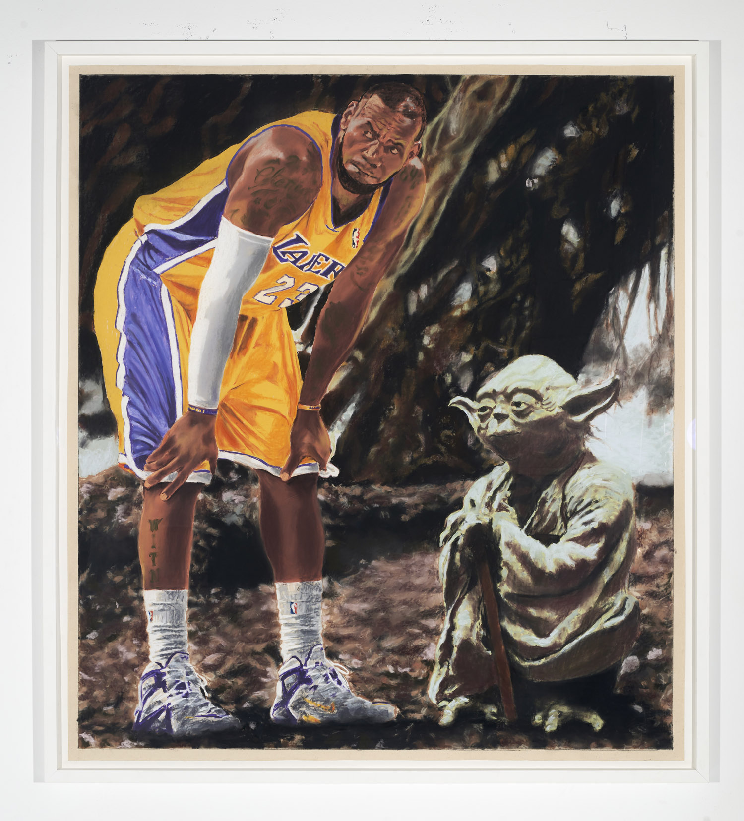 As has always been the case for Yahnker, the subject matter he chooses is uncomfortable. Even what looks like a purely uplifting and positive image can have layers of problematizing that can sit funny even when you’re not sure why. A lot of visual signifiers go into each of these careful image puzzles, and every decision matters. The audio guide for the show will let the artist, in his own words, describe some of the layers of thinking to take you down the rabbit hole of each piece should you so choose.