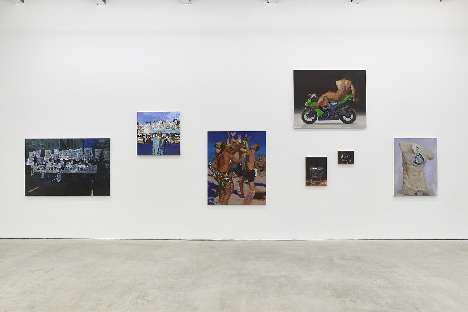 Using dry wit, humor and political and pop culture references, Eric Yahnker produces satirical commentary on American life. With a background in journalism, television and animation, Yahnker is no stranger to the American experience and can’t help but poke some serious fun. Whether his work depicts a cultural icon, world leader, or Jacques Louis Davide’s Patroclus draped across an awesome green motorbike, Yahnker highlights the dark realities of our contemporary moment, but does so with a self-described hopeful optimism.
