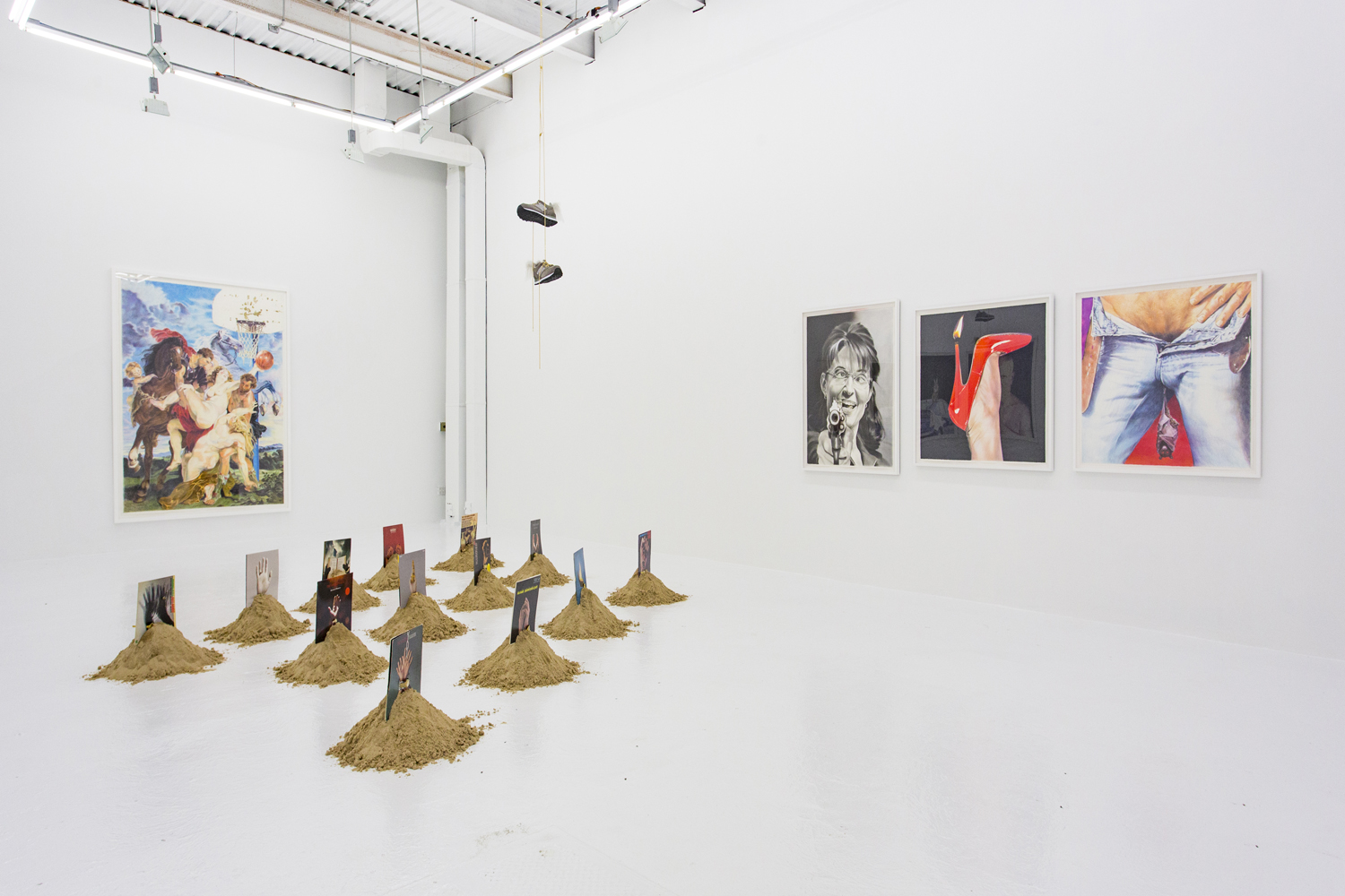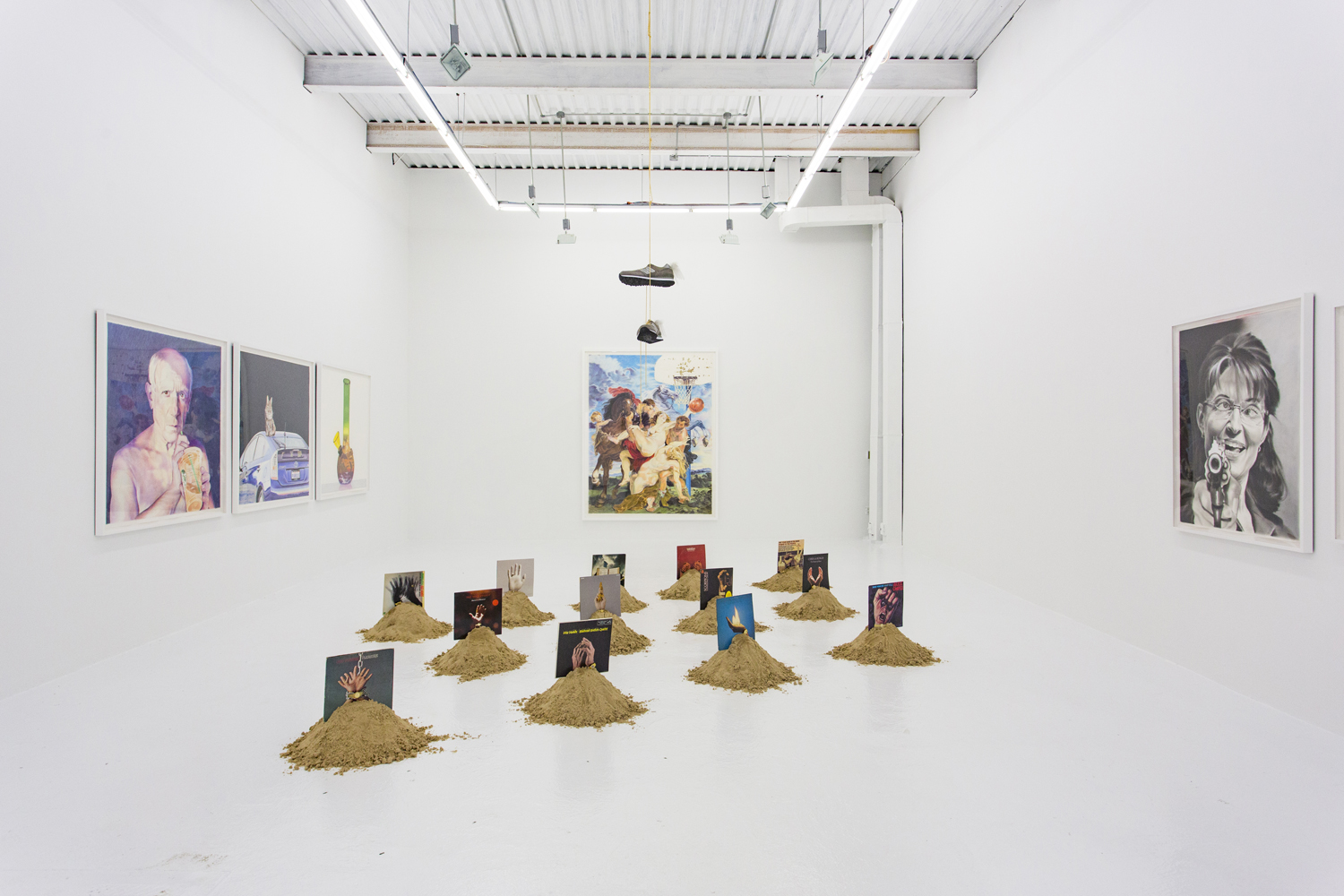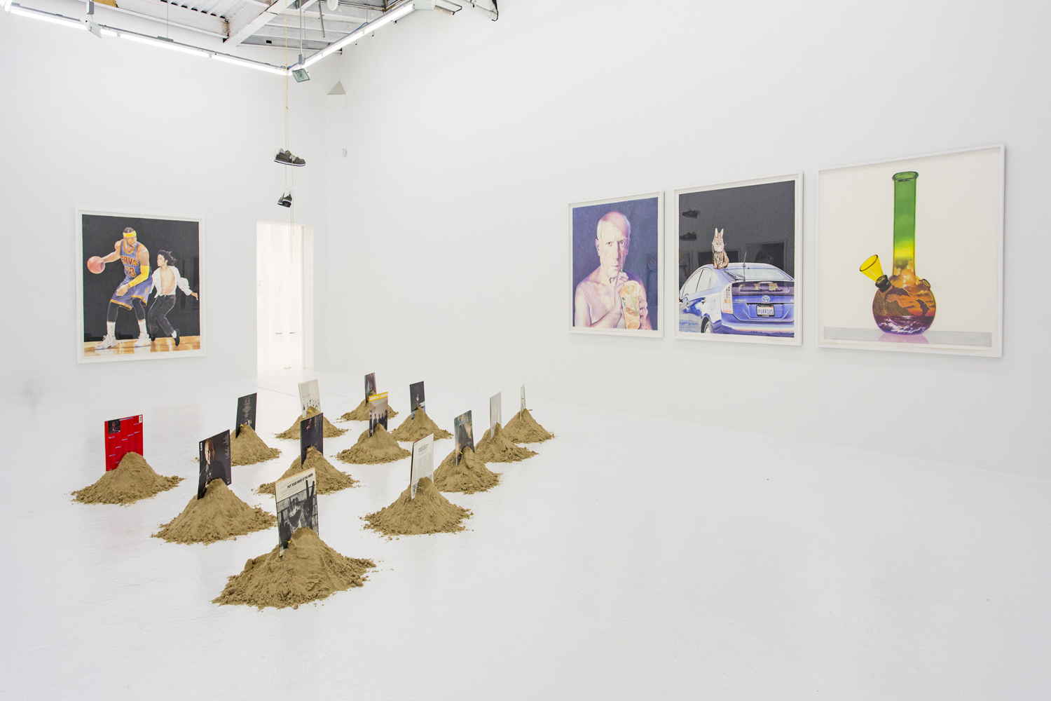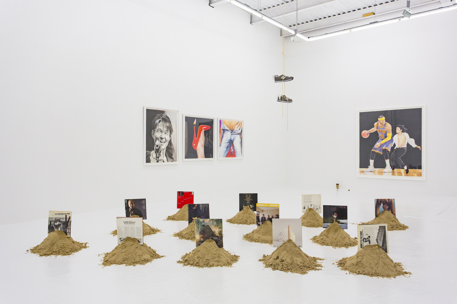 Using imagery from pop culture and recognizable people or products as a surface level entry point to each work, Yahnker draws the viewer in to the deeper semiotic and sociopolitical concepts beneath. The artist seeks out points in his own psyche that are dark or embarrassing or unresolved and exposes his own problematic personal perspectives to the public. A bit of head-scratching is OK: confusion for the artist is a productive state of mind, a grey area where he thinks most of life and especially politics resides.