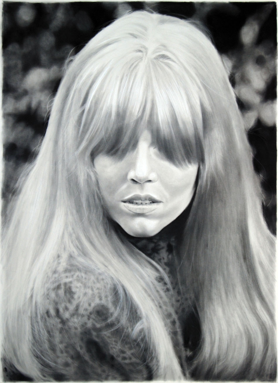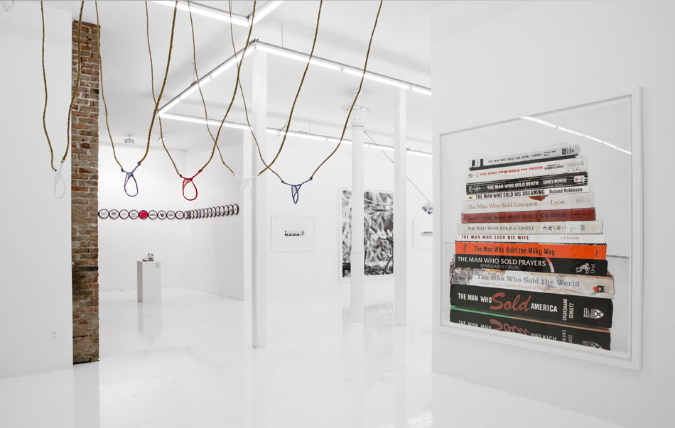 To get a sense of Yahker’s humour you can check the titles of the pieces: “Talcum X”, “Chili Fries Without a Face” or “I See Sinai, I See France” suggest the type of culturally challenging concoctions this artist cooks up. His interest in Jewish history is suggested by pieces like “Star of David Lee Roth” or “Star of Davis Junior”. And you don’t need to read an essay about works like “West Side Story” because the artist has drawn it for us—and very, very well. His textual works occasionally do spell it out for us a bit, just in a very odd way: drawings of people stand in for letters, as a repeated image of Bill Clinton may suggest the work spells out “INHALE”; while Whitney Houston’s visage fills in the work most likely titled “EXHALE”.