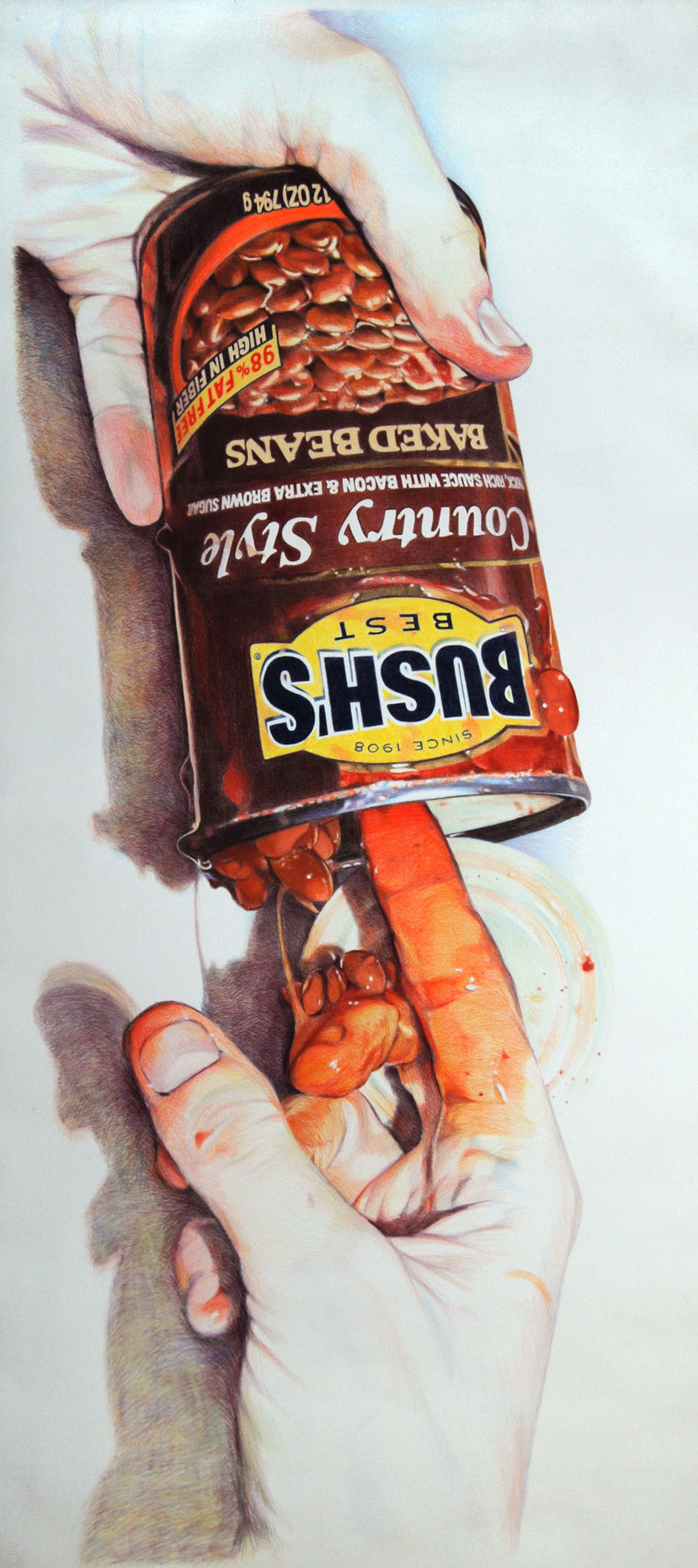 Yahnker is a virtuosically talented drawer who choses to take densely layered political commentary as his subject matter. The often large-scale pieces are visually seductive and can easily be appreciated at the purely superficial level, but after ingesting the title and contemplating the image for a bit, many more upsetting and controversial ideas begin to emerge. The works are elaborately planned and constructed to hold up to even the most intense conceptual scrutiny. There is a wealth of information and excitement to be had the more you meditate on each work.