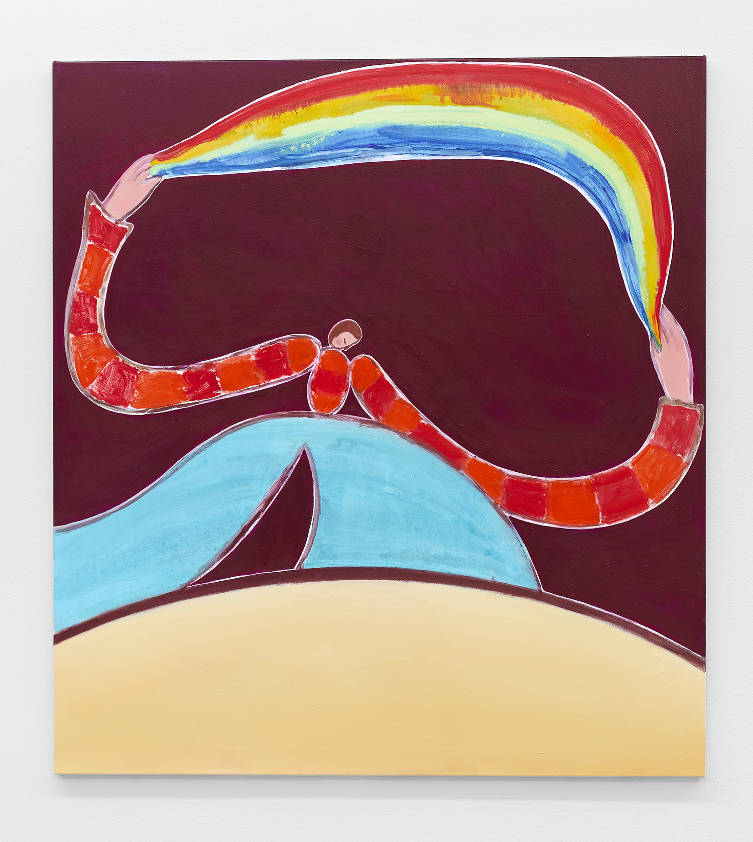 Felix Treadwell lives and works in London, England. Combining acrylic and spray, Treadwell creates deceptively simple paintings that are simultaneously wistful, nostalgic and awkward. Treadwell holds a BFA from the Camberwell College of Art and an MFA from the Royal College of Art. Recent solo exhibitions include ‘Kindred Lands’, (Stockholm, 2022) and Taipei Dangdai (Taipei, 2022) with Carl Kostyál.