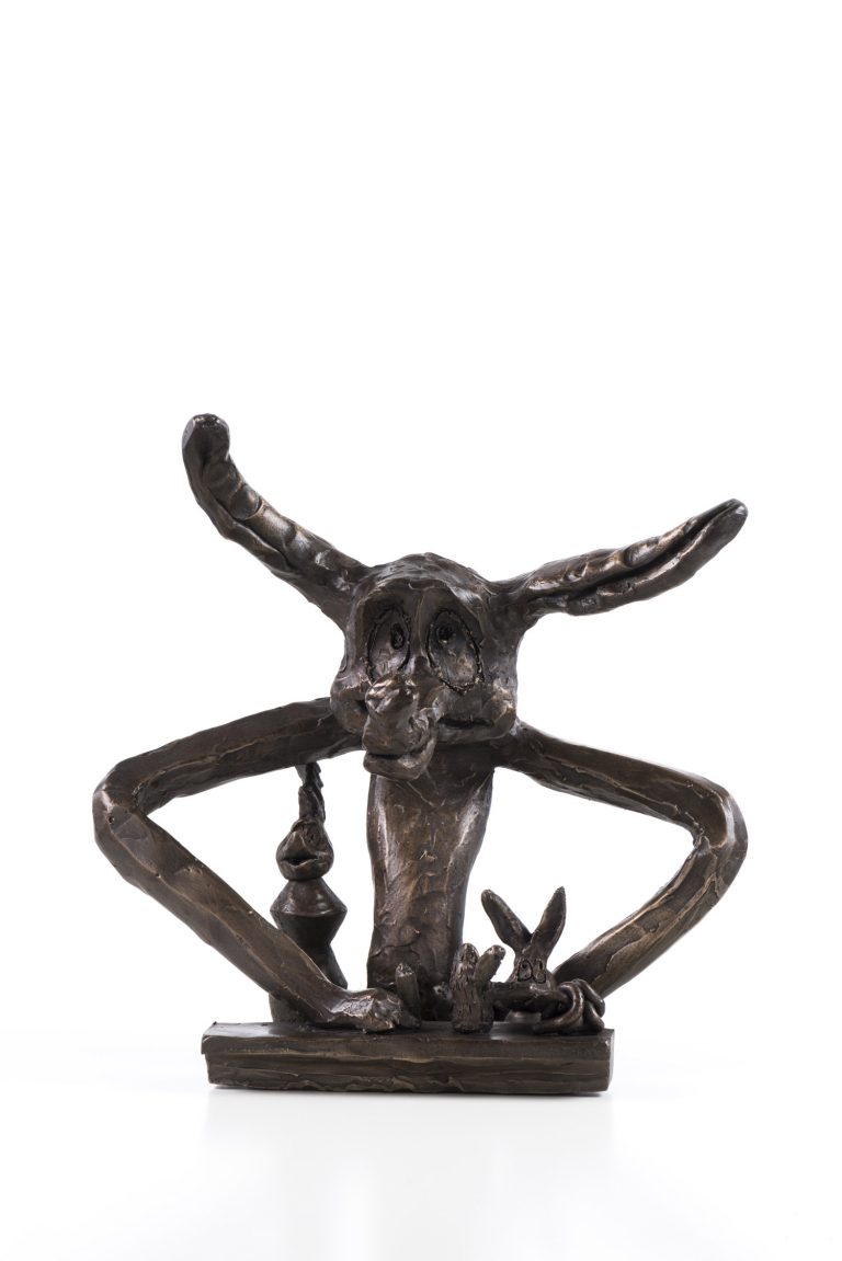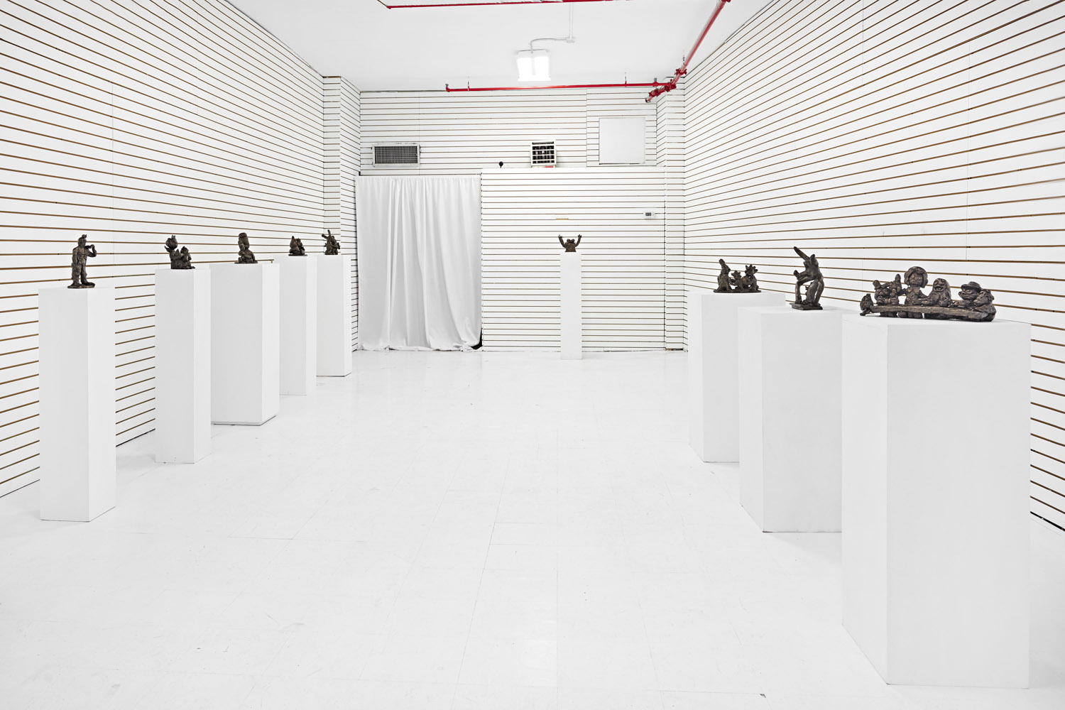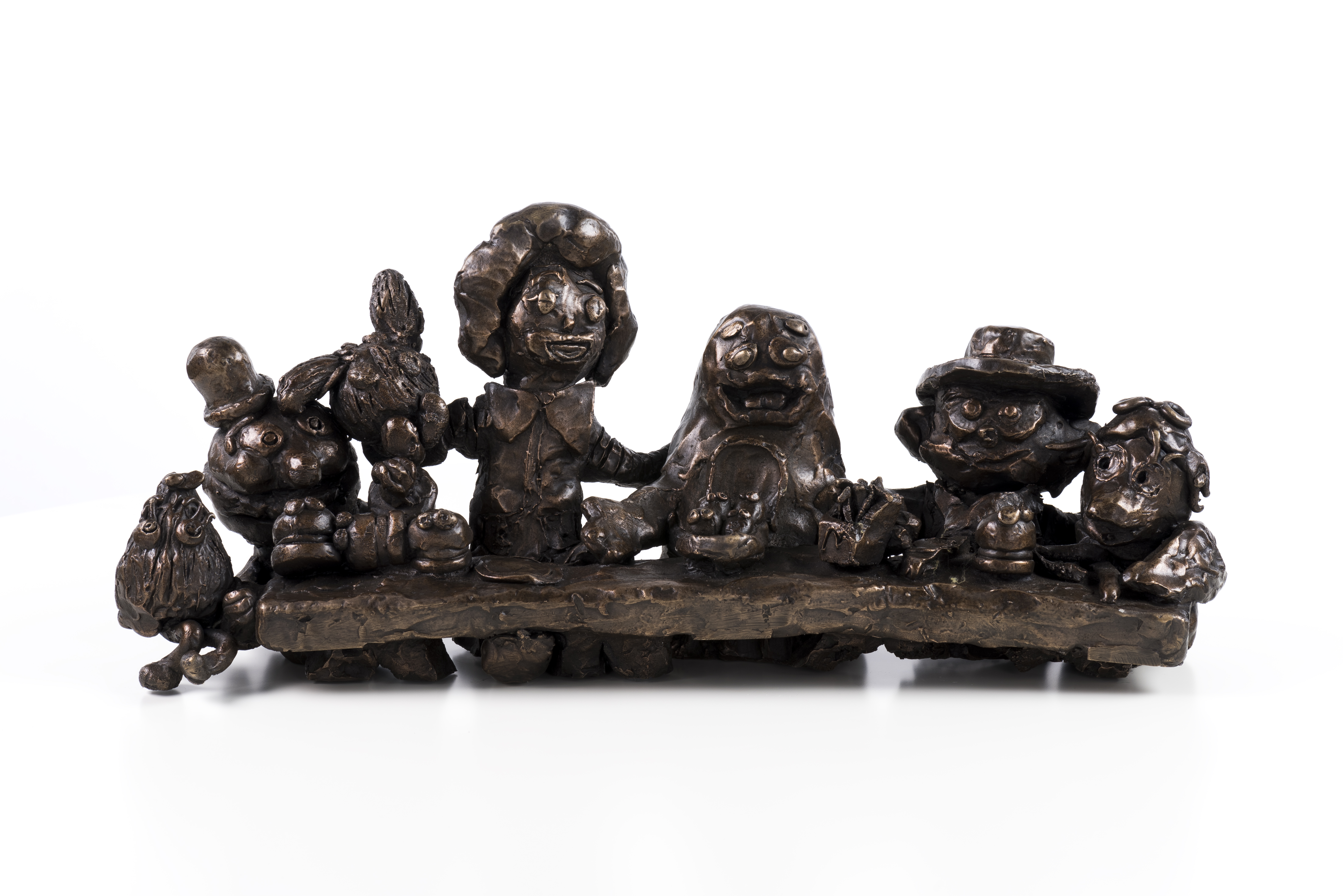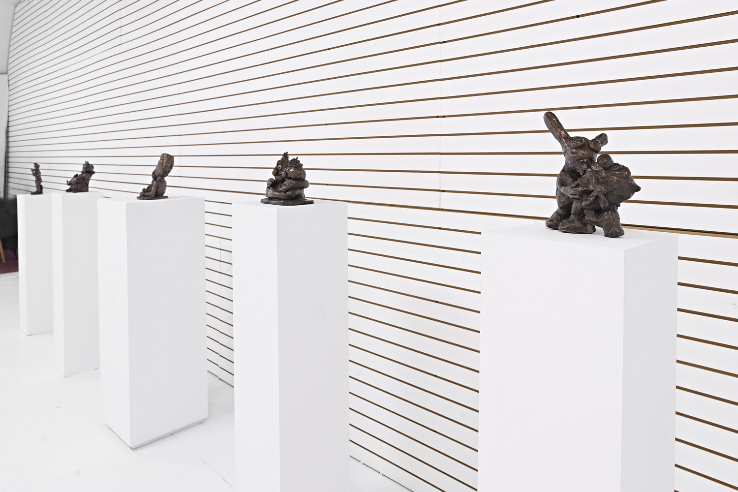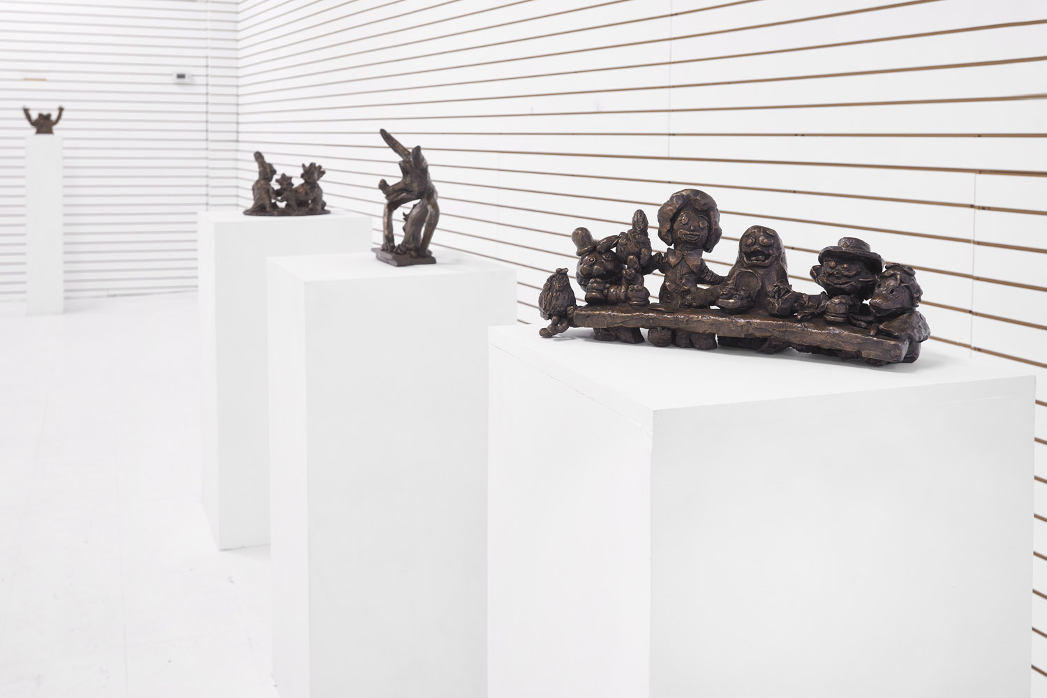 Fourteen new bronze sculptures will debut in Playworks, FriendsWithYou’s first show in New York since their giant project at The Highline and the very first show when The Hole opened on the Bowery in 2011. These new works reimagine the artist duo’s favorite cartoons in this elevated medium, transforming the pop mythology from their childhoods into new classical iconography for the 21st century. The artists have recast soft characters such as Hello Kitty and Gumby, often seen only as pixels or plushies, as eternal bronze sculptures, almost as maquettes for memorials or public statuary.