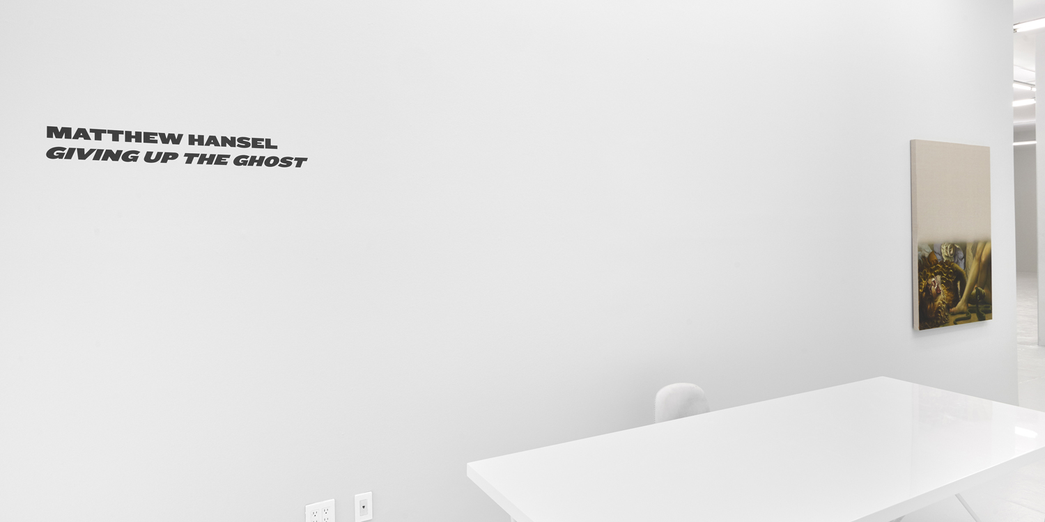 The Hole is proud to announce the first solo show with the gallery by artist Matthew Hansel entitled Giving Up the Ghost” Hansel has participated in thematic group exhibitions with the gallery the past two years that have focused on how digital tools have impacted painting; however, this summer, he stretches out to fill the entire main space with major new oil paintings. In Giving Up the Ghost Hansel exhibits three types of work that are from the same meditation on art history and the role of the painter in modern life; shaped canvas still lifes, ocean paintings and half-painted canvasses.