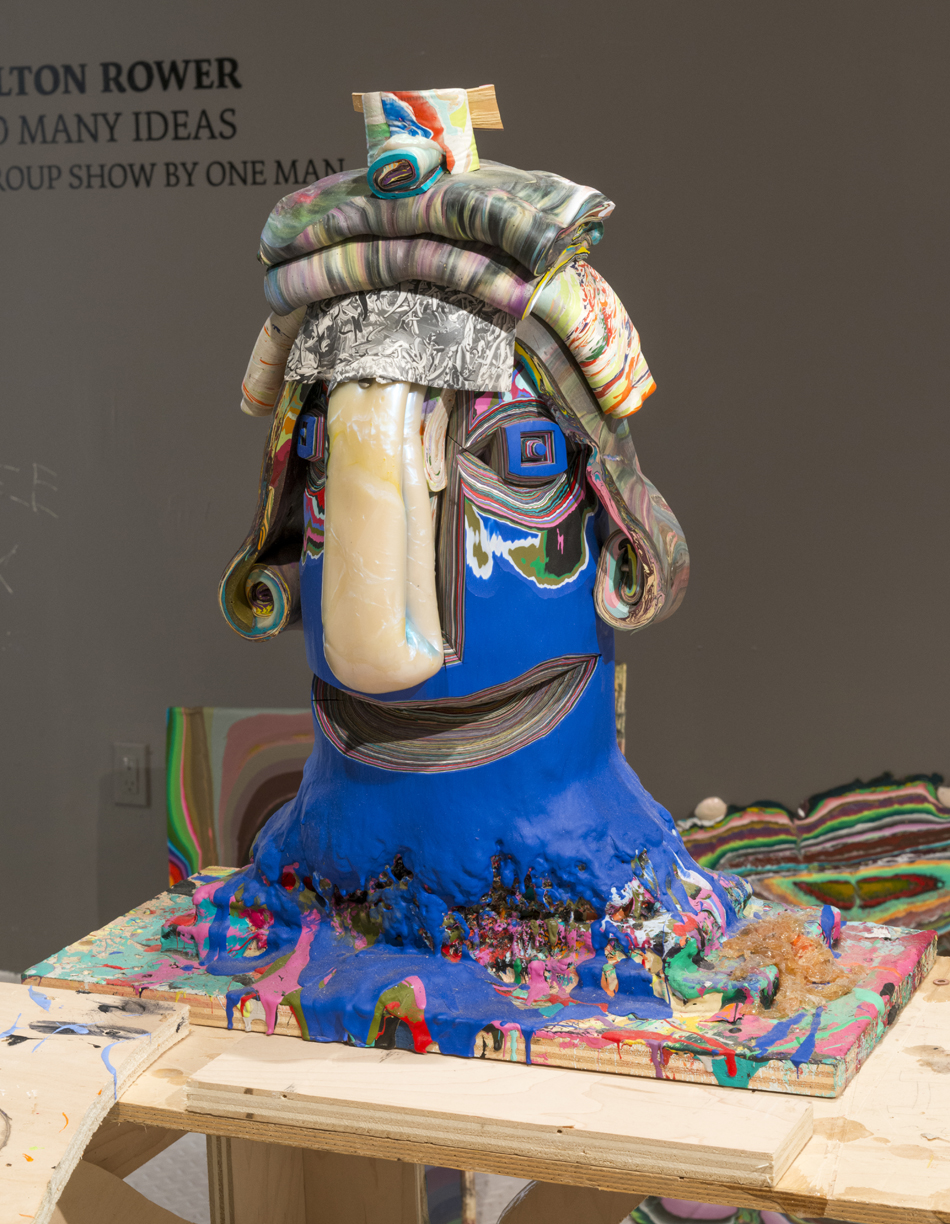 The exhibition is like a glimpse into the artist’s studio where his hyperactive, creative mind is constantly testing out new strategies and materials. Fighting against the pressure on an artist to develop their “brand” by making works within a narrow and accepted mode, Holton has always pursued many different media and approaches throughout his career regardless of his success in one style or another. This creative life where inspiration comes from all sides and takes so many forms is both celebrated here and encouraged of his audience, as Rower hopes putting himself “out there” so unreservedly will inspire others to take chances in their practice and in the gallery.