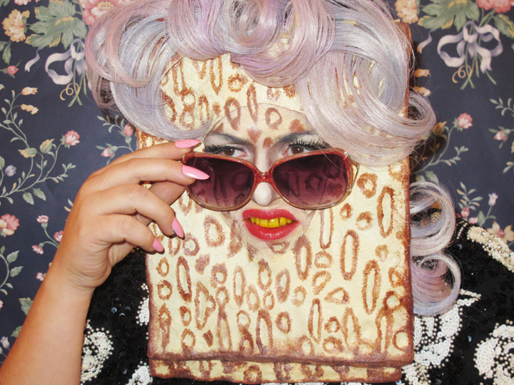 Like a digital age, Midwestern Cindy Sherman, Warren camouflages herself in handmade costumes, sets and extensive makeup to impersonate internet-distorted celebrities, including a section of “food-lebrities” which you can perhaps imagine (“Lasagna Del Rey”). Unlike self-portrait artist Nikki Lee who aims to “pass” in various subcultures, Warren with her Rubenesque body, big blonde hair and rosy cheeks never quite fits in anywhere, perhaps best as her idol Roseanne Barr. The juxtaposition of her non-celebrity appearance with the sculpted and contrived publicity shots of Lil Kim or Madonna bring the unreachably idealized form back to its much funner corporeal reality.