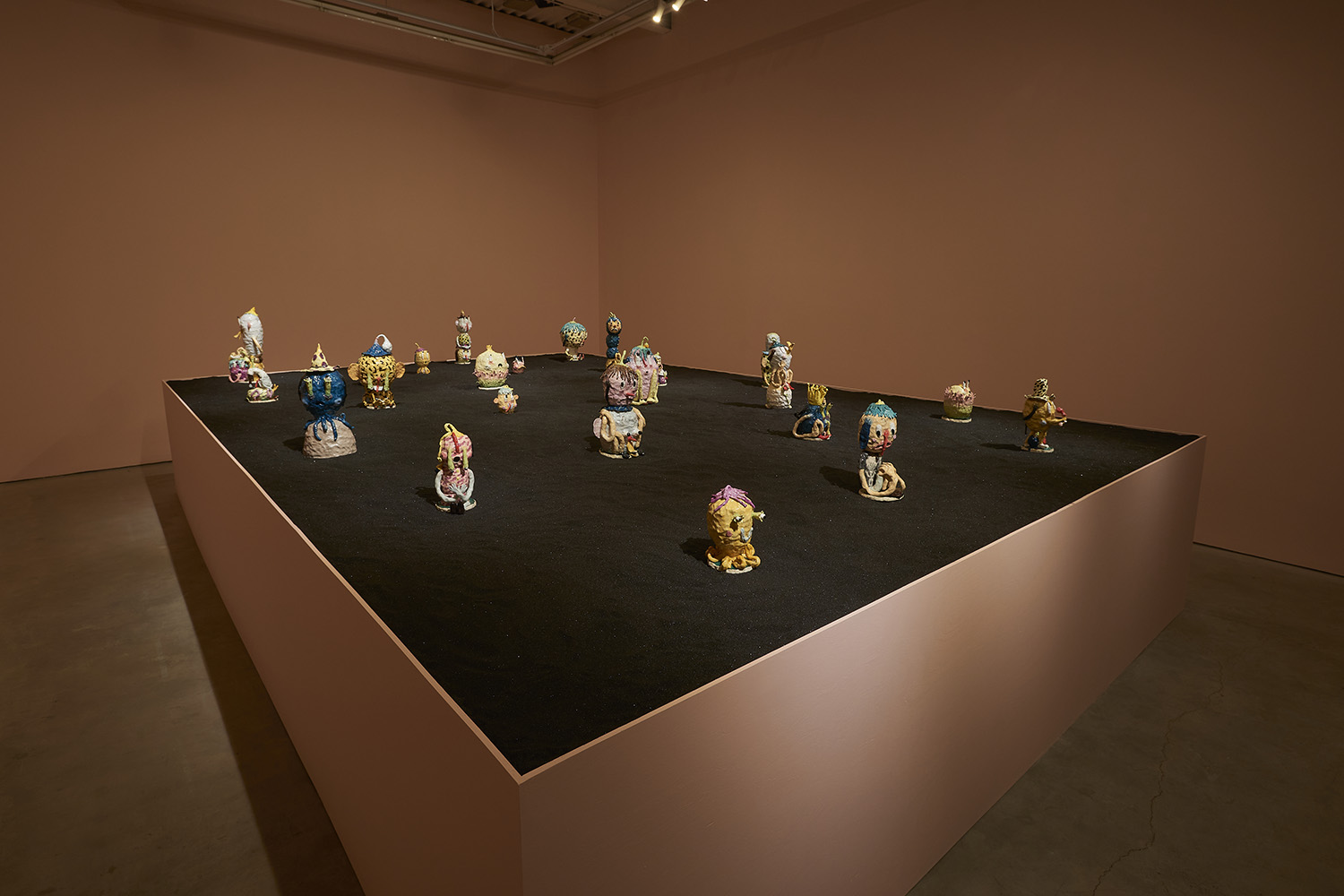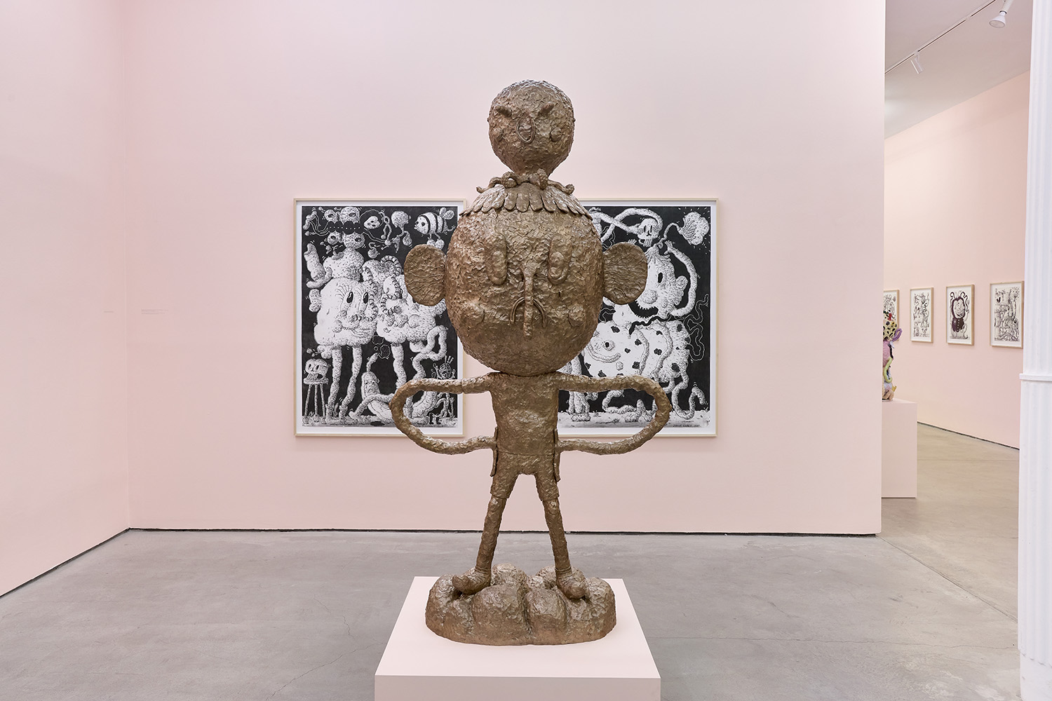 Recognized by Västerås Konstmuseum as one of Sweden’s most successful living artists, Ojanen’s mature work is the natural evolution of his love for childhood drawing, combined with adult forays into graffiti and illustration and an unflagging obsession with the ceramic form. Though he also sculpts frequently in wax followed by a casting in bronze, Ojanen favors the expressive opportunities of clay to shape his characters’ idiosyncratic eyes, noses and ears. Working without preconceptions when beginning a new form, the artist shapes with his hands the minute features and details of his cartoonish coterie, until a sense of each figure’s organic identity declares them finished. This sense of internal life is endemic in Ojanen’s sculptural works, which, for all their many imaginative variations, are each referred to by the artist as a type of self-portrait.