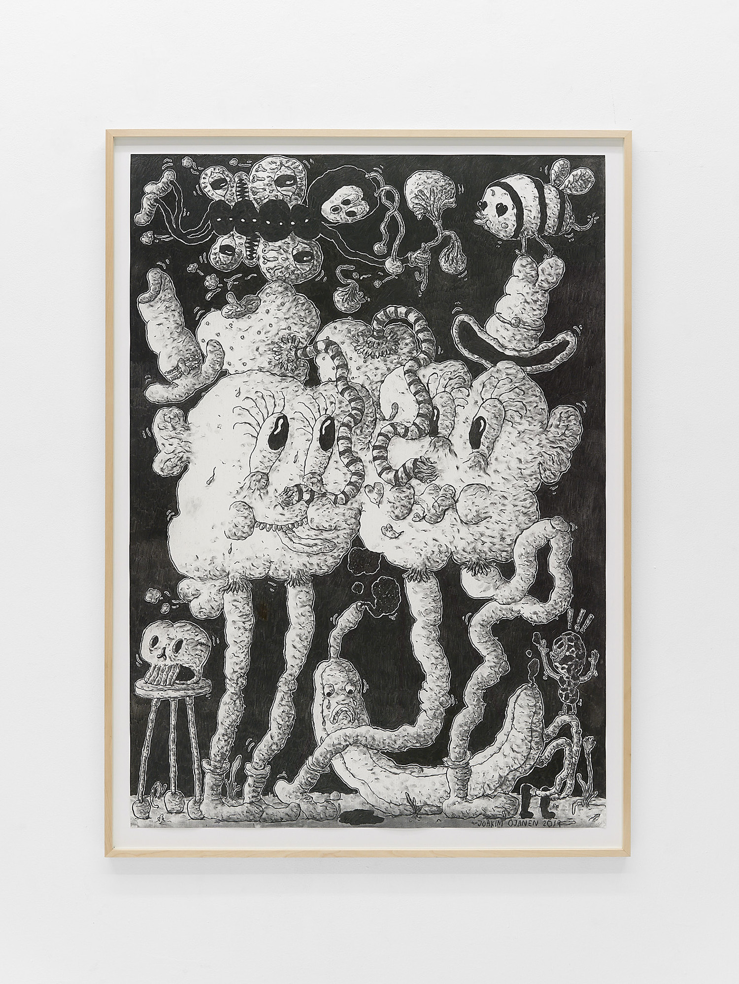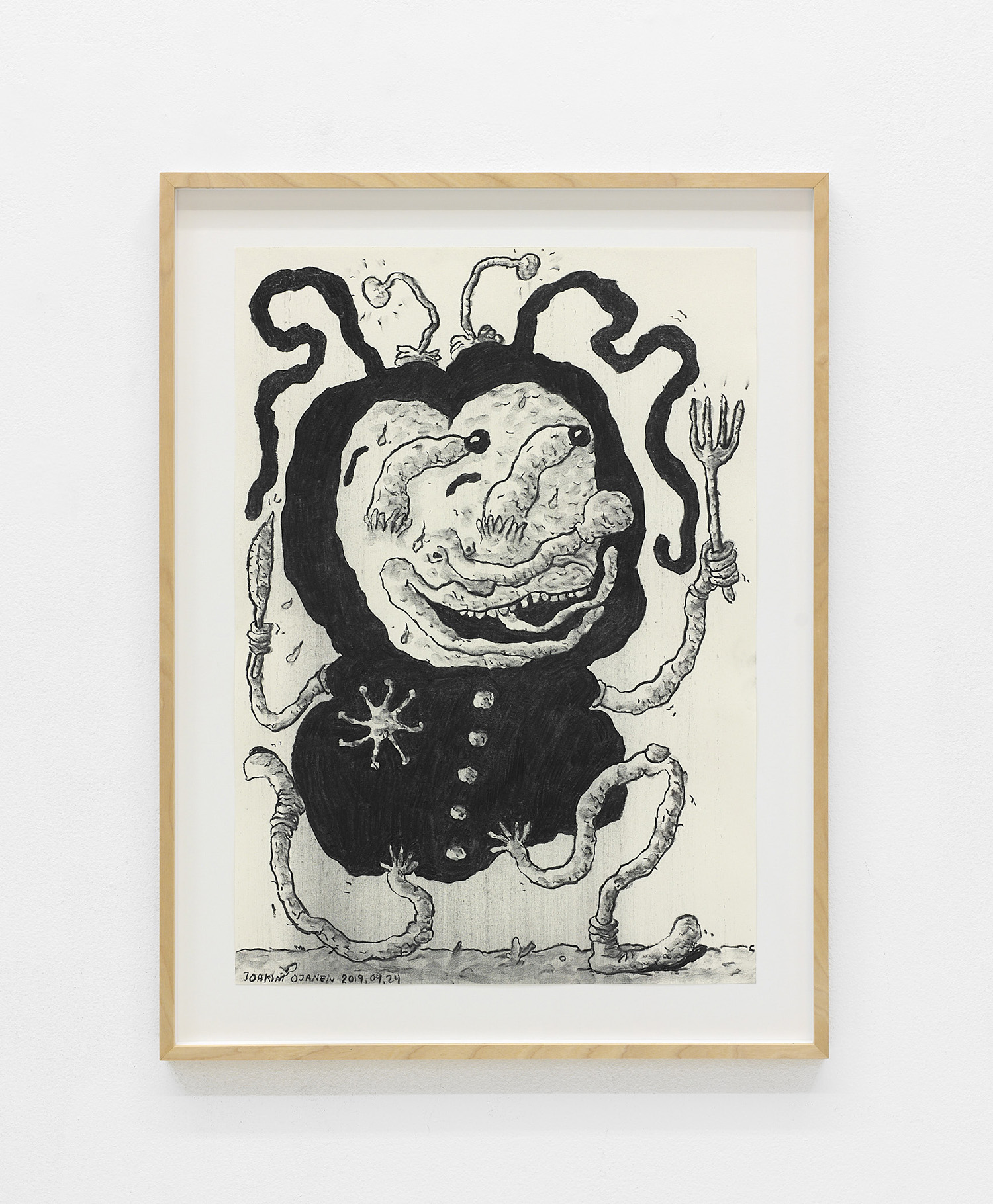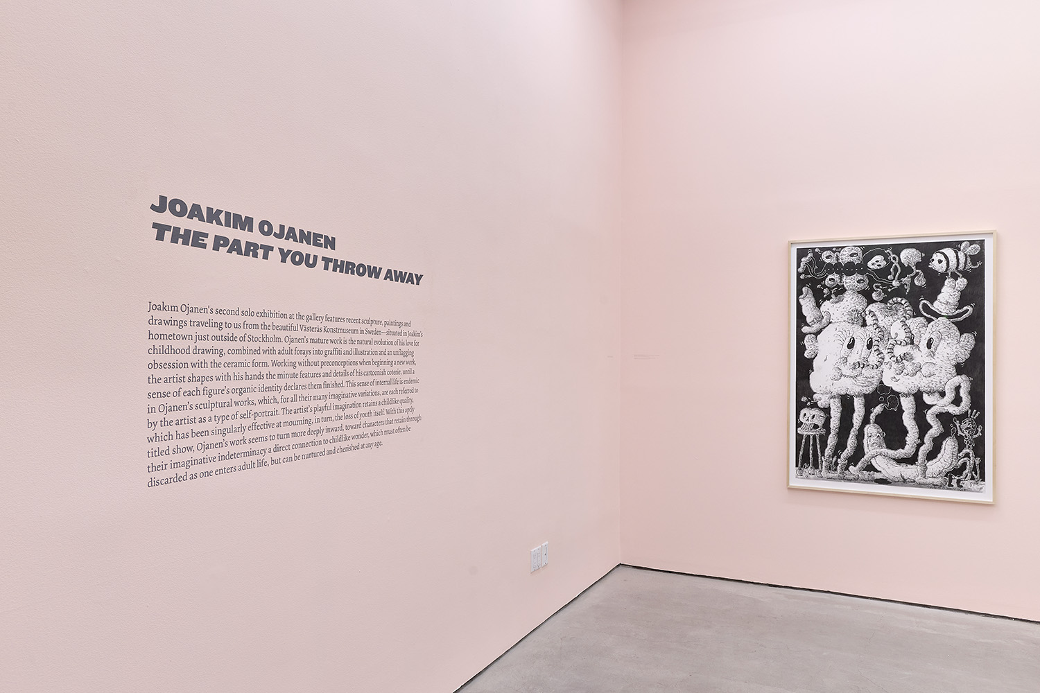 The Hole is pleased to announce the opening of The Part You Throw Away, a solo exhibition of recent sculpture, paintings, and drawings by Joakim Ojanen, on view from November 18th – January 2nd, 2021. This exhibition is traveling to us from the beautiful Västerås Konstmuseum in Sweden—situated in Joakim’s hometown just outside of Stockholm—and was organized by Västerås Konstmuseum’s Head Curator of Exhibitions, Katrin Ingelstedt. Västerås Konstmuseum also created a catalogue for the exhibition which will be available at The Hole. This is Ojanen’s second solo show at The Hole and comprises some of the artist’s most emotionally considerate, technically masterful and graphically outlandish works to date.