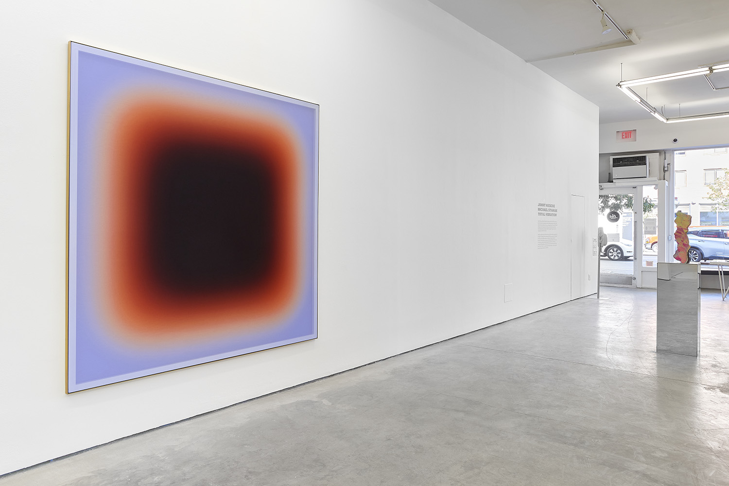 Works in Total Vibration chart a dual reality where the physical and virtual worlds intermingle, poking artistic transformations introduced in the post-analog age. Pulsing, psychedelic colors and reverberating surfaces abound: Niesche and Staniak interrogate their chosen materials and limn the digital circulation of culture and history, gesturing toward a new frontier both obsessed with the omnipresent Internet.