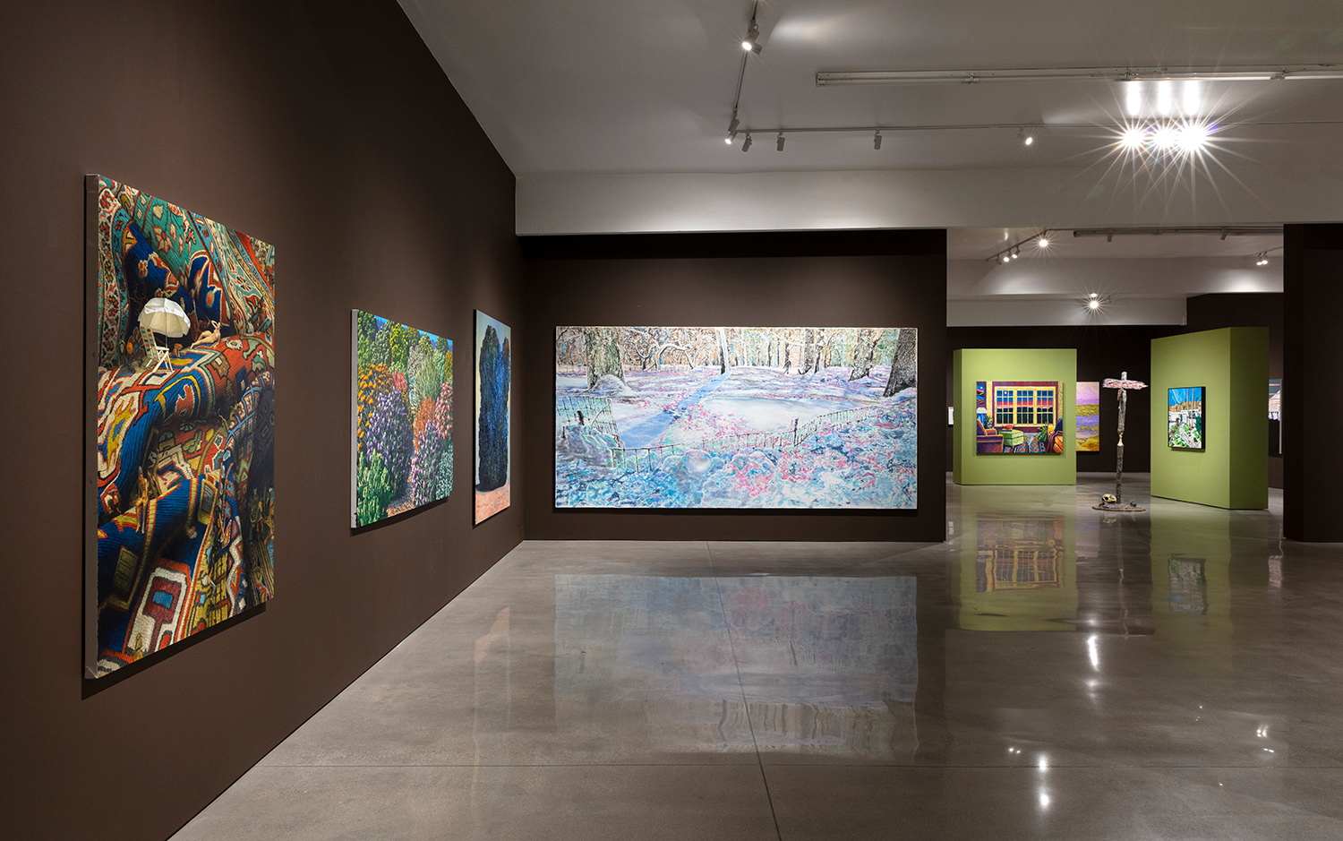 What I have been seeing in emerging landscape is a magical realism, a topiary-like control, and a digital framework. Magical realism has landscapes coming alive with activity and spirit, as in the detailed swirling works of Cecilia Fiona or Kate Klingbeil. The tight control of the natural world comes across in the discrete and symmetrical shapings of Matthew Fisher or Tim Irani. And the digital tools impacting our way of giving image to nature range from literal with Mathew Zefeldt and Gao Hang to more subtle with Lisa Vlaemminck and Ena Swansea.