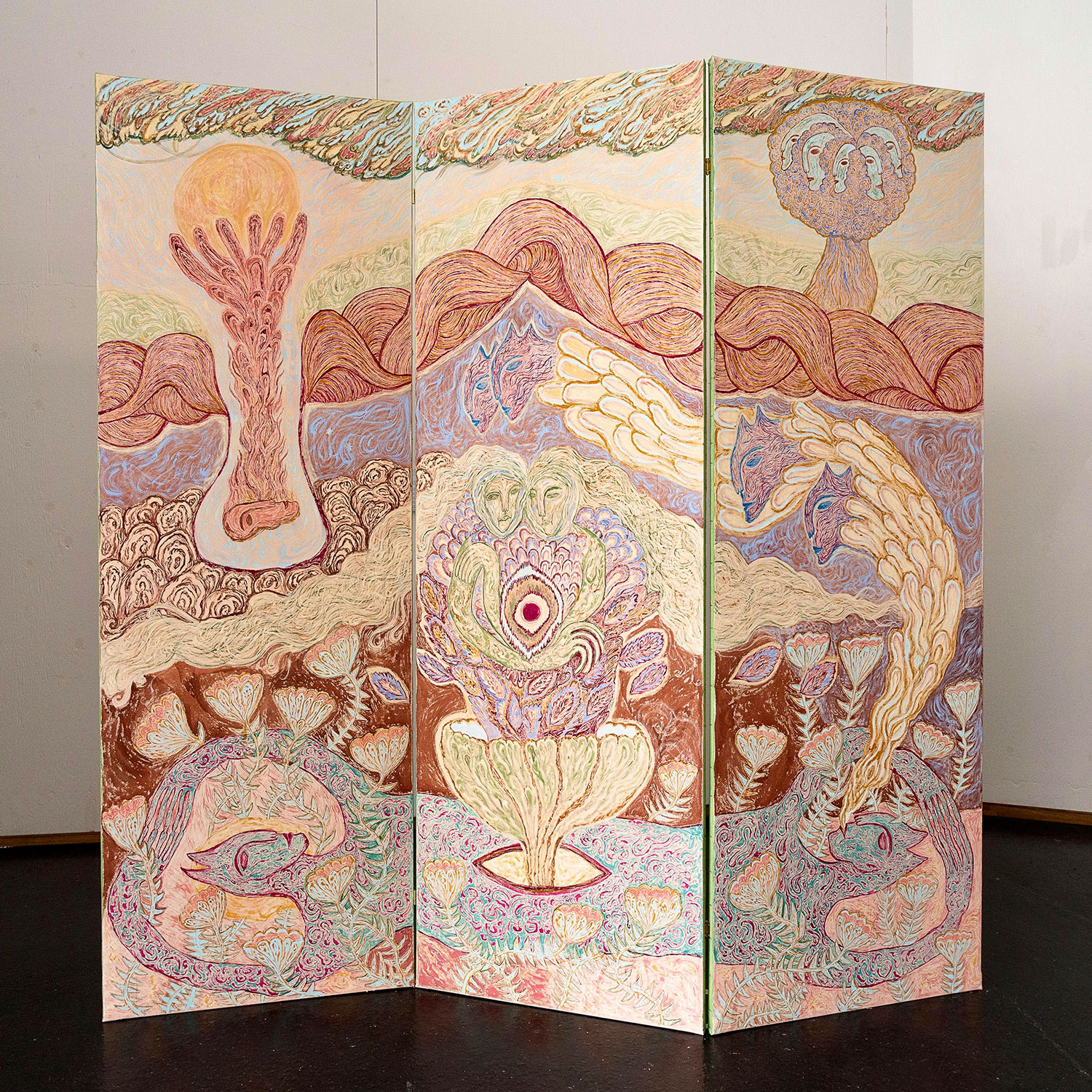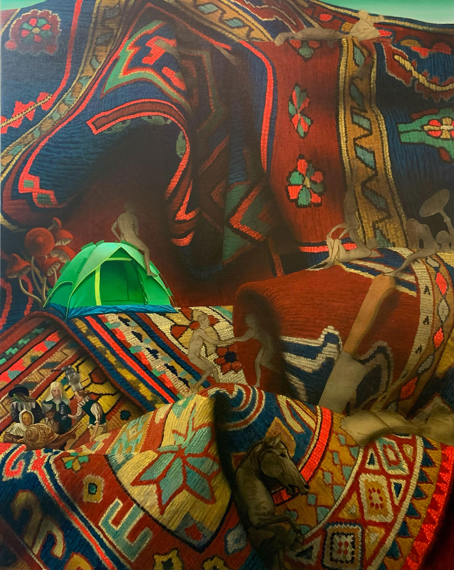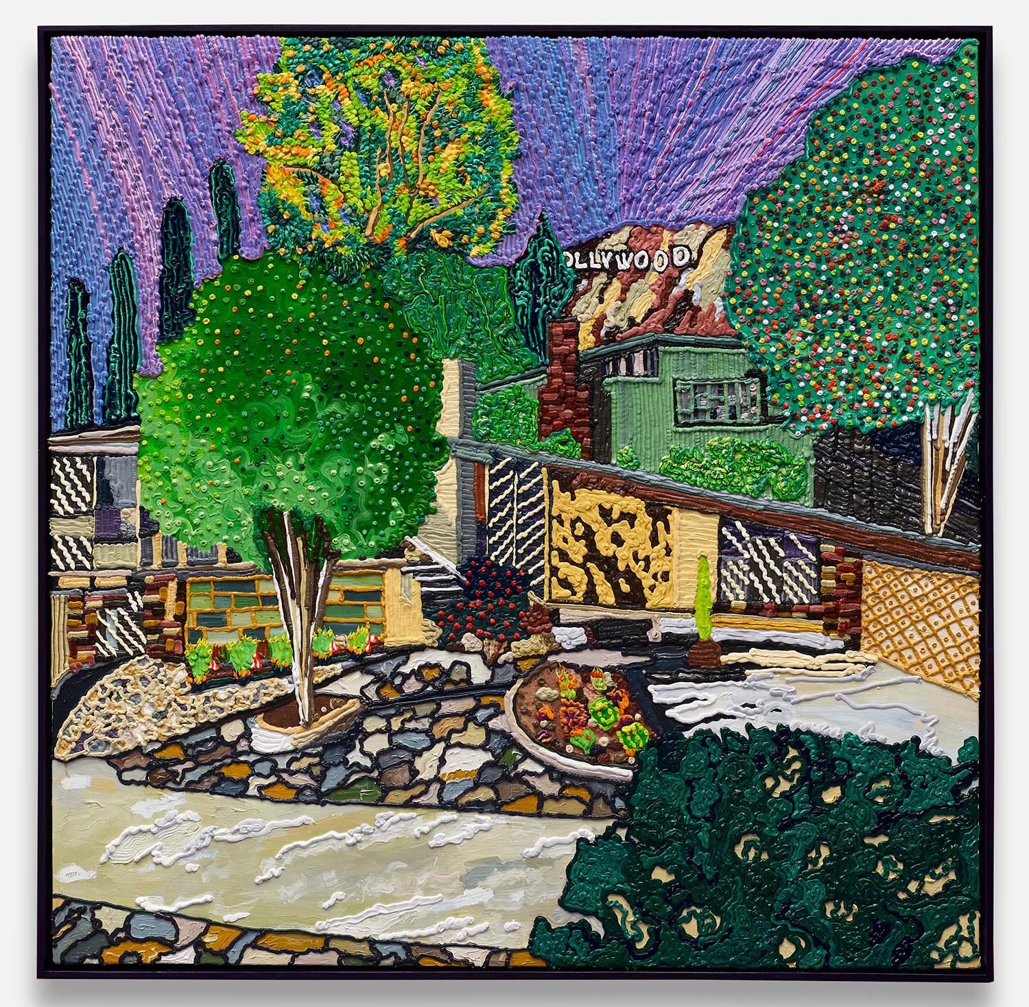In landscape today we see magical realism, a topiary-like control, and a digital framework. Magical realism has landscapes coming alive with activity and spirit, as in the detailed swirling screen by Cecilia Fiona. The tight control of the natural world comes across in the discrete and symmetrical shapings of Matthew Fisher or Anthony Miler. And the digital tools impacting our way of giving image to nature inform the work of Tim Irani or Matt Belk.