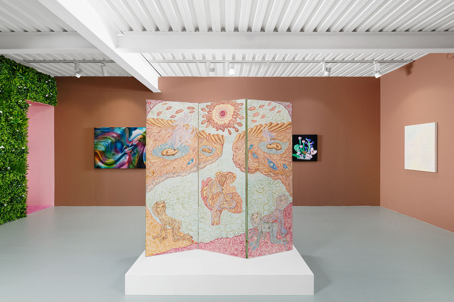 Paris, France — The Hole’s yearly thematic group extravaganza now across three galleries New York, Los Angeles and here at Superzoom, Manscaping looks at depictions of landscape today with a whiff of gender nonsense.