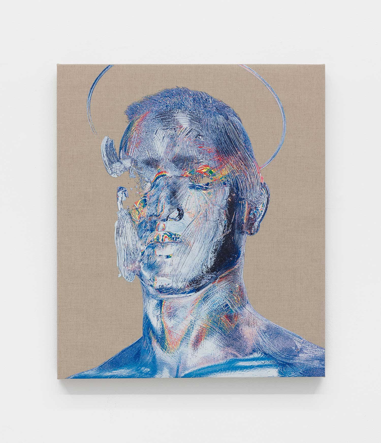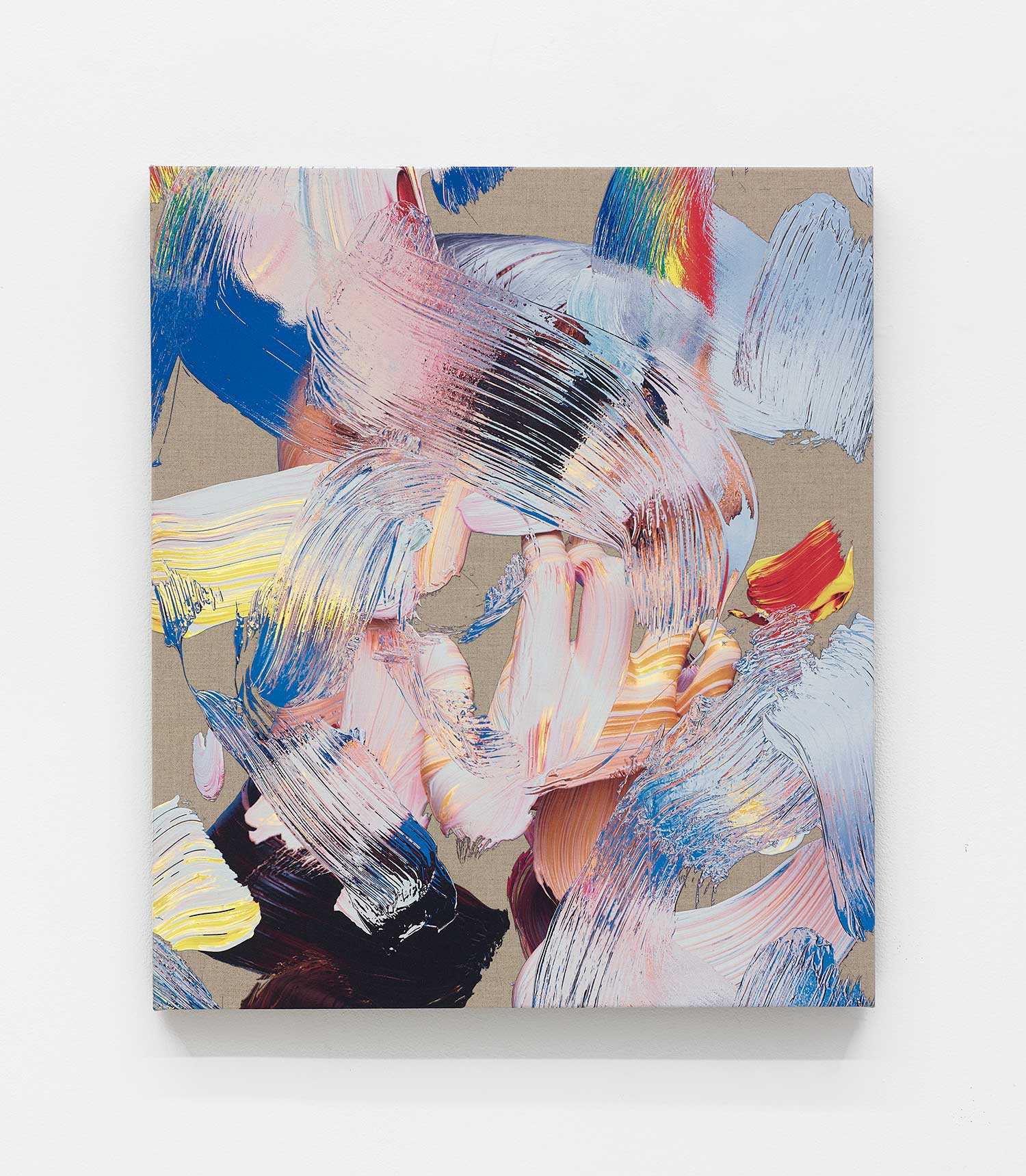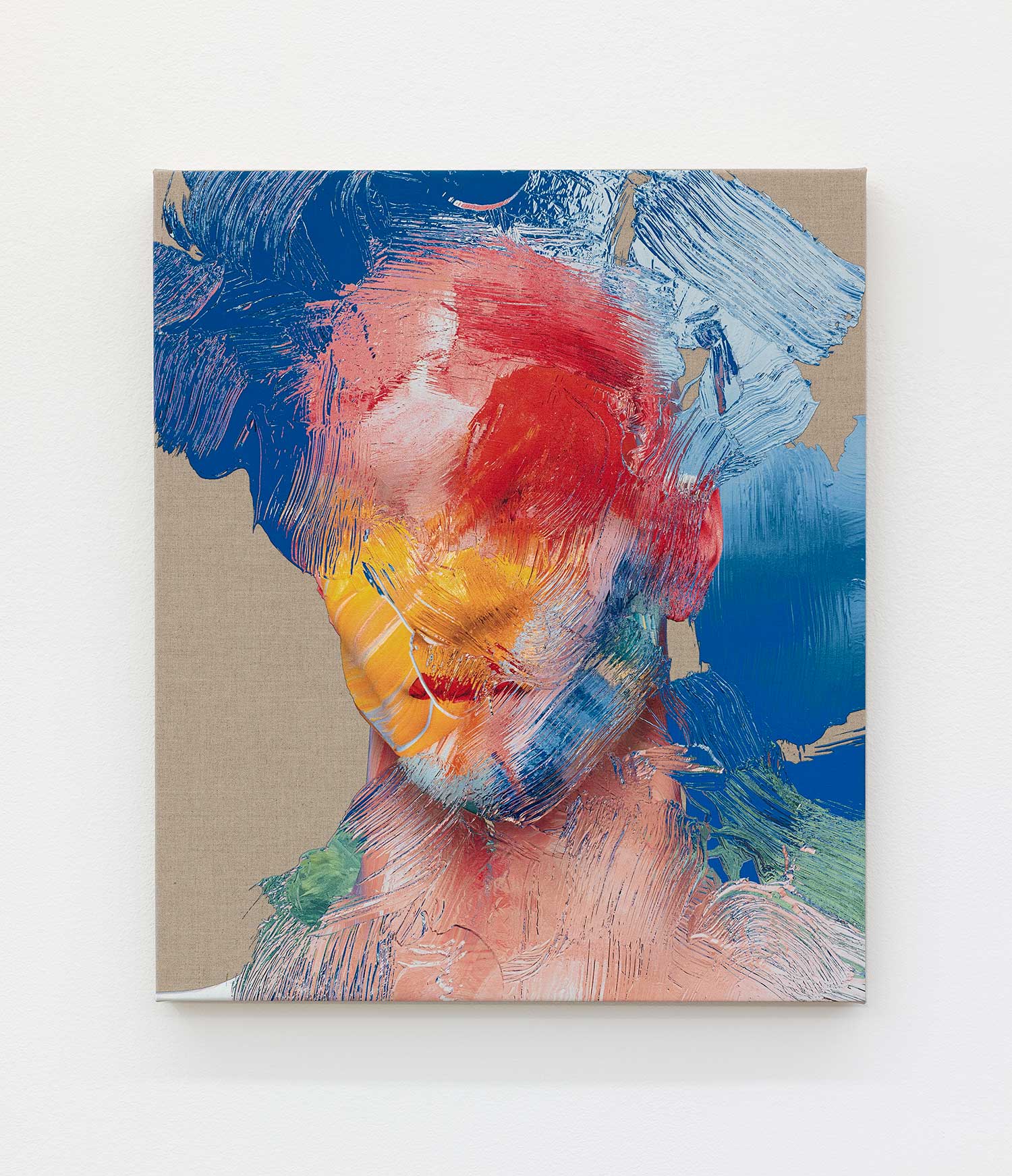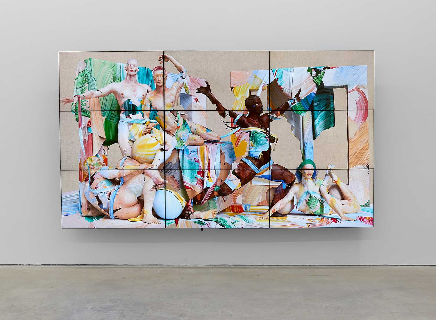 For this exhibition Stone presents works on linen and video in the gallery as well as related NFTs in the Metaverse. The centerpiece of the show is a large diptych where one panel is a heroic composition of figures on linen and the other panel is a giant LED screen “playing” the same figures and draped fabrics in fluid motion. Having long used 3D software to compose and combine his scanned brushstrokes, it was only natural to draw on his experience making lens-based works and expand his use of these programs to include movement and shifting camera angles. The artist was inspired to use a time-stretched version of the famous “Hitchcock Zoom” camera technique, where he zooms in and pulls away at the same time, often used to communicate a life-altering shift in perception, that “things will never be the same.” Add the moving, blinking figures and the paintings seems to be “awakening” and edging deeper and deeper into a parallel and limitless world. The artist suggests that we might think of painting as an early form of VR, which is an intentionally provocative statement pointing to how all image making is rendering subjective visions of reality.