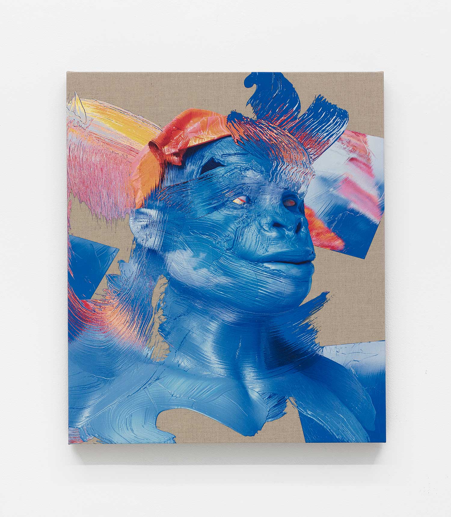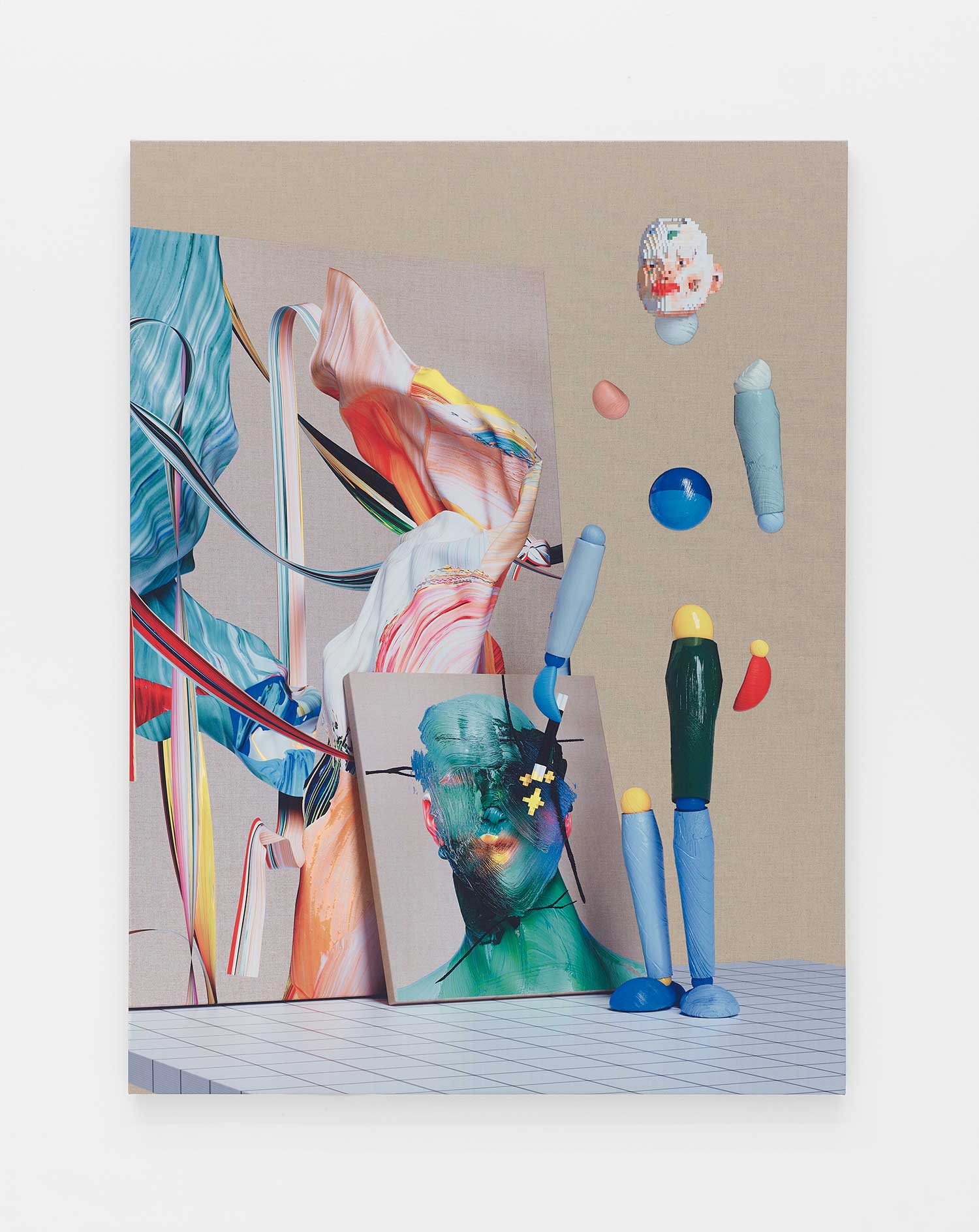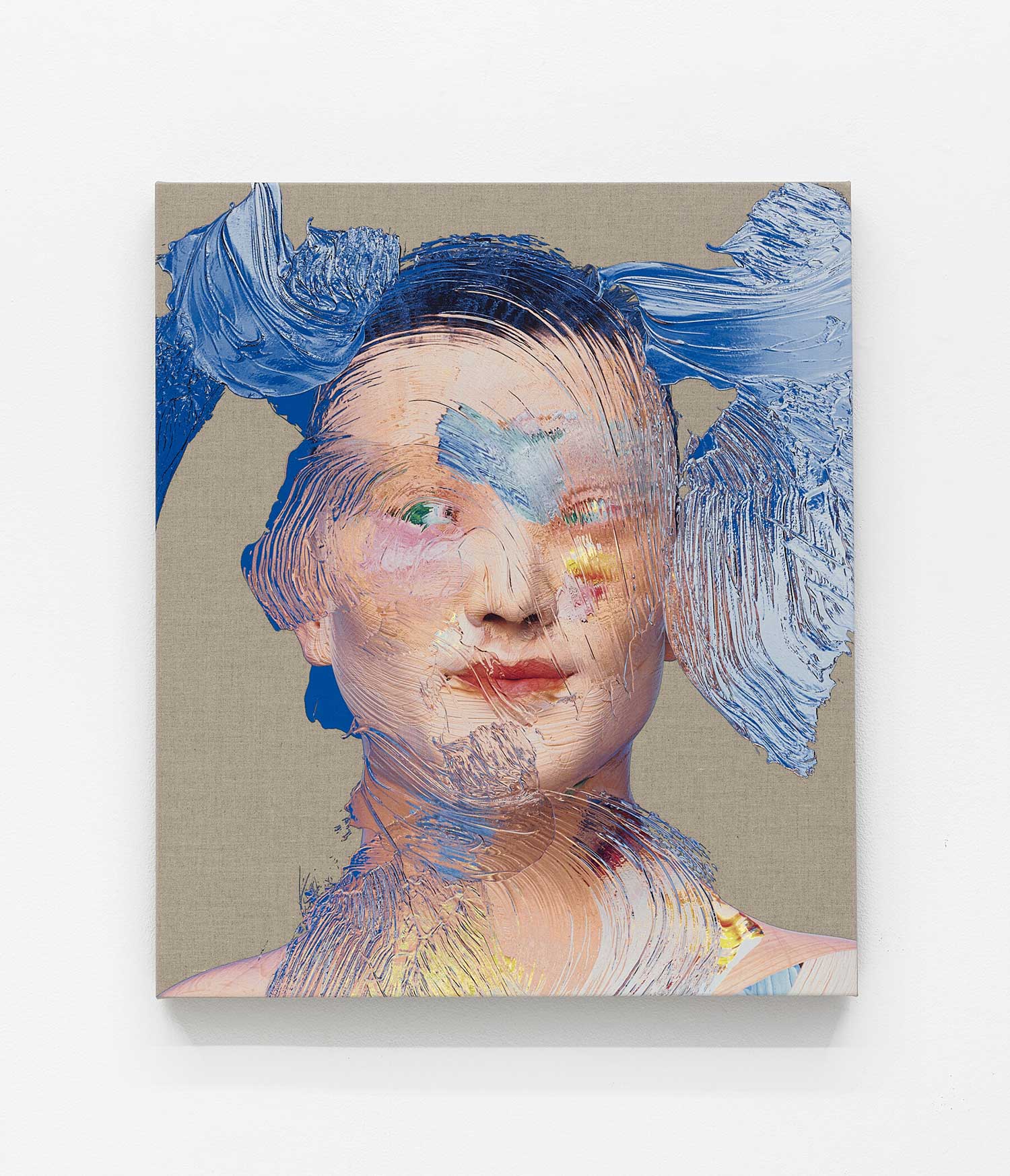 For this exhibition Stone presents works on linen and video in the gallery as well as related NFTs in the Metaverse. The centerpiece of the show is a large diptych where one panel is a heroic composition of figures on linen and the other panel is a giant LED screen “playing” the same figures and draped fabrics in fluid motion. Having long used 3D software to compose and combine his scanned brushstrokes, it was only natural to draw on his experience making lens-based works and expand his use of these programs to include movement and shifting camera angles. The artist was inspired to use a time-stretched version of the famous “Hitchcock Zoom” camera technique, where he zooms in and pulls away at the same time, often used to communicate a life-altering shift in perception, that “things will never be the same.” Add the moving, blinking figures and the paintings seems to be “awakening” and edging deeper and deeper into a parallel and limitless world. The artist suggests that we might think of painting as an early form of VR, which is an intentionally provocative statement pointing to how all image making is rendering subjective visions of reality.