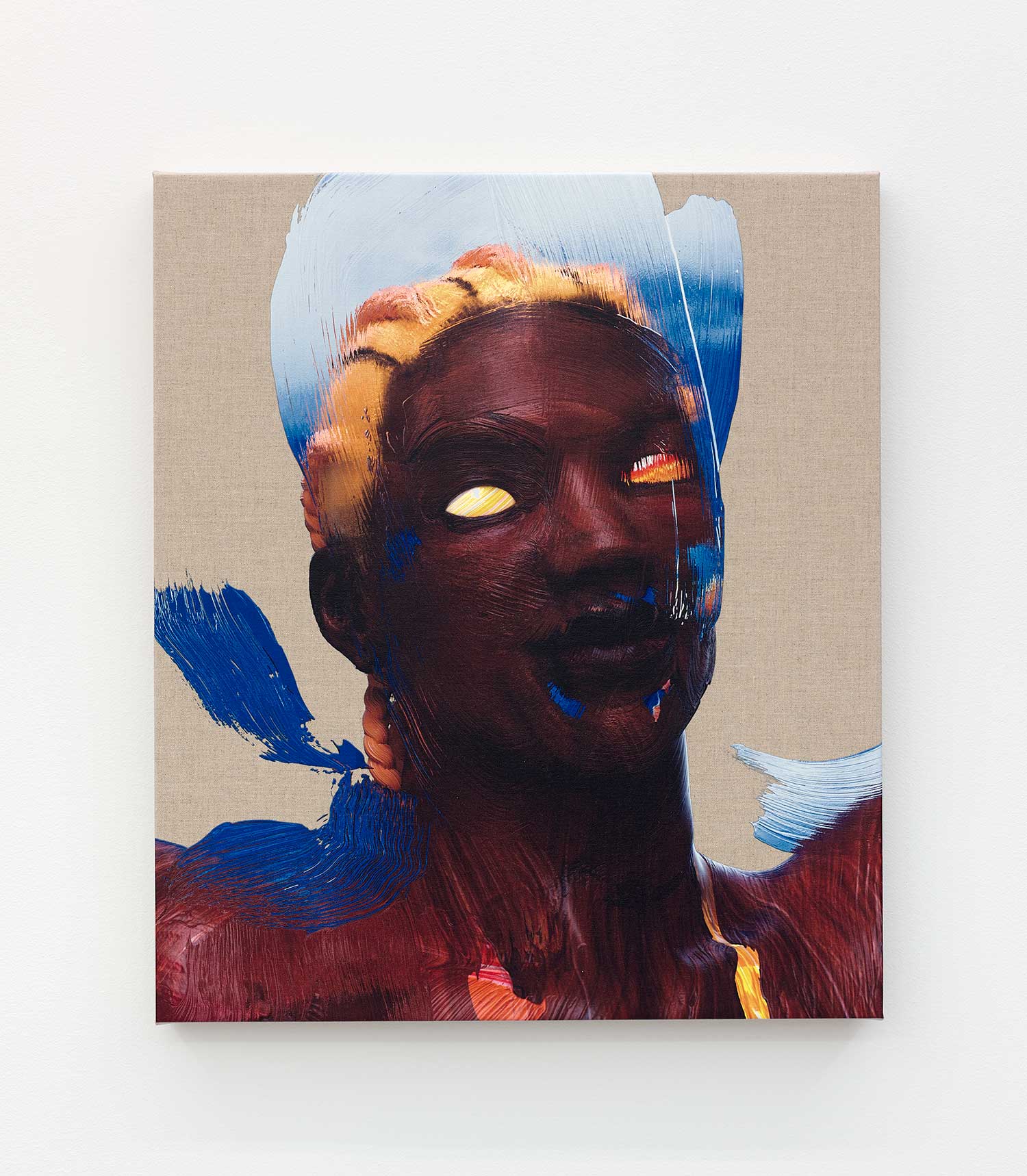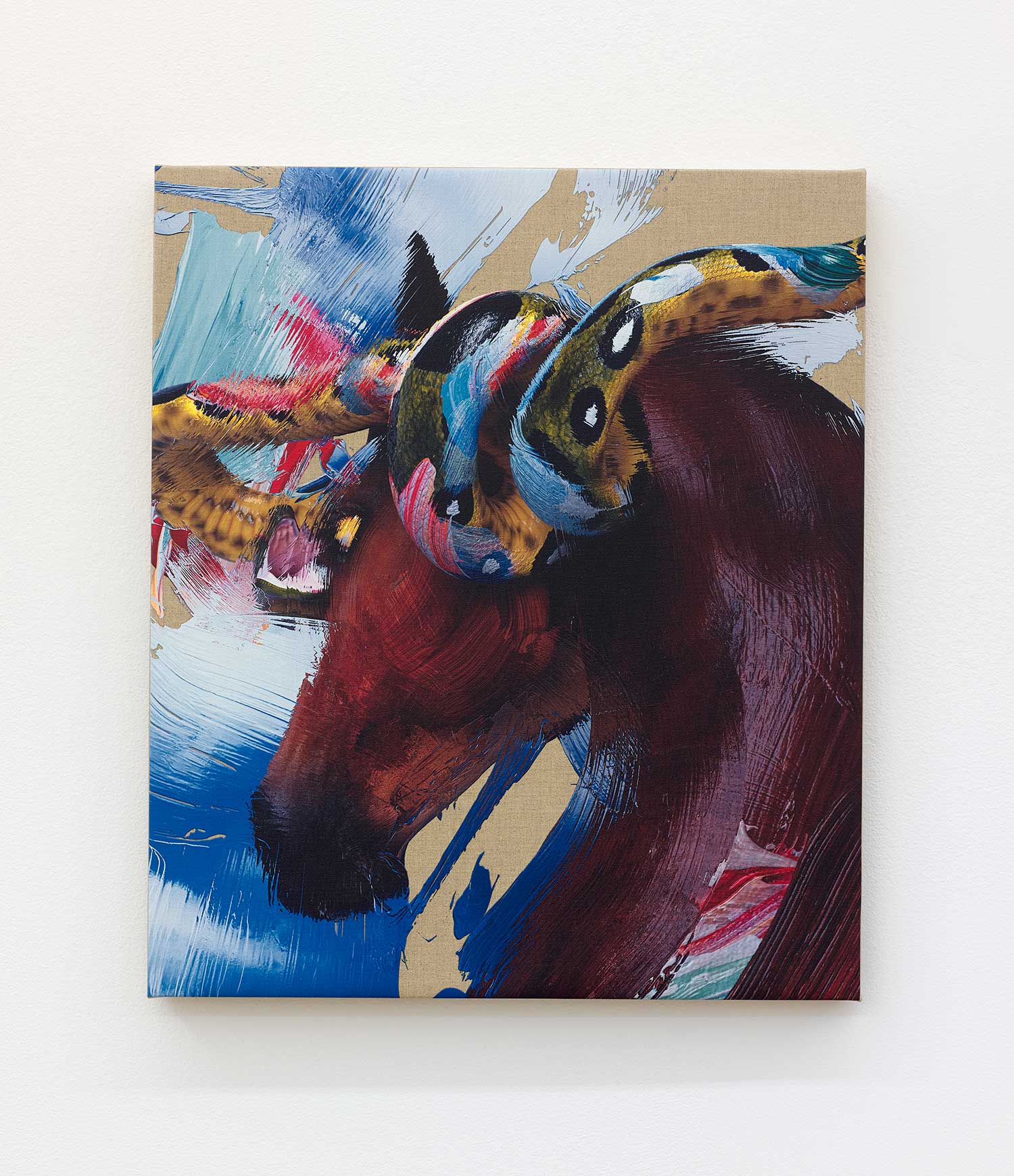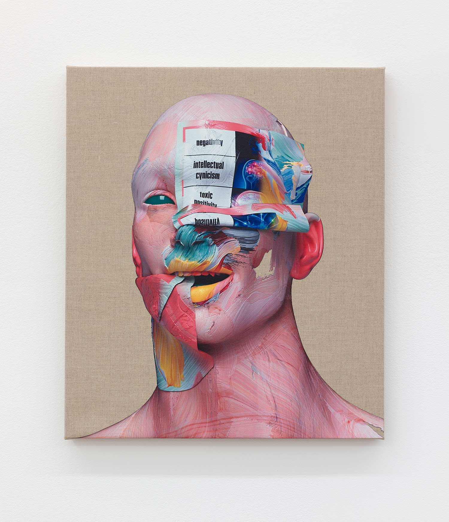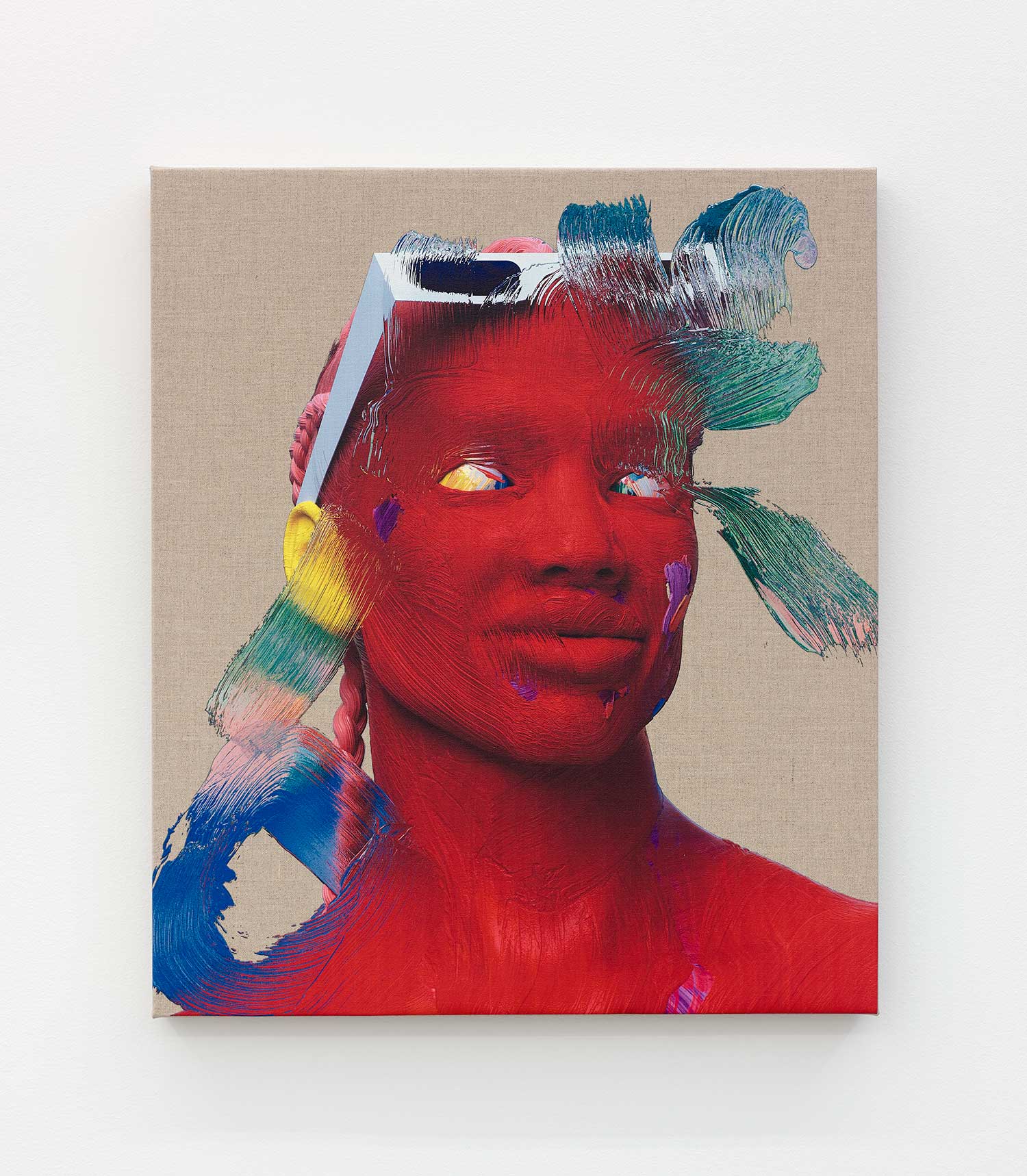 For this exhibition Stone presents works on linen and video in the gallery as well as related NFTs in the Metaverse. The centerpiece of the show is a large diptych where one panel is a heroic composition of figures on linen and the other panel is a giant LED screen “playing” the same figures and draped fabrics in fluid motion. Having long used 3D software to compose and combine his scanned brushstrokes, it was only natural to draw on his experience making lens-based works and expand his use of these programs to include movement and shifting camera angles. The artist was inspired to use a time-stretched version of the famous “Hitchcock Zoom” camera technique, where he zooms in and pulls away at the same time, often used to communicate a life-altering shift in perception, that “things will never be the same.” Add the moving, blinking figures and the paintings seems to be “awakening” and edging deeper and deeper into a parallel and limitless world. The artist suggests that we might think of painting as an early form of VR, which is an intentionally provocative statement pointing to how all image making is rendering subjective visions of reality.
