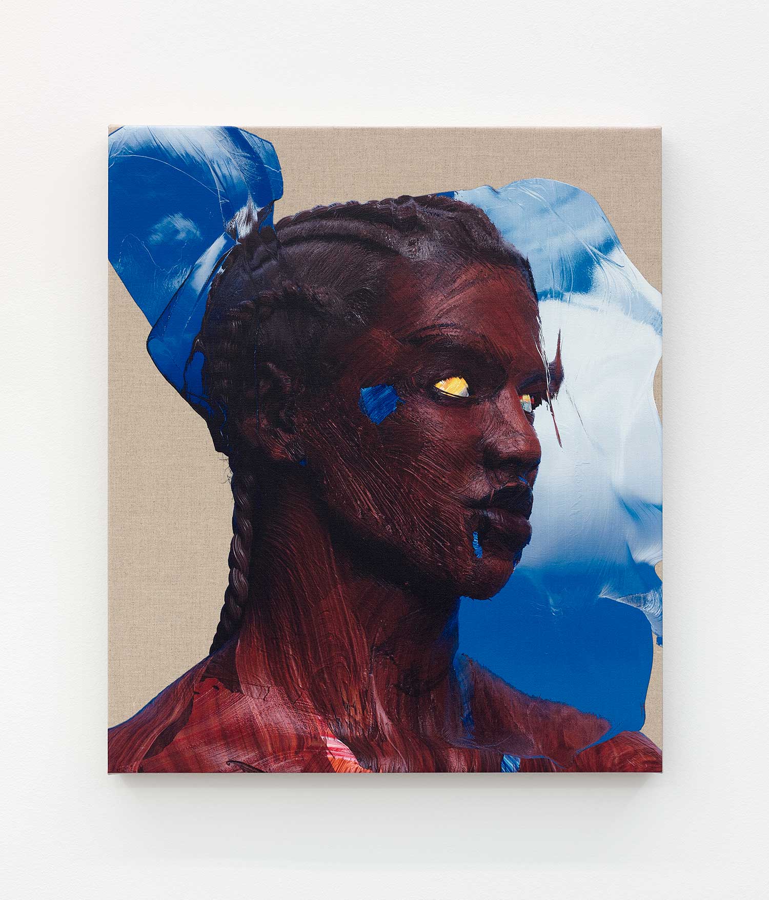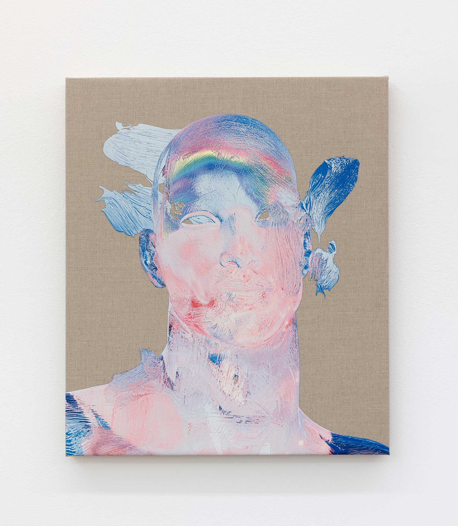 One wall of the show features thirty portraits, available as linens paired with free NFTs, or NFTs paired with free linens, depending on your entry-point and orientation. They pay homage to the seminal 2017 “Cryptopunks” NFT project and explore the phenomenon of ownable jpgs as avatar, digital portraiture and of shifting creative identities in the metaverse. A suggested use for these works is that their collectors use them as profile pictures on social media. They are also a love letter to all he has been learning about and experiencing the past year.