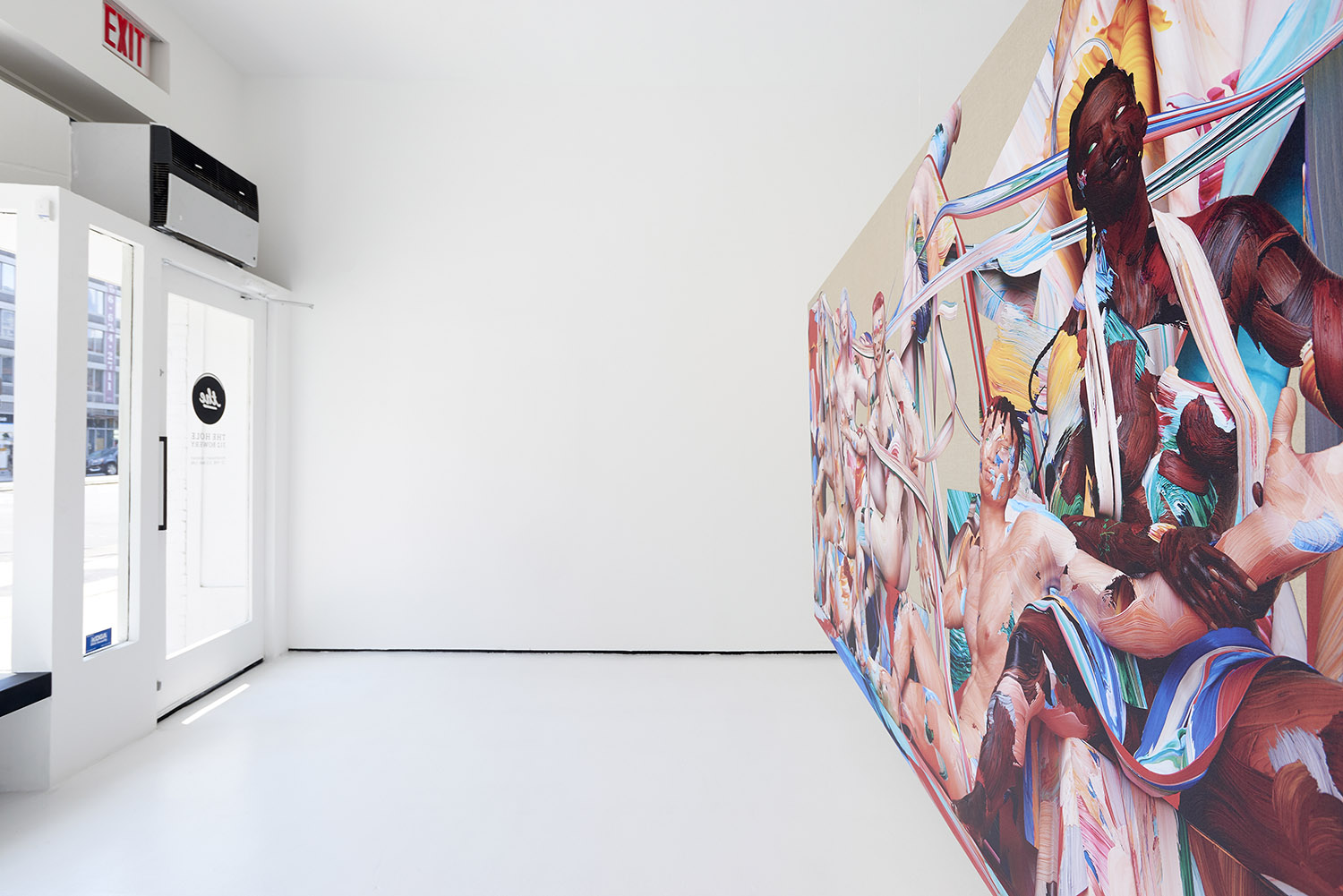 The Hole is happy to present one fantastic piece by Matthew Stone in our new storefront gallery. This artwork, Together, was made in 2019 and completed earlier this year. The artist says, “I did not make the piece with this extraordinary moment in mind and do not feel that it is of more relevance now than before. It is and has been my intention to create images that show people together and at ease with each other. That togetherness is a part of the reality I see around me, but also a part of a vision I hold for a future that is defined by collective healing, which includes my own transformation.”