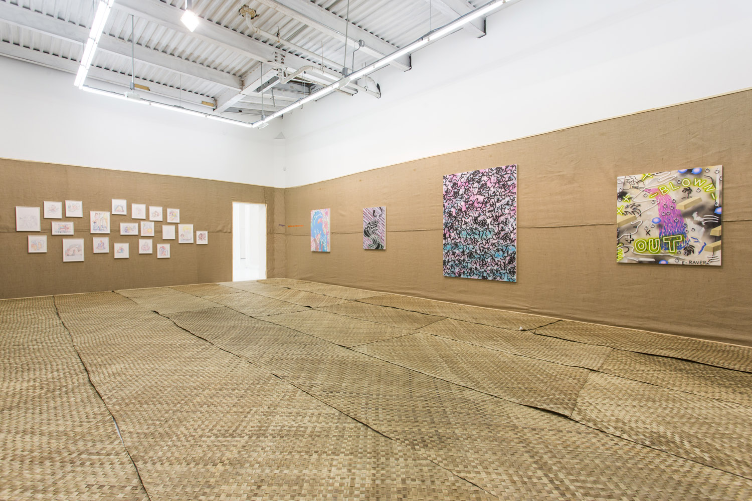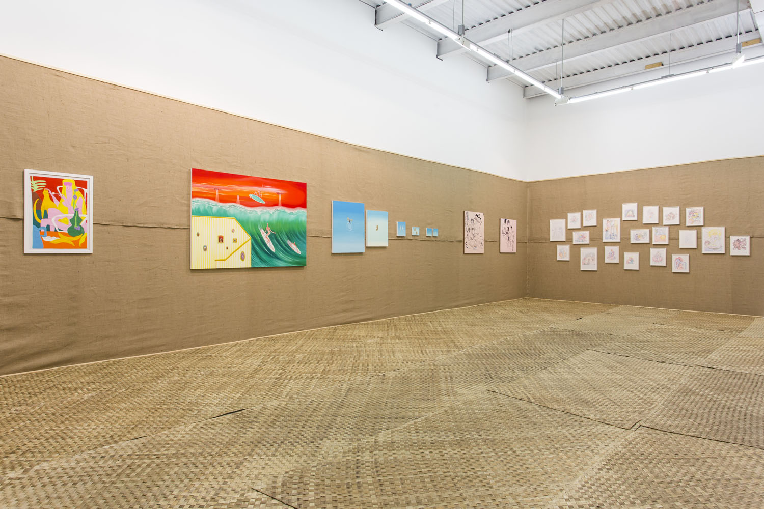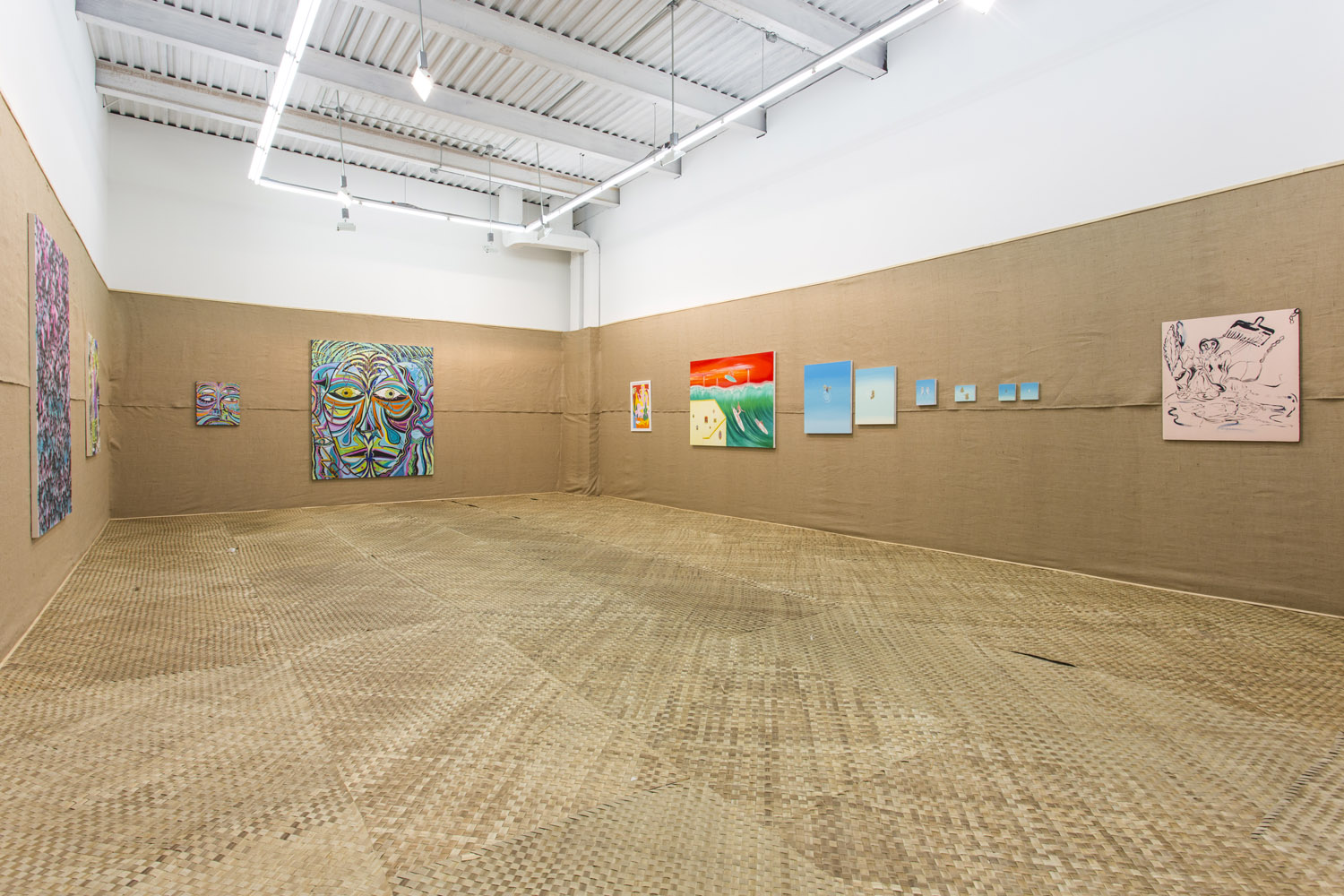 The Hole is proud to announce a group show of raw and fuzzy figuration in our Gallery 3 space featuring paintings and works on paper by nine contemporary artists. In a natural fiber-covered gallery of browns and tans, these bright works will look at the Fauvist impulses of some artists today and in what ways they use strong color and fanciful rendering to deviate from traditional representation.