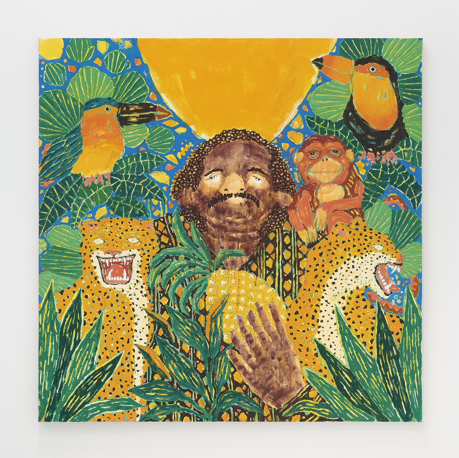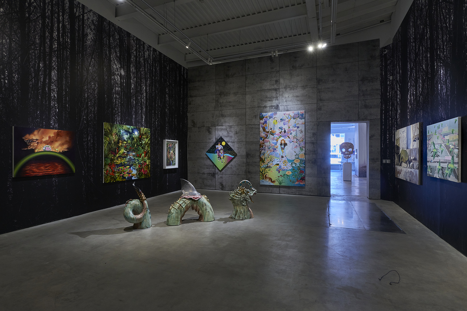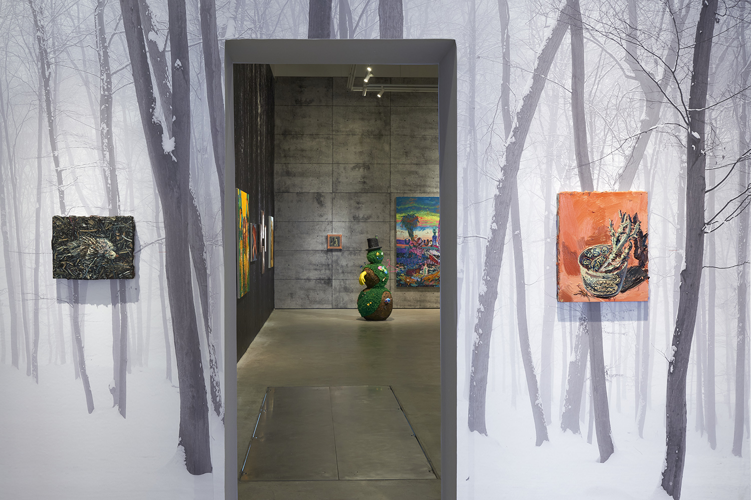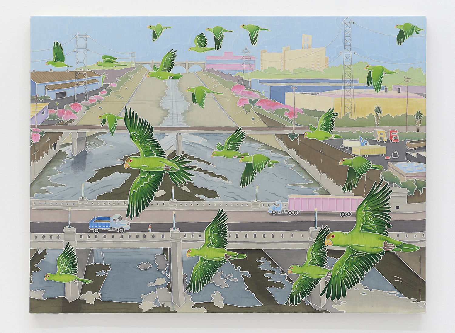 Responding to the climate crisis in disparate ways, the artists in Nature Morte depict disease, death and dark nature—the animals are taxidermied and the fruits inedible. From a delicate dead sparrow by Allison Schulnik to a gigantic bronze CGI lion by Austin Lee; a forest fire by Aaron Elvis Jupin to a highway overpass by Adam de Boer; even the lively-looking works have a whiff of death to them, like Rosson Crow’s vibrant jungle laced with tar pits.