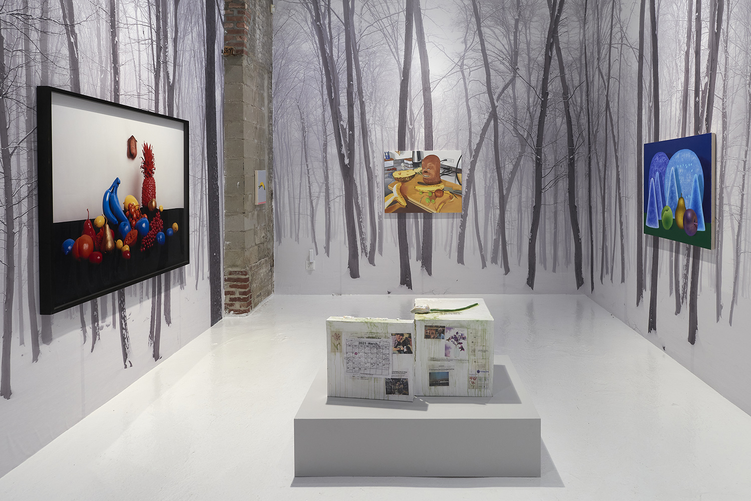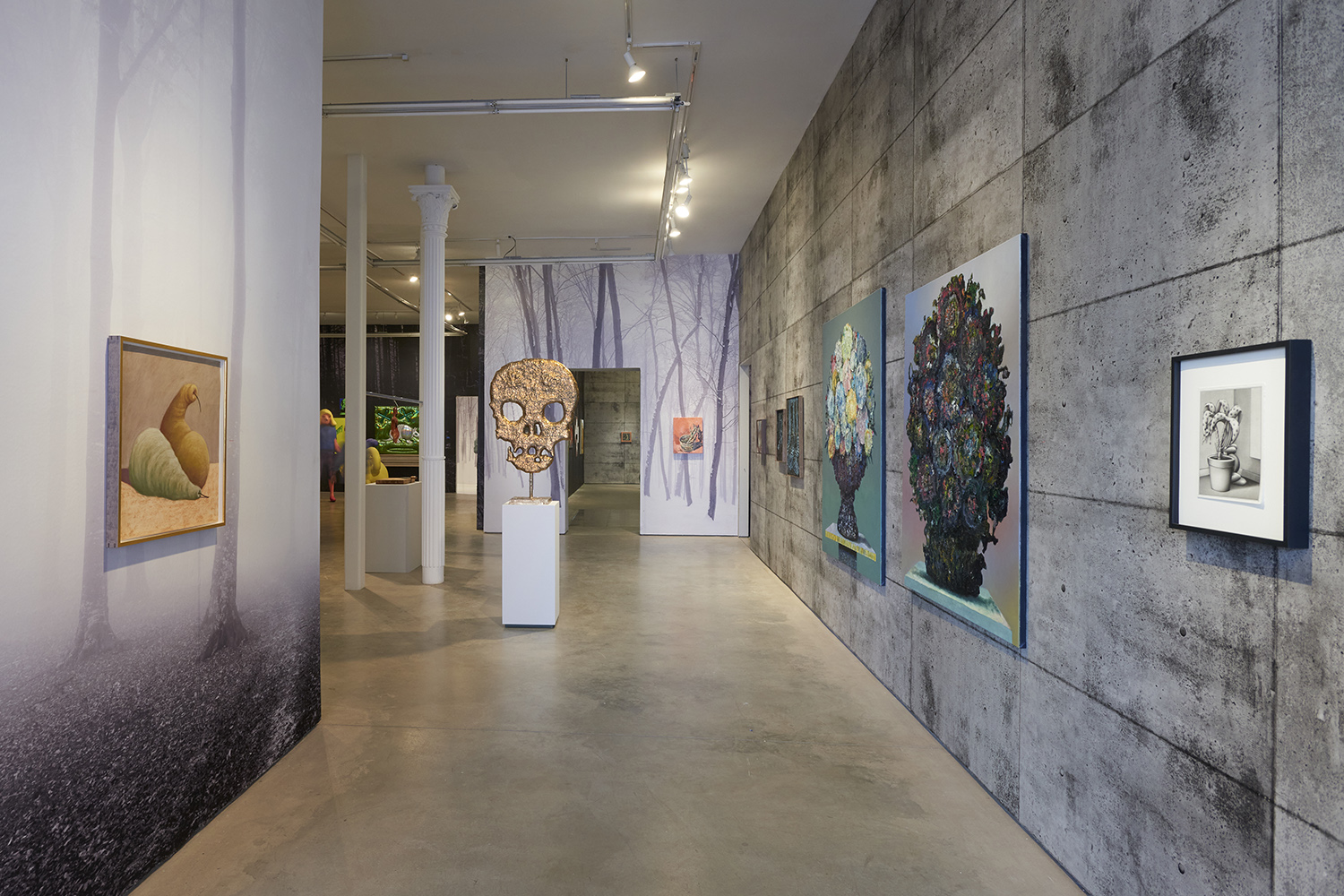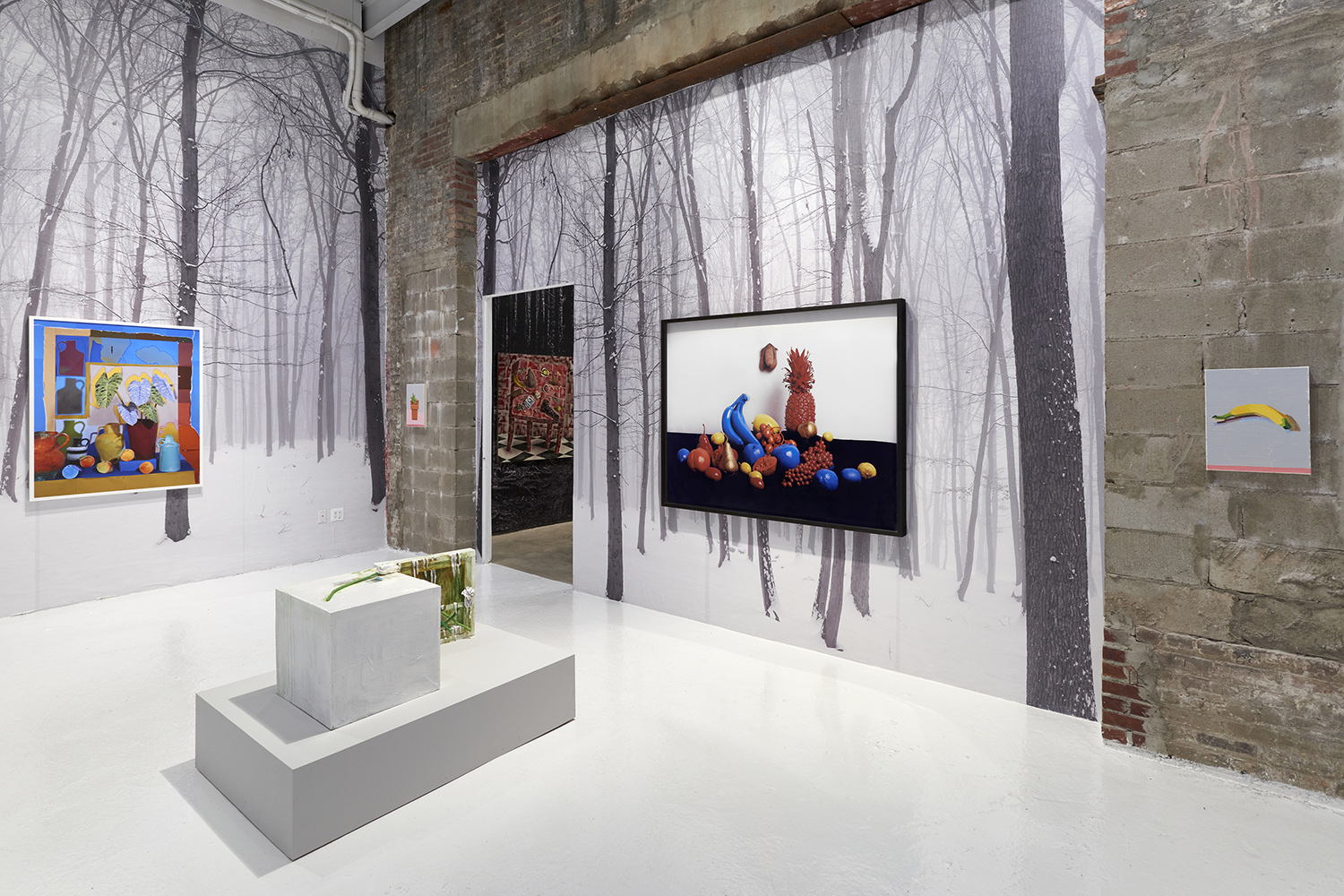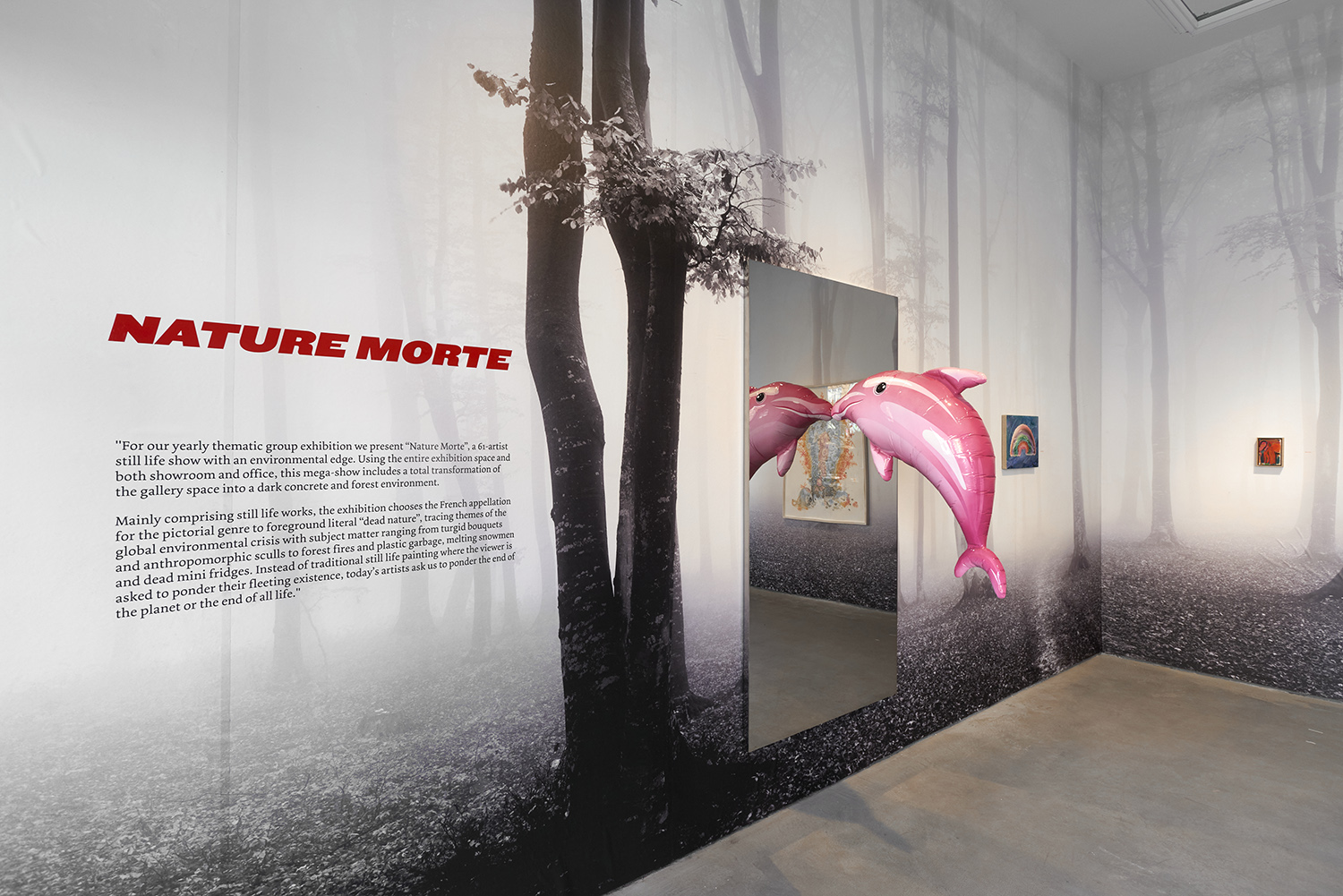 For our yearly thematic group exhibition we present Nature Morte, a 60-artist still life show with an environmental edge. Using the entire exhibition space and both showroom and office, this mega-show includes a total transformation of the gallery space into a dark concrete and forest environment.