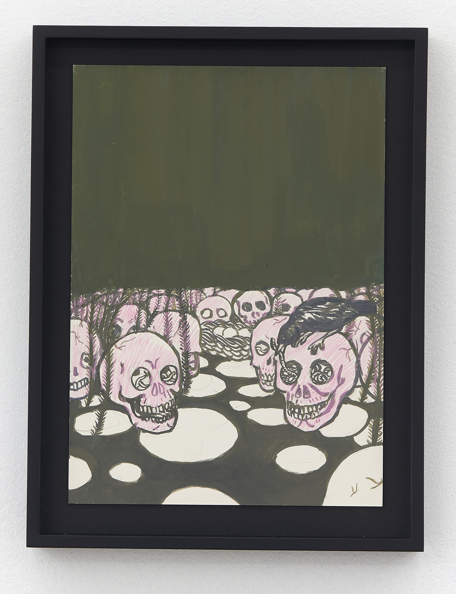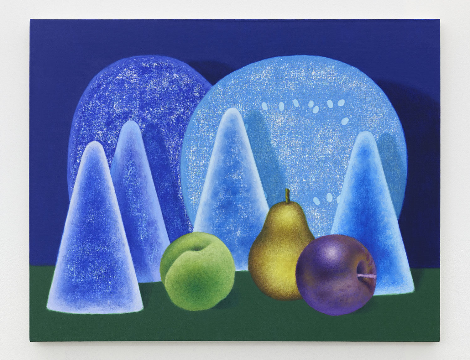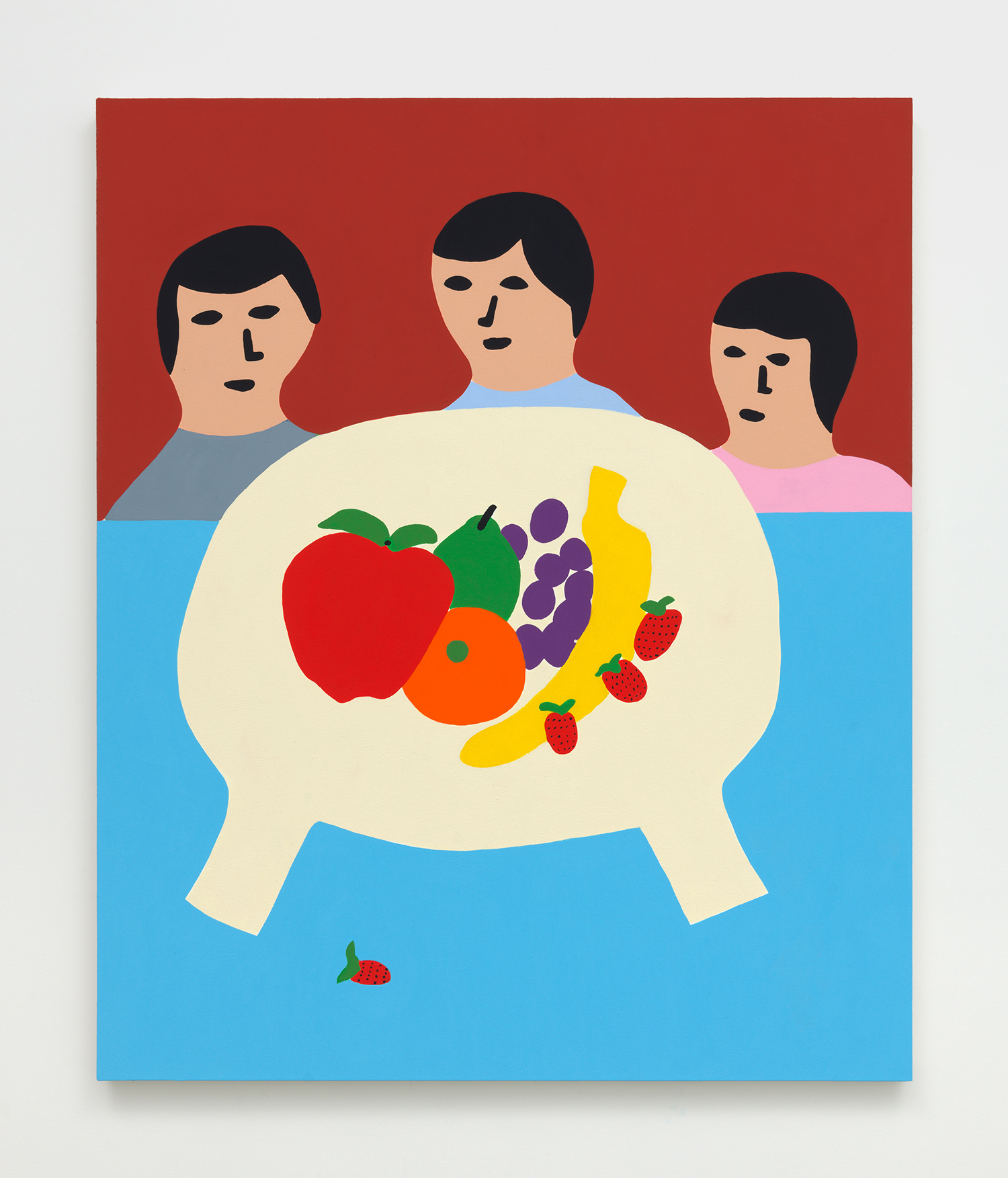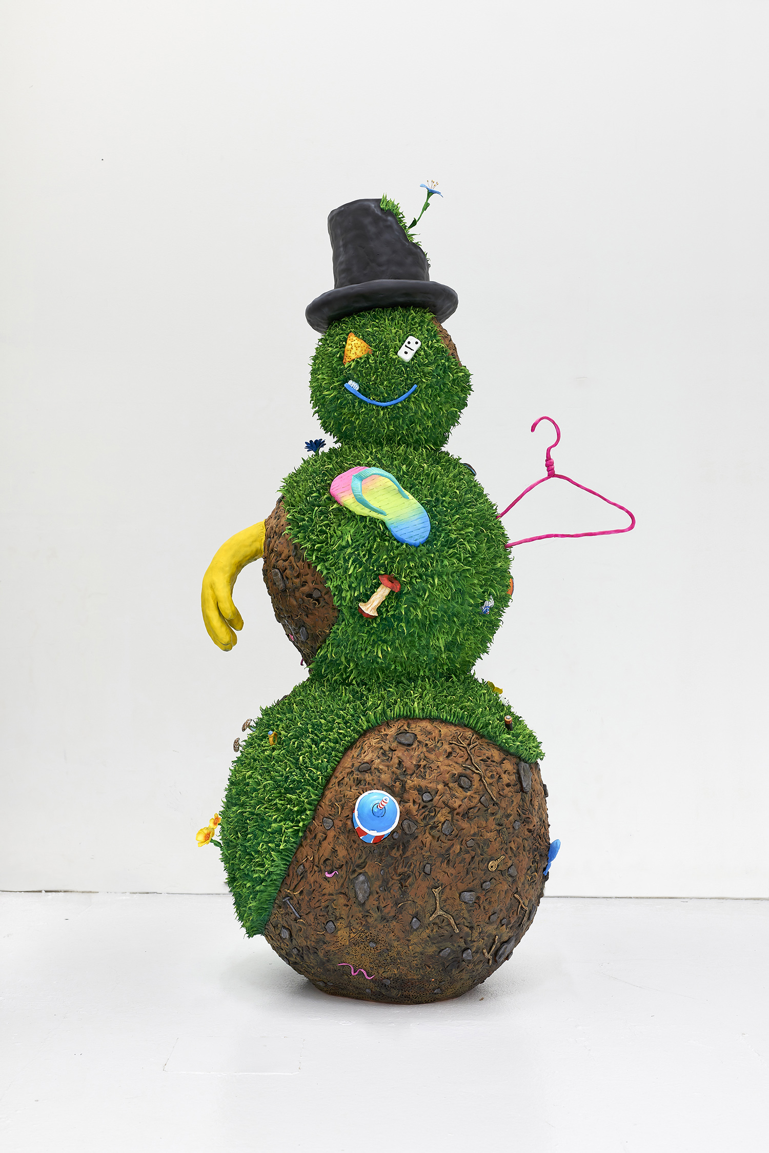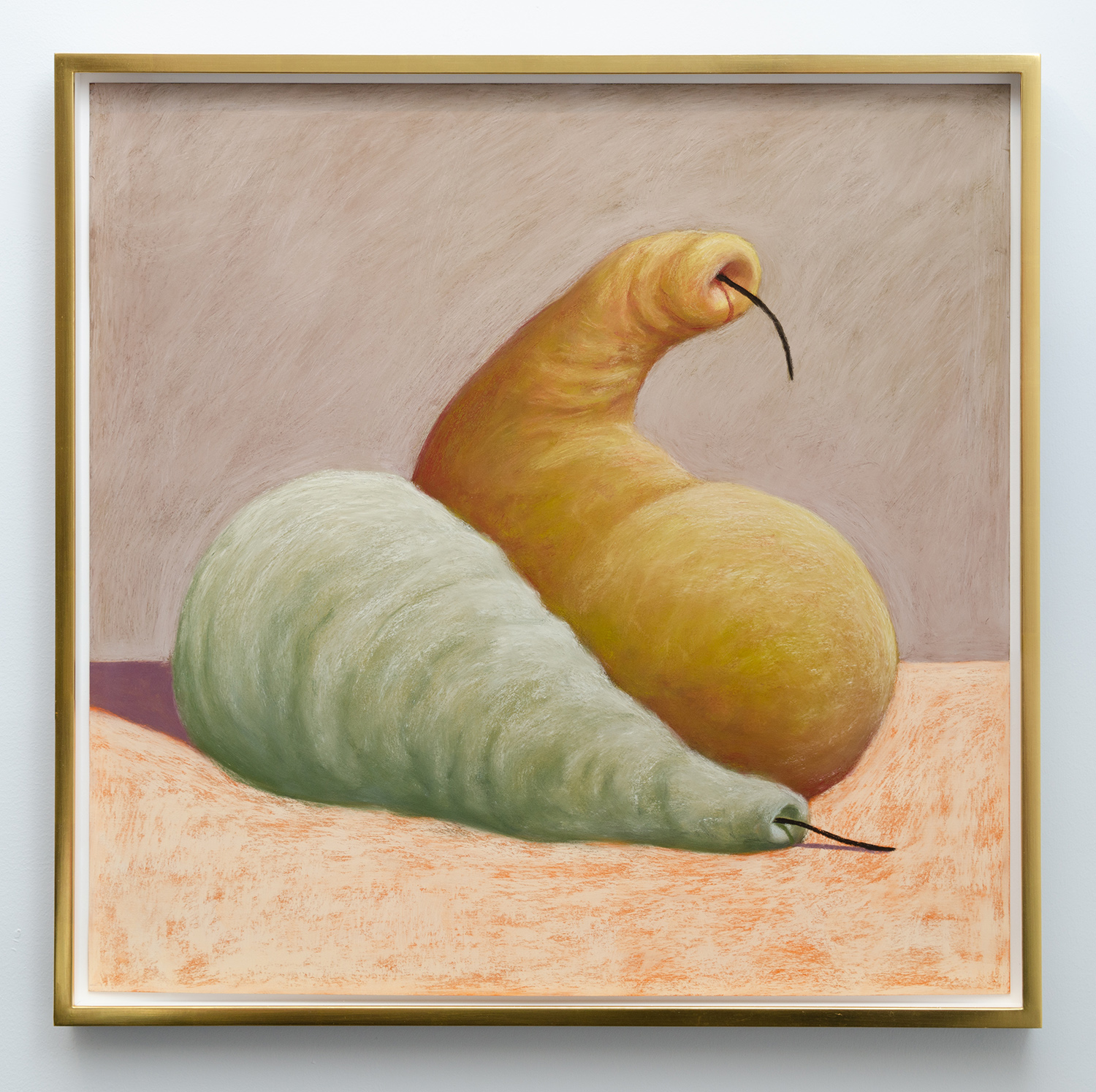 Mainly comprising still life works, the exhibition chooses the French appellation for the pictorial genre to foreground literal “dead nature”, tracing themes of the global environmental crisis with subject matter ranging from turgid bouquets (Ivan Seal) and Holbein-inspired skulls (Robert Lazzarini) to a roasted duck on a hook (Stephanie H. Shih) and a melting garbage snowman (Theo A. Rosenblum and Chelsea Seltzer).