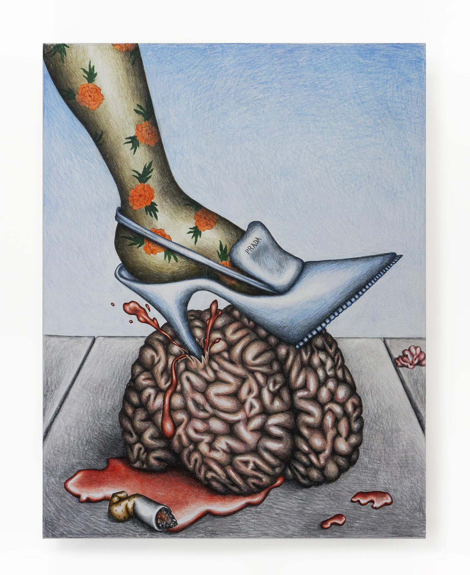 When pondering death in the 17th century, audiences looked at skulls, blown out candles, dead animals, flowers and fruits—and bubbles for some reason. Today we gaze upon much of the same, plus melting mini-fridges, sliced up butterflies, flooding, cigarette butts and mylar balloons. Collectively, the works in Nature Morte contemplate death at a time when humanity’s doom is realistically into view; life is fleeting as you see a blown out candle or life is fleeting as you see melting ice sheet chunks the size of Manhattan. All these artists have one eye on the death of the natural world—the extinction of the human race, even—whether painting a shoe or a skull.