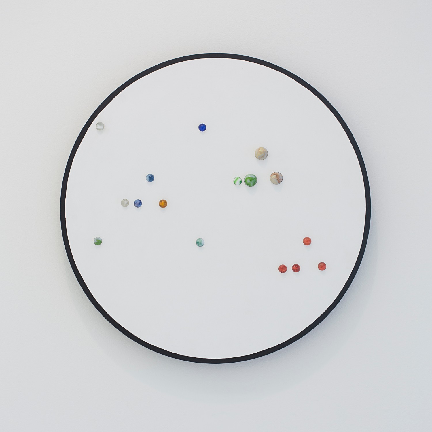 Evan Robarts uses a weathered chain link fence as his canvas and places found colored balls where he would otherwise want to apply paint. Martha Friedman casts colored rubber to make what looks like a slice of pimento loaf stuck to the wall; the rectilinear format makes us look at the pimento placement as “composition” and the scale shift from tiny to huge loaf lends itself to looking at lunchmeat as landscape.