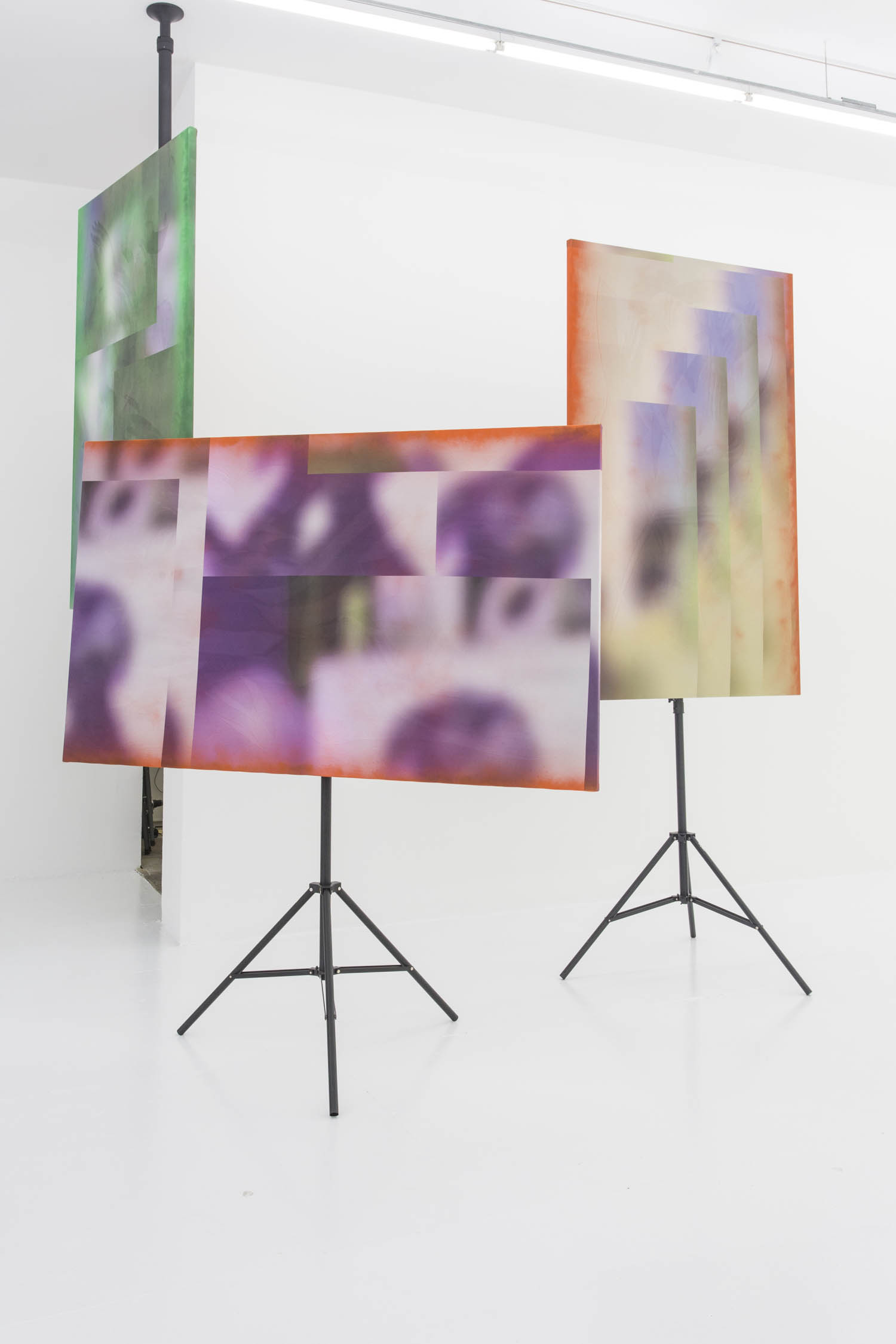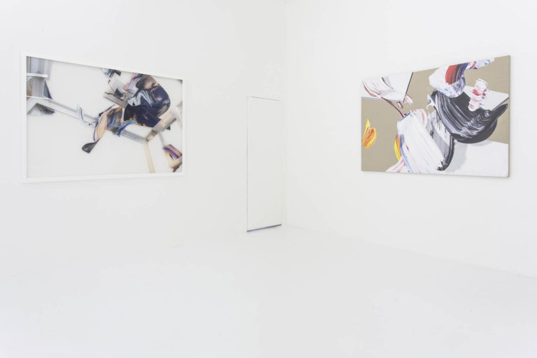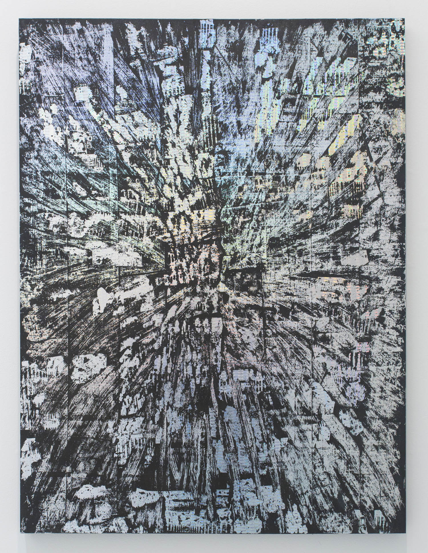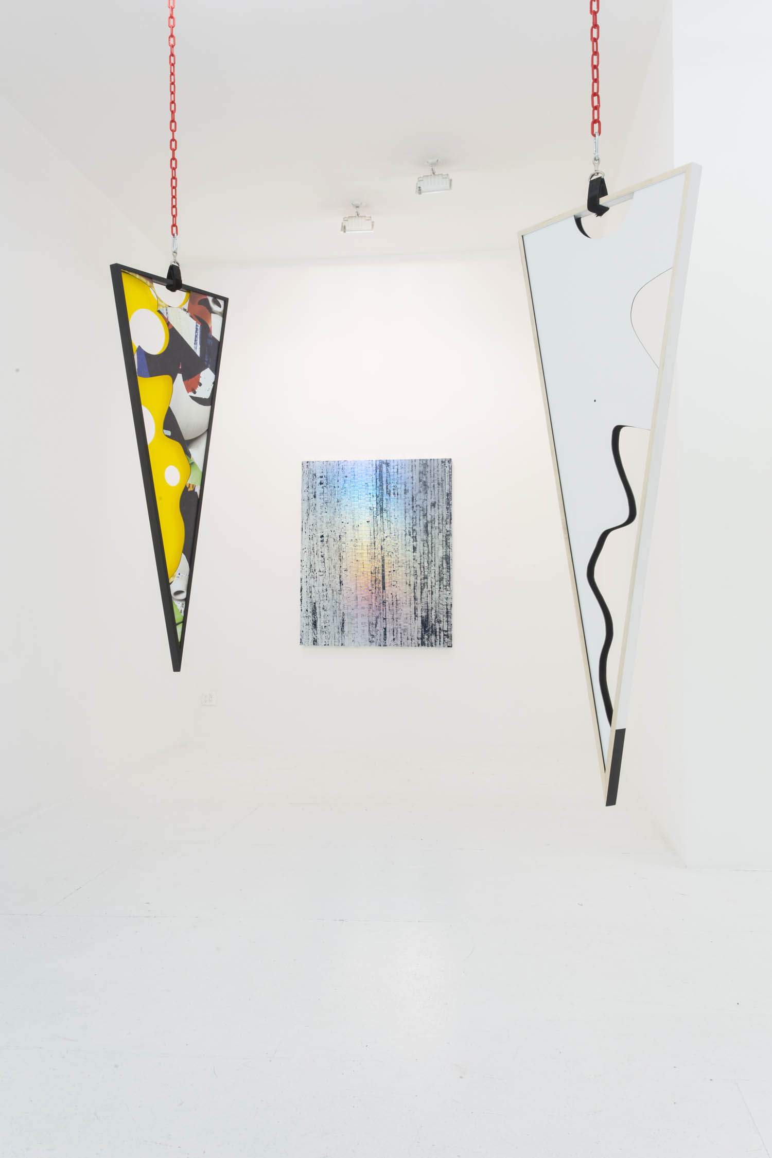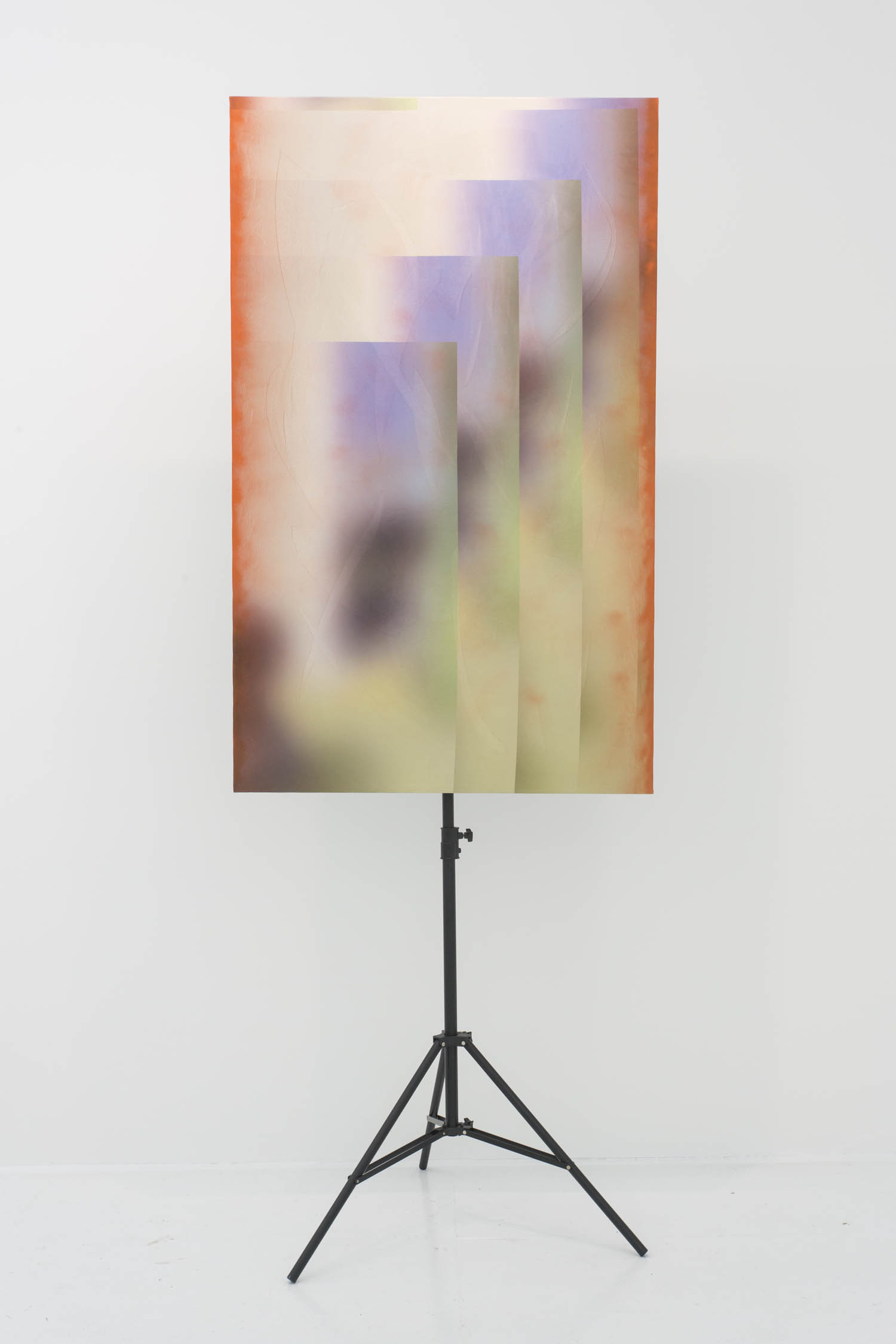 Some artworks in the exhibition more literally blend photography and painting, as in the work of Wil Murray and Matthew Stone. Wil uses multiple darkroom tactics to bring emulsion photography into a sculptural form, sending paint marks on a long journey that ends as hand-colored fibre-based prints, acrylic paint, masonite and wood. Matthew Stone also uses photographic processes to look at painting as a genre: Matthew paints on glass, 3D scans the topography of the stroke, 3D composes the painting in digital space like a sculptor, and outputs the work onto plexi and linen.
