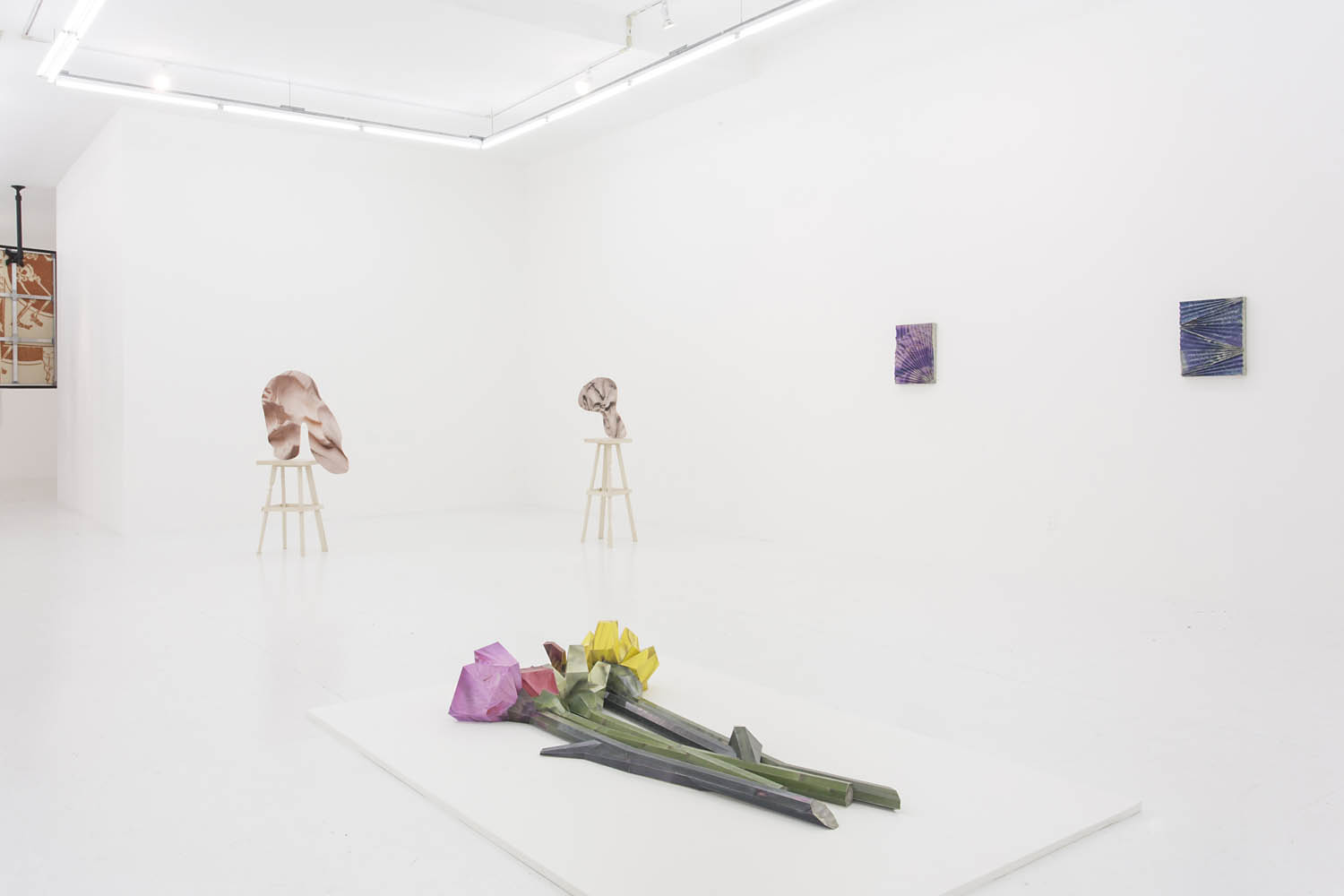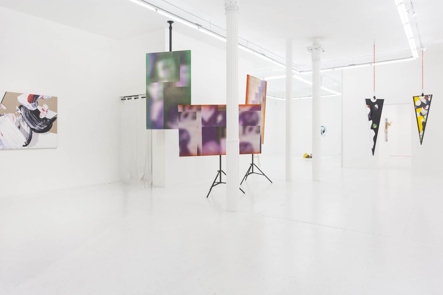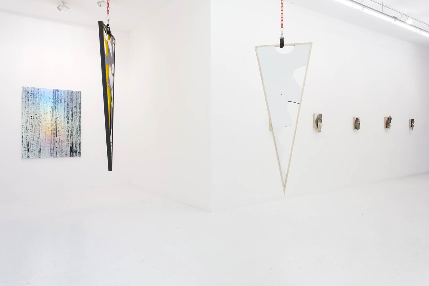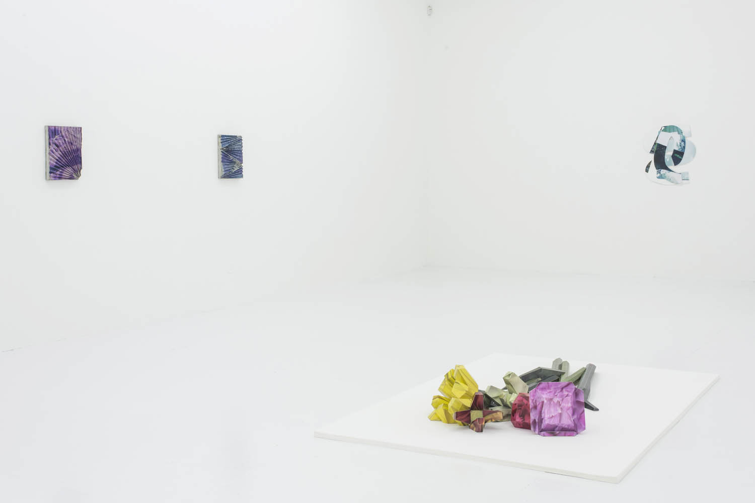 Some artworks in the exhibition more literally blend photography and painting, as in the work of Wil Murray and Matthew Stone. Wil uses multiple darkroom tactics to bring emulsion photography into a sculptural form, sending paint marks on a long journey that ends as hand-colored fibre-based prints, acrylic paint, masonite and wood. Matthew Stone also uses photographic processes to look at painting as a genre: Matthew paints on glass, 3D scans the topography of the stroke, 3D composes the painting in digital space like a sculptor, and outputs the work onto plexi and linen.
