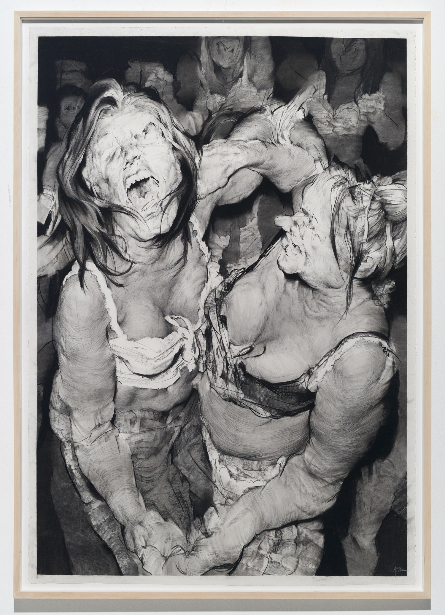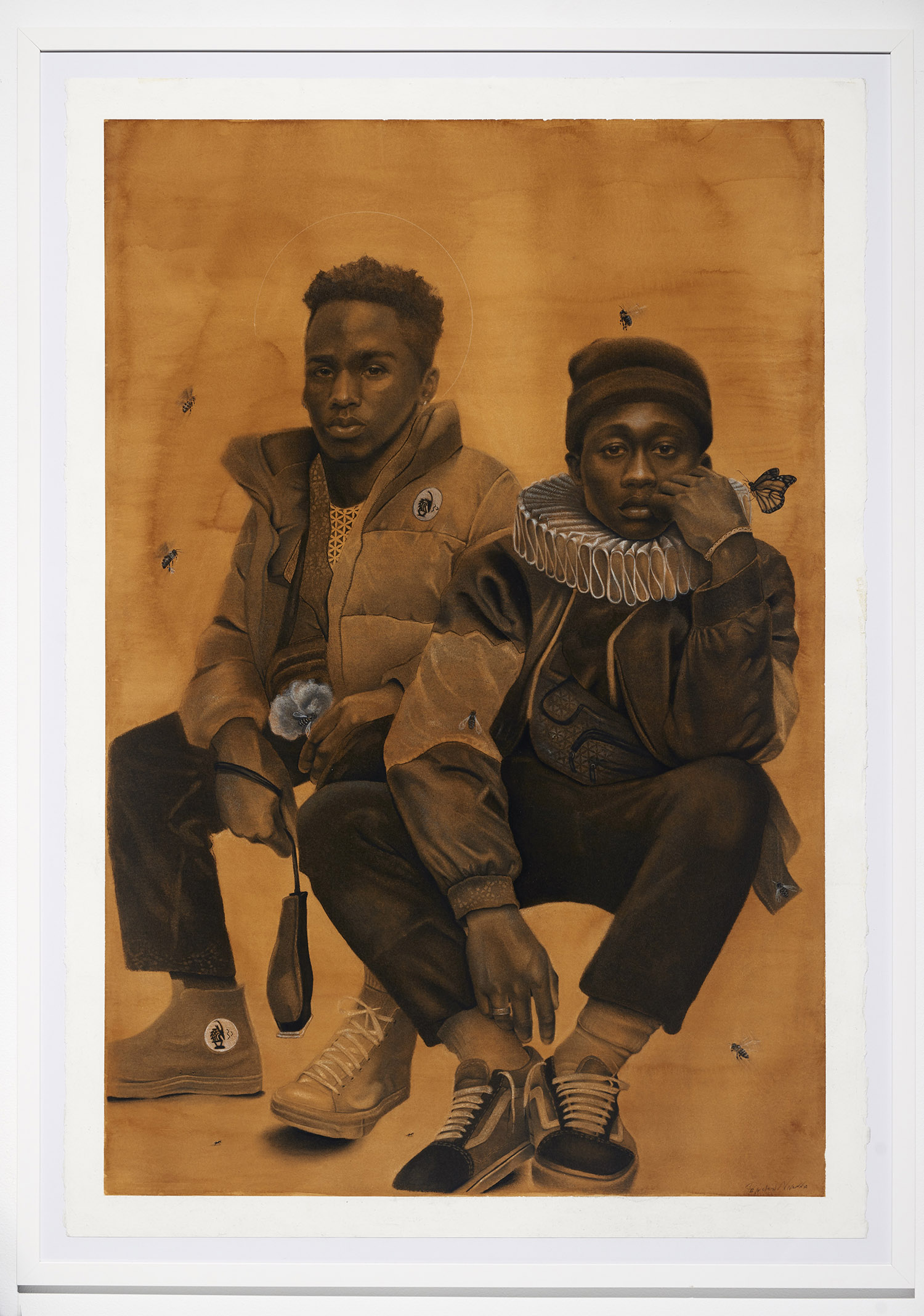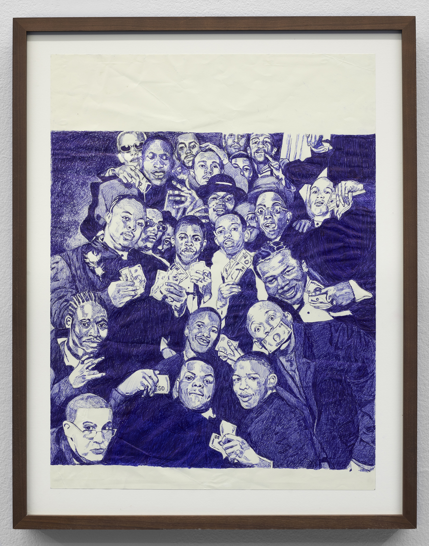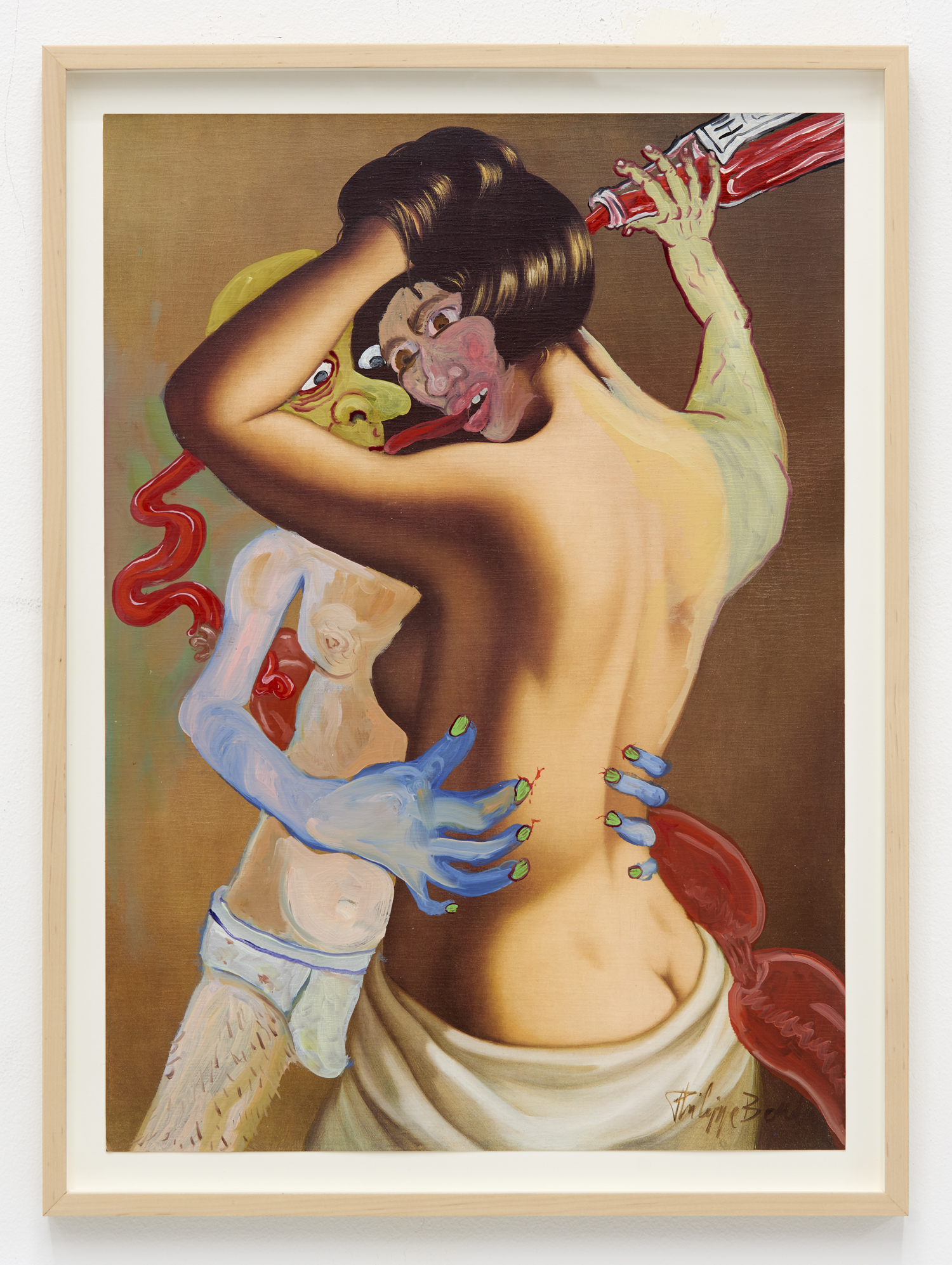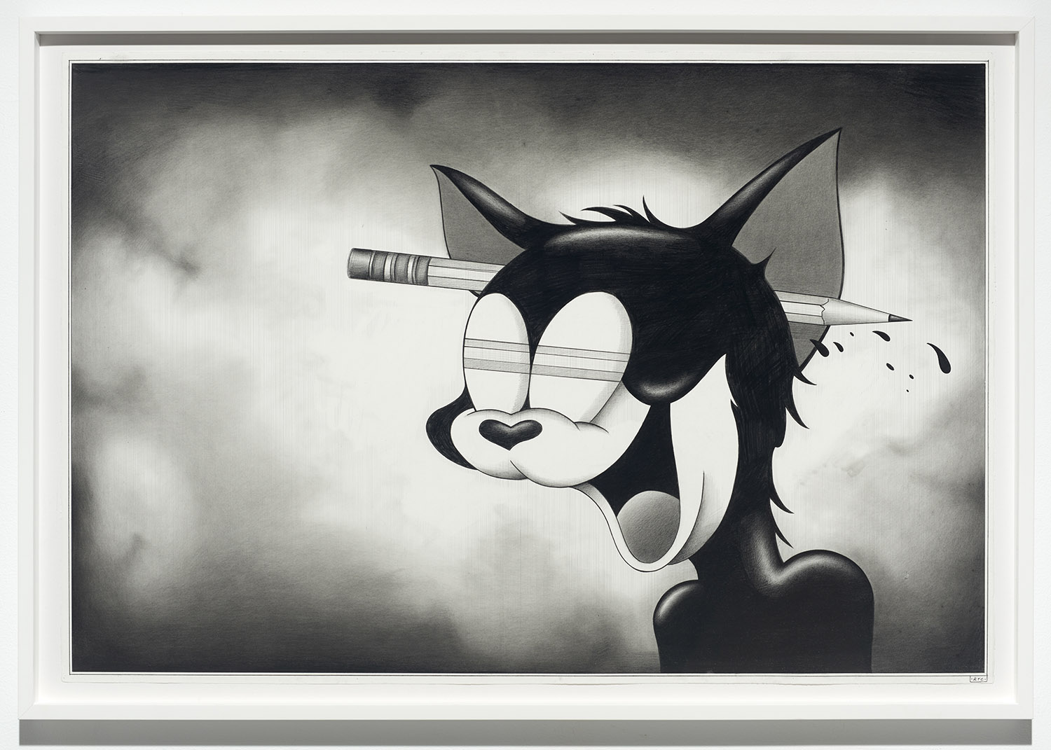 This show is jam-packed so please grab a guide at the front; loosely it begins with some amazing abstract works like the prime palindrome-driven drawings of Xylor Jane, starts to take shape with the collaged works of Coady Brown and Chris Johanson, then kinda explodes in the main room in full comic figurative form. A Karl Wirsum drawing is in the mix there to show where a lot of the young artists are finding inspiration, Donald Baechler to further elaborate on the influence. In the big back gallery the show continues from comic to more realist works, some beautiful portraiture from Prinston Nnanna and skills-to-burn Eric Yahnker pictured above. Fine linework features here with graphite masters Ryan Travis Christian and Aurel Schmidt, Frank Selby and ink champ Evan Gruzis.