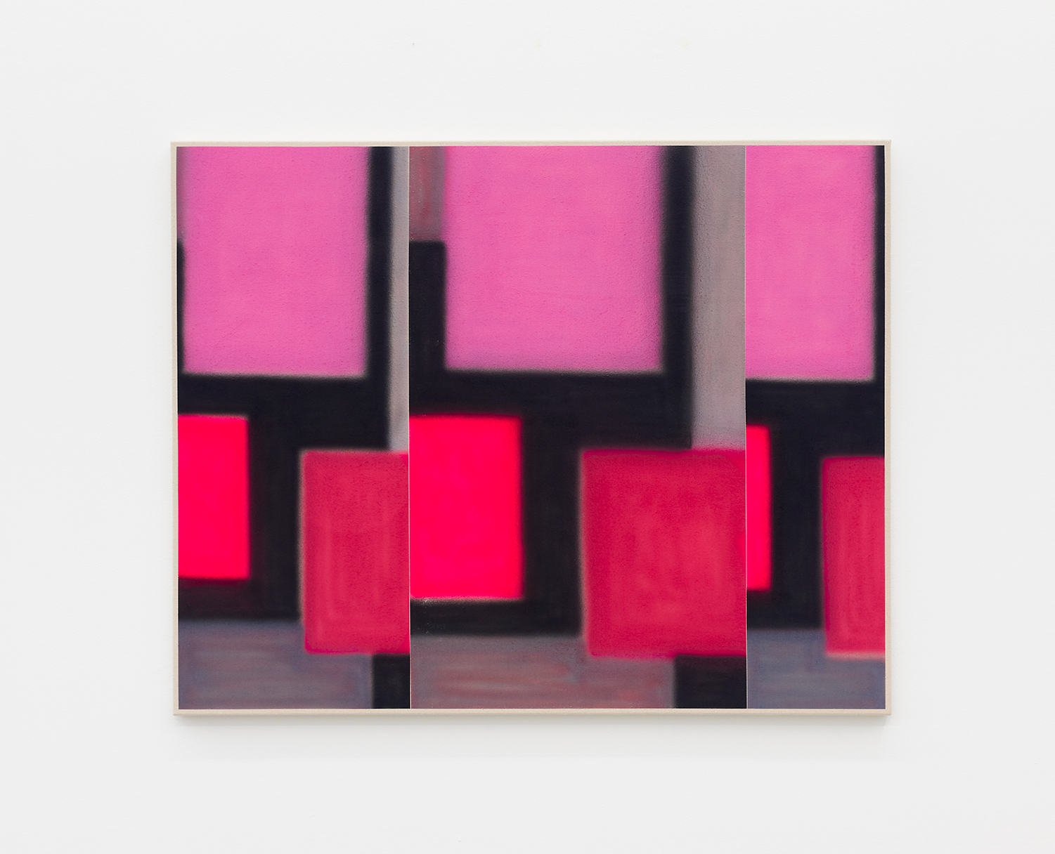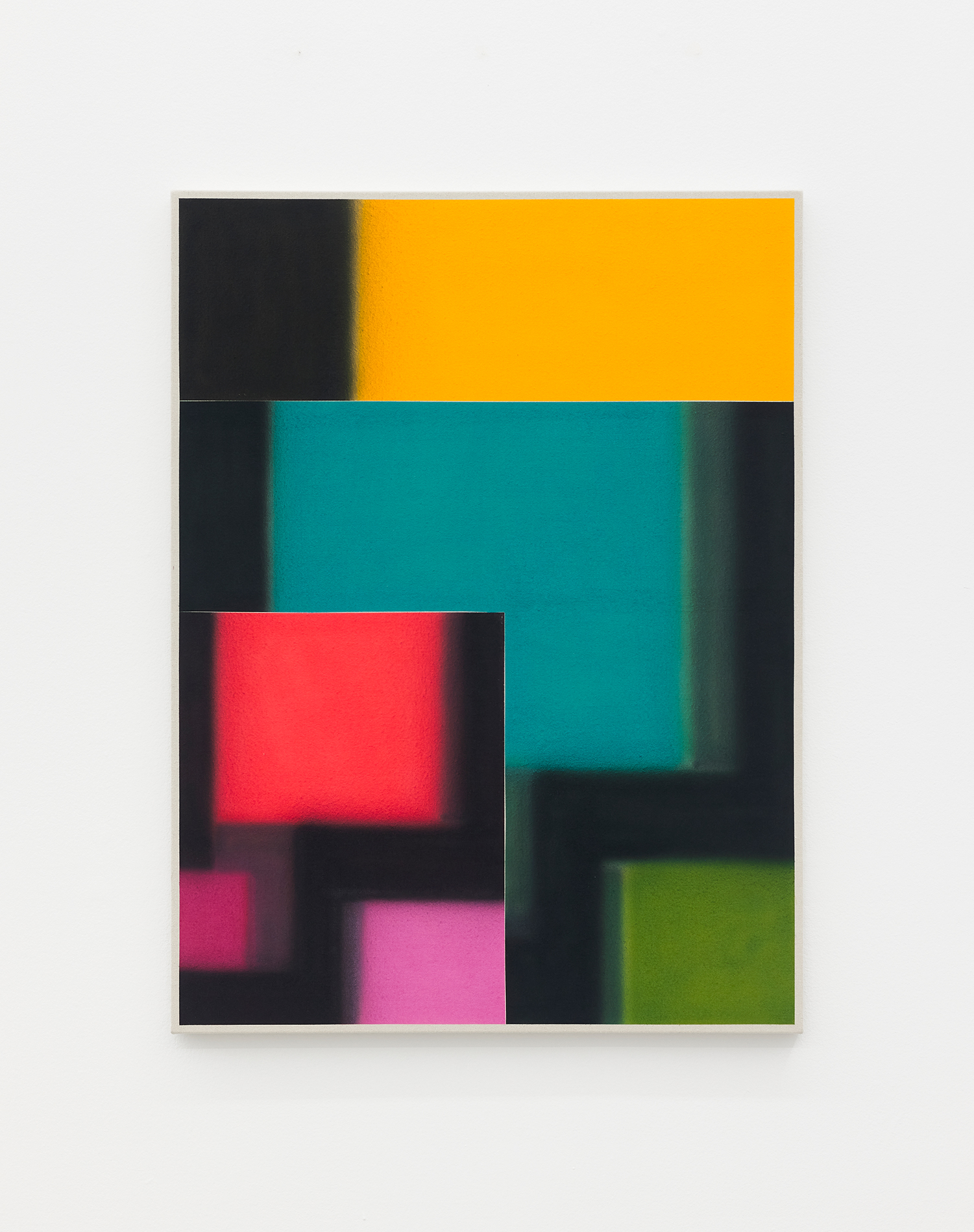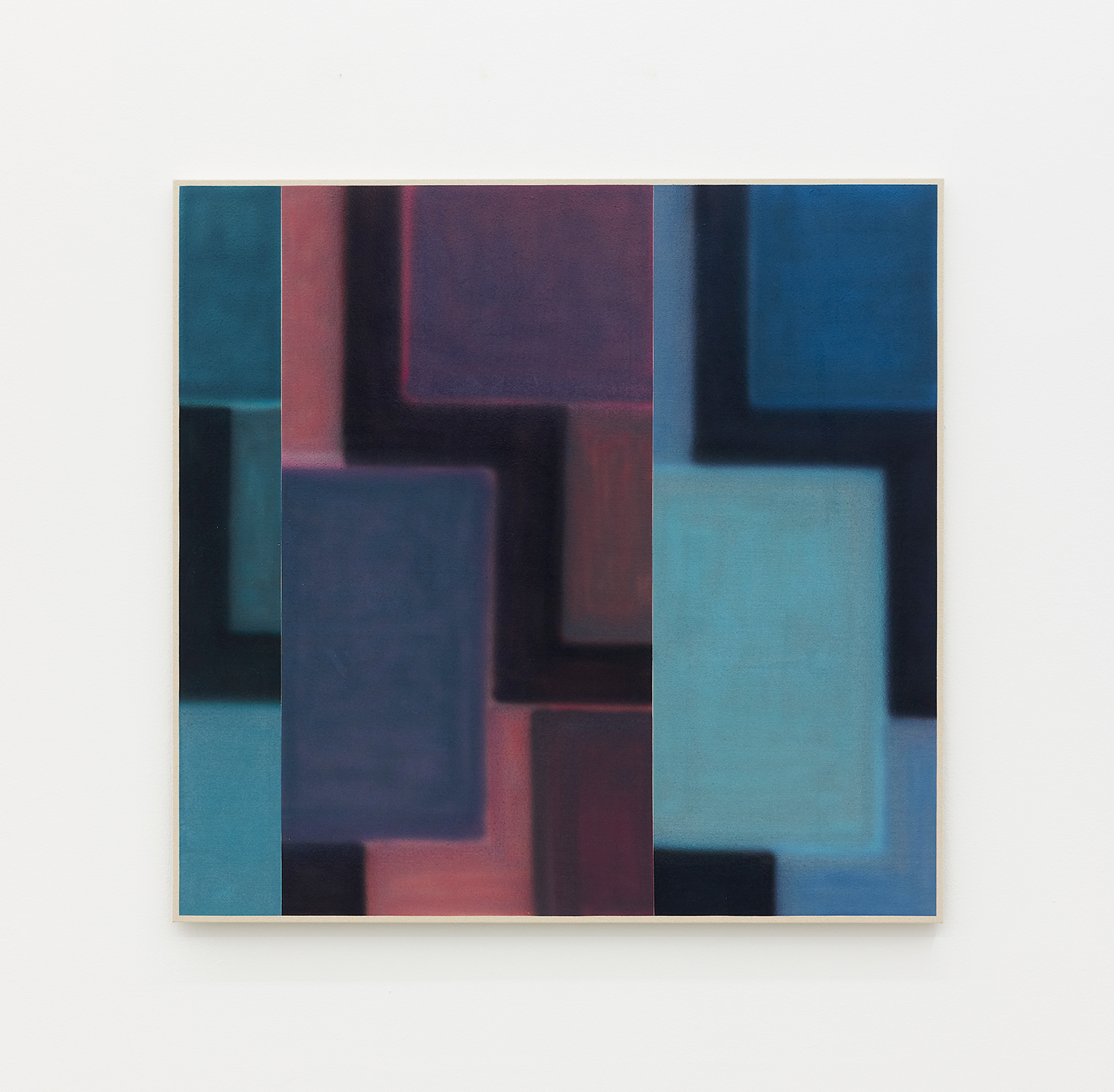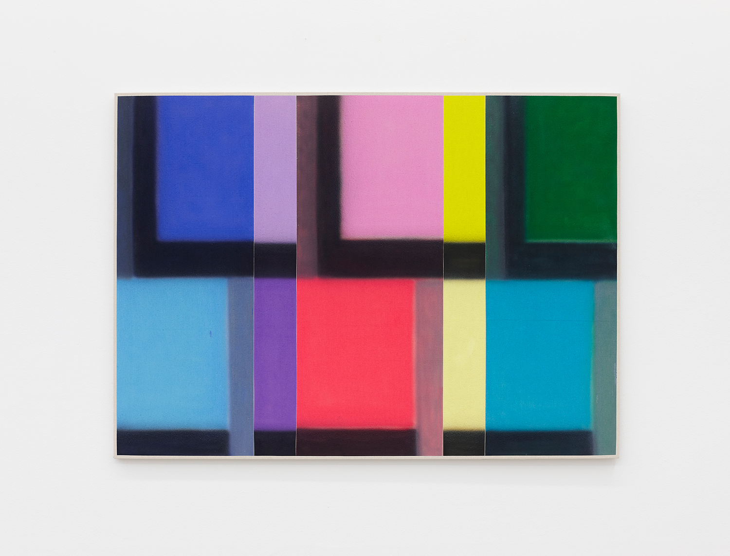 For this exhibition we juxtapose eight new paintings by Canadian artist Kristine Moran with six new acrylic paintings by Brooklyn-based artist Russell Tyler. The repeated geometric shapes across these fourteen paintings resonate in surprising ways, as Moran’s abstracted swimmers splash into the black-edged rectangles of Tyler’s proliferating polygons. Hung in a gallery painted three feet up each wall with aqua blue, the show wades into the territory between figuration and abstraction with interesting results.