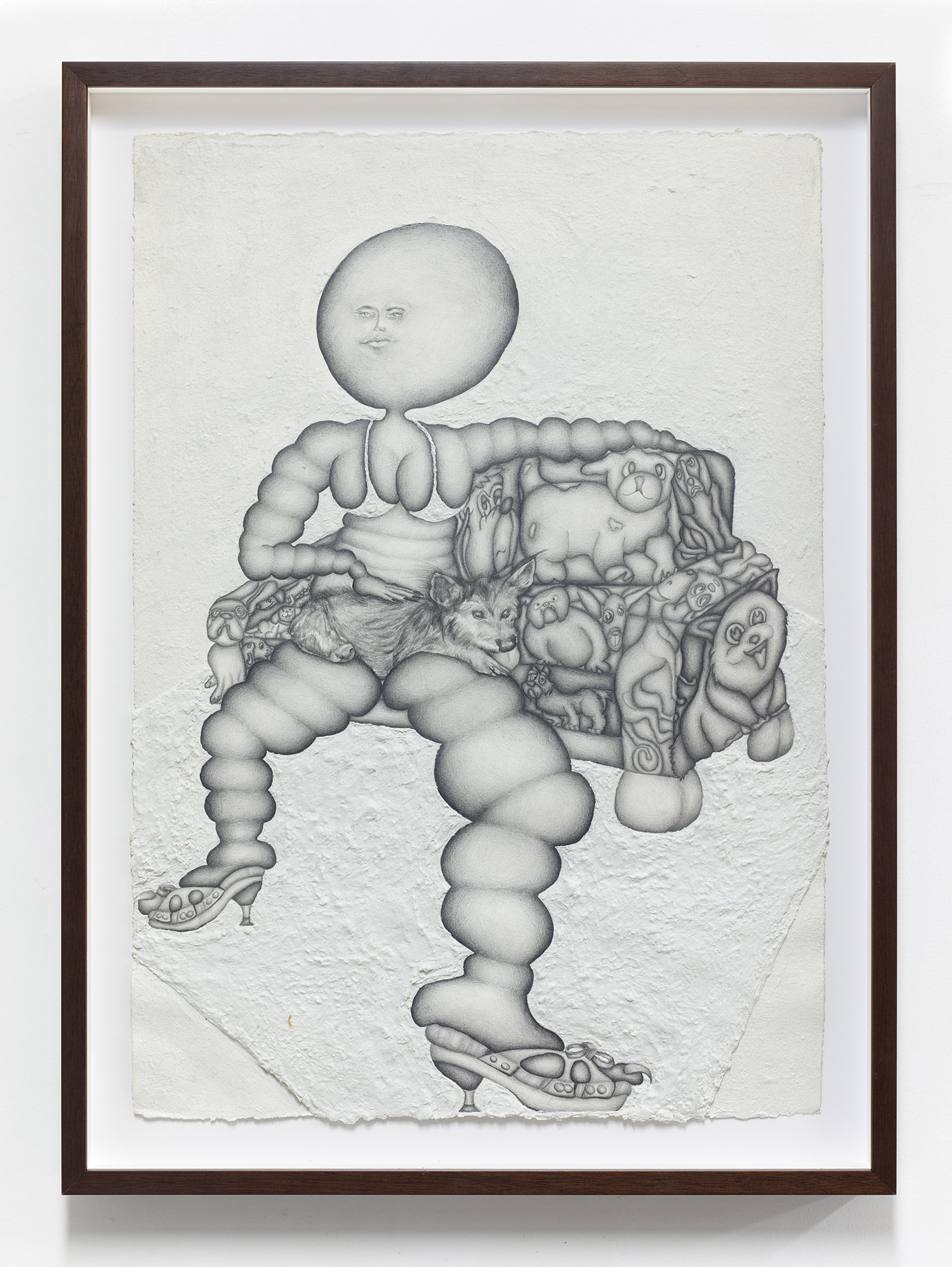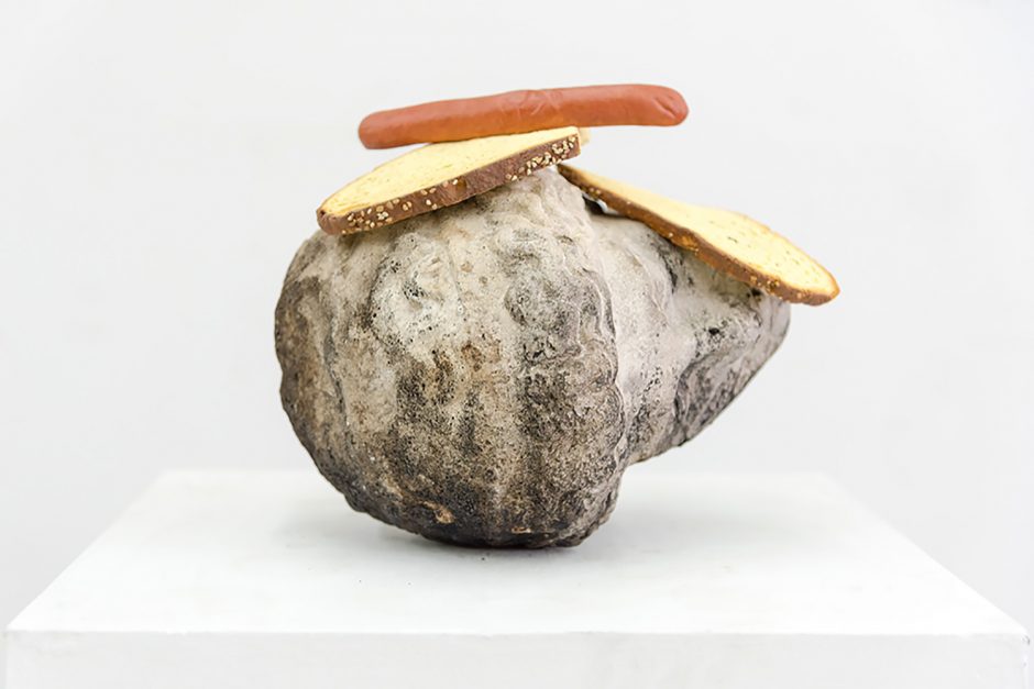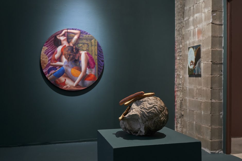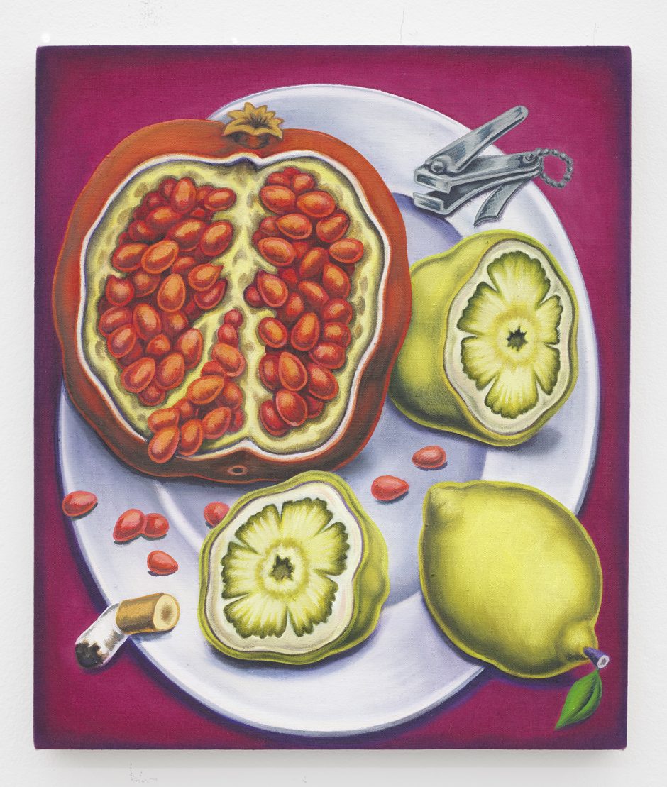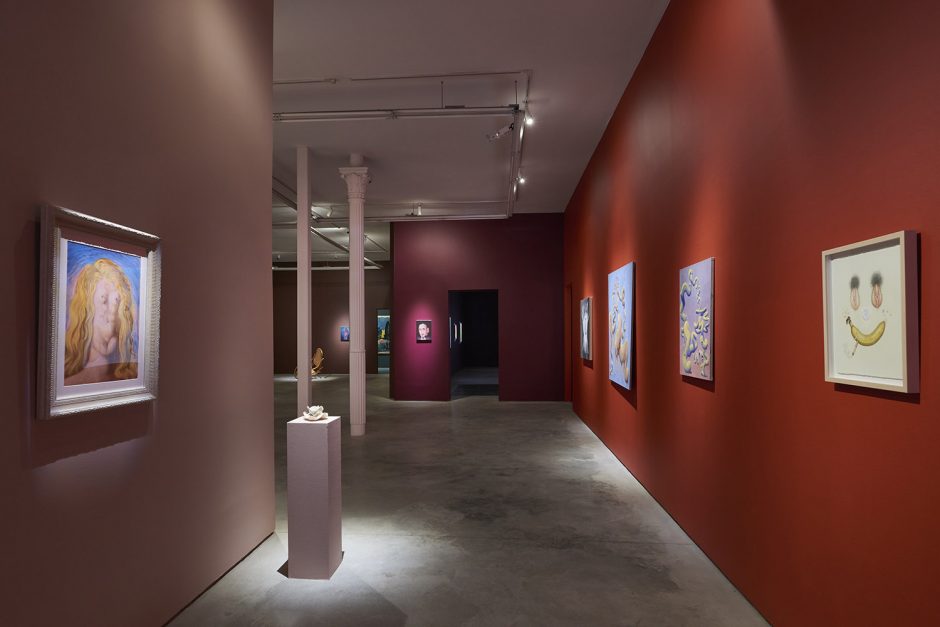 Today we don’t need to label artists female and put them in female shows; we don’t even need to label artists surrealistic; I’ve always found manifestoed art movements of the past helpful to organize thought and to hone the timeliness of their generational thinking, but they are at best a jumping off point to get the engine going. In fact, multiple artists in this show specifically said I should “stop calling it the Surrealism and Feminism show for goodness’ sake.” Artists today seem to prefer to be in group shows with random song lyric titles that have no theme rather than be grouped in any way, but I think we can take the middle ground: I picked the artists in the show because they had a whiff of surrealism about them, and then went out in search of a few surrealist works to flavor the sauce. Pedro Pedro’s pomegranate painting has a surrealist aspect to it but far more affinity with the Peter Saul show down the street at the New Museum, or the Chicago Imagists (who were explicitly, avowedly inspired by Surrealism). Aurel Schmidt isn’t a surrealist artist but she plays with a person like a cadavre exquis and I certainly needed at least one artist with the balls to depict some vaginas!