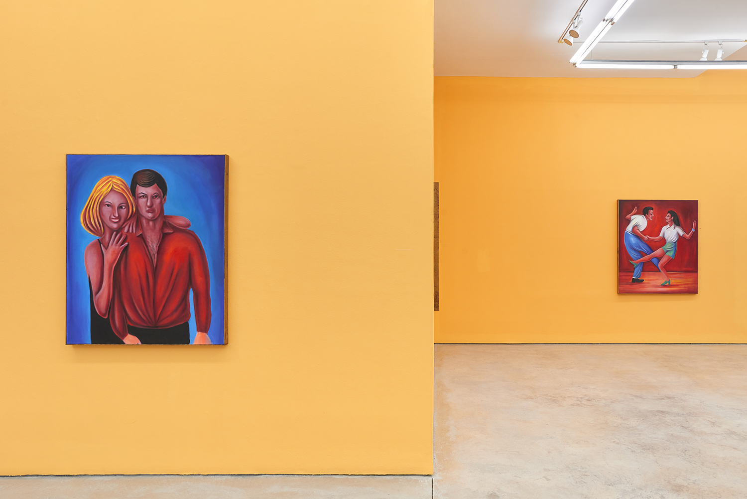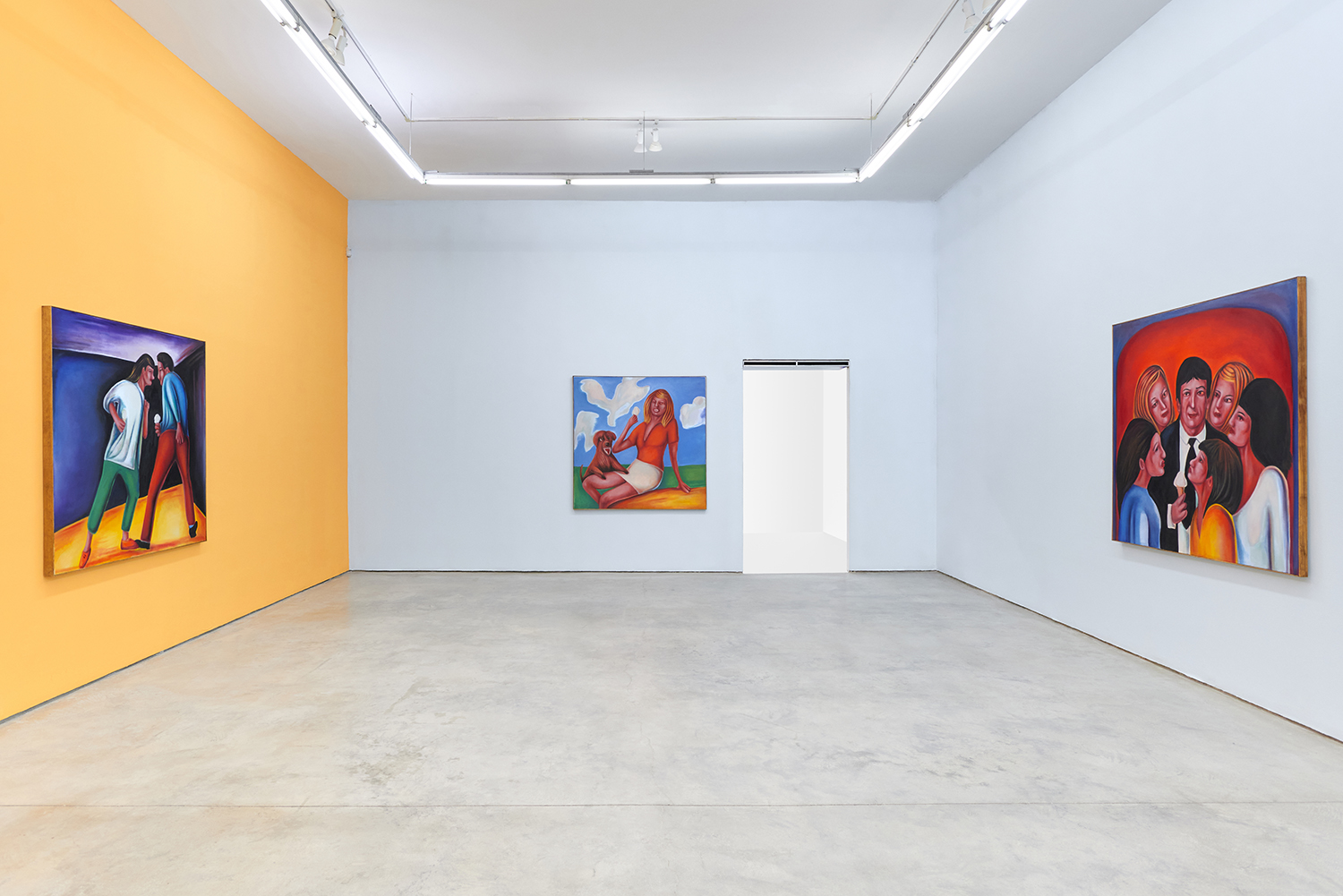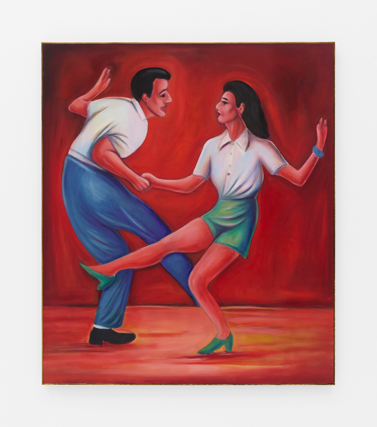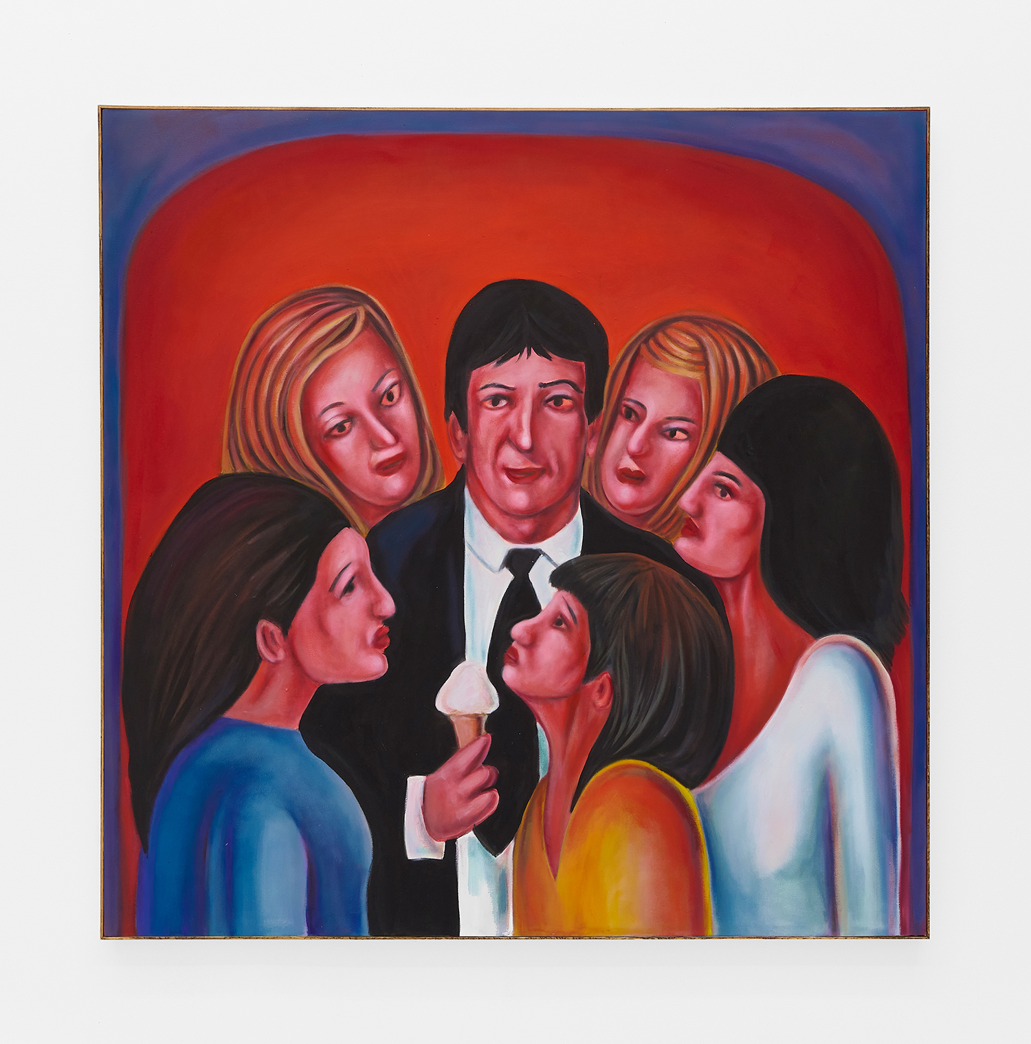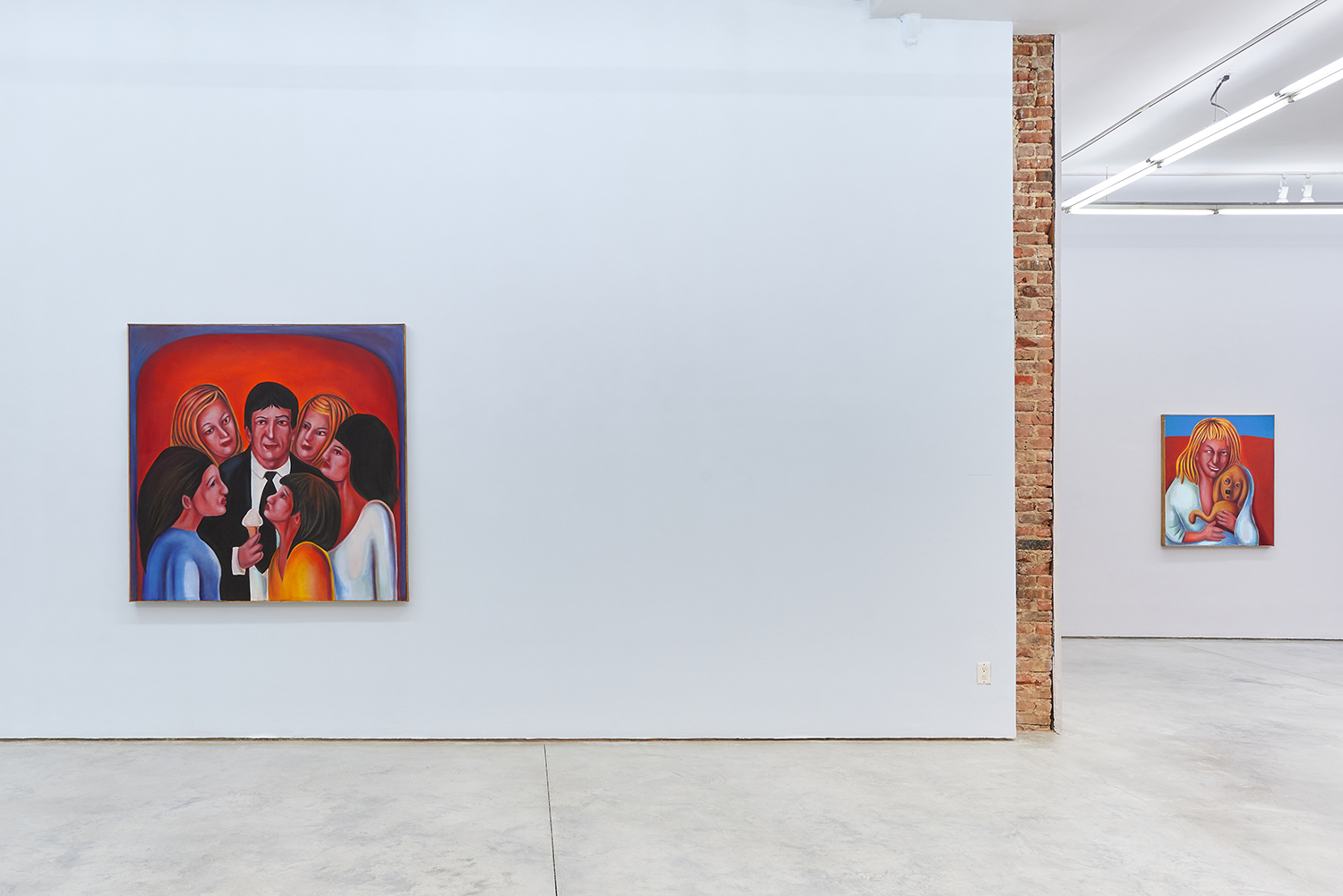 Vassilis’s subjects, from a very popular vaquero to a quartet of slow-dancers, all seem aware of an external gaze, bracing for it. Off-kilter like a thrift store discovery, gnarly like a found photo in a stranger’s family album, these fifteen paintings depict women, couples, dogs, dancing—and lots of ice cream. Scoundrel men, unattractive ladies or the actual puppy dogs offered might be referenced by the title, which here feels like a mandate: “Must Love Dogs.”