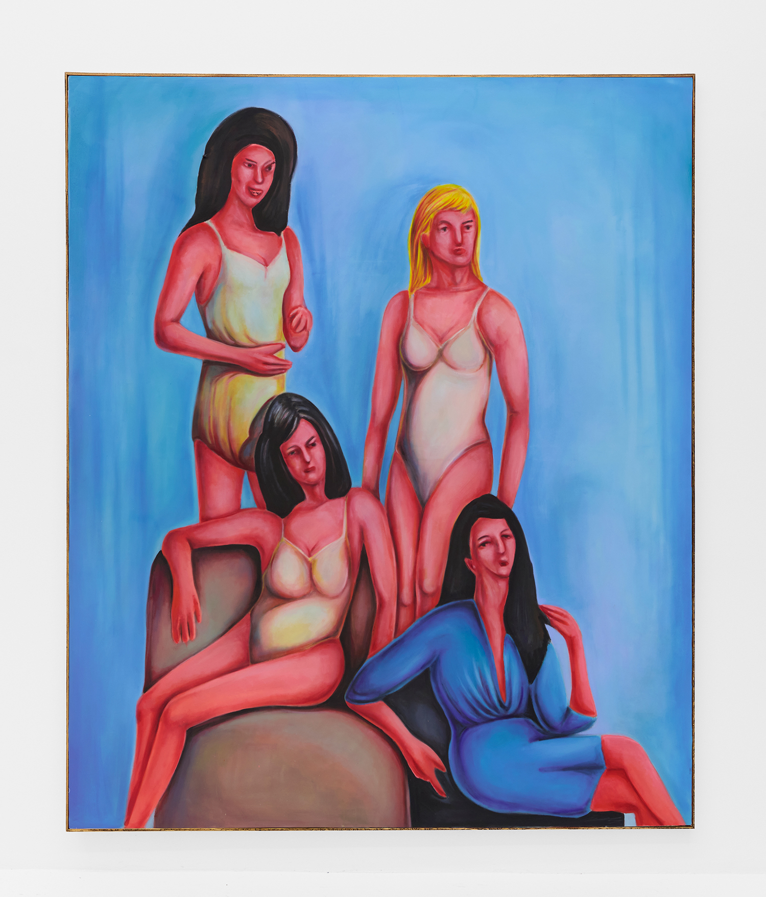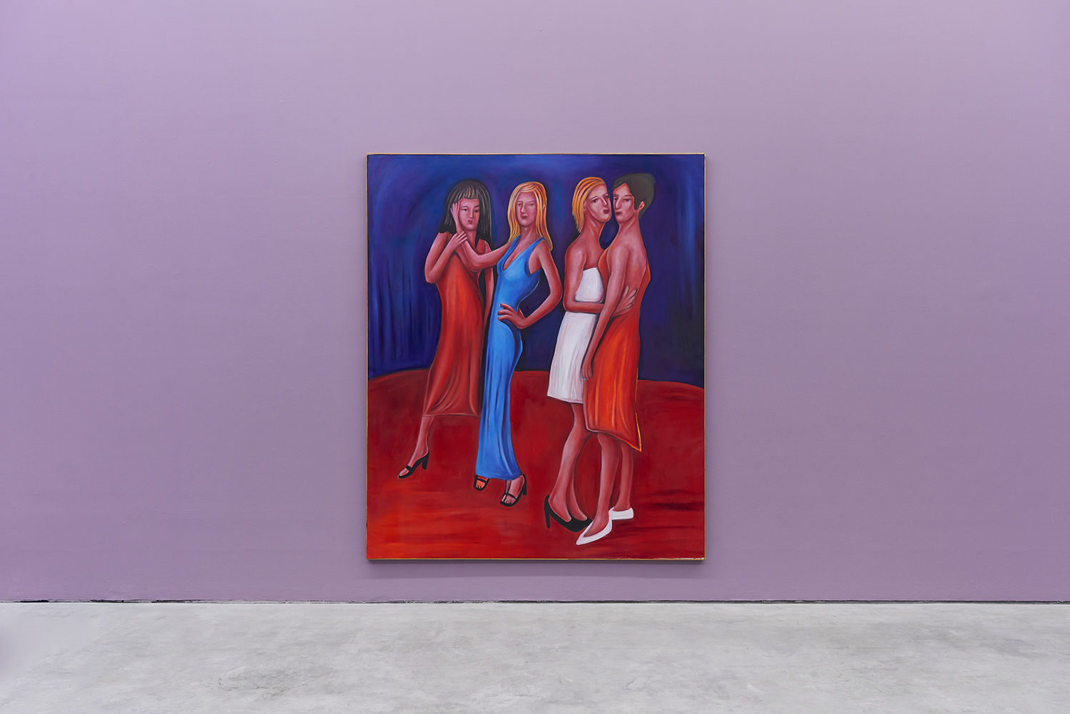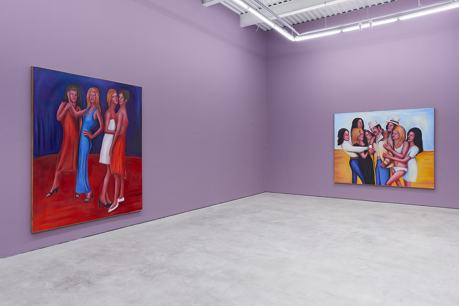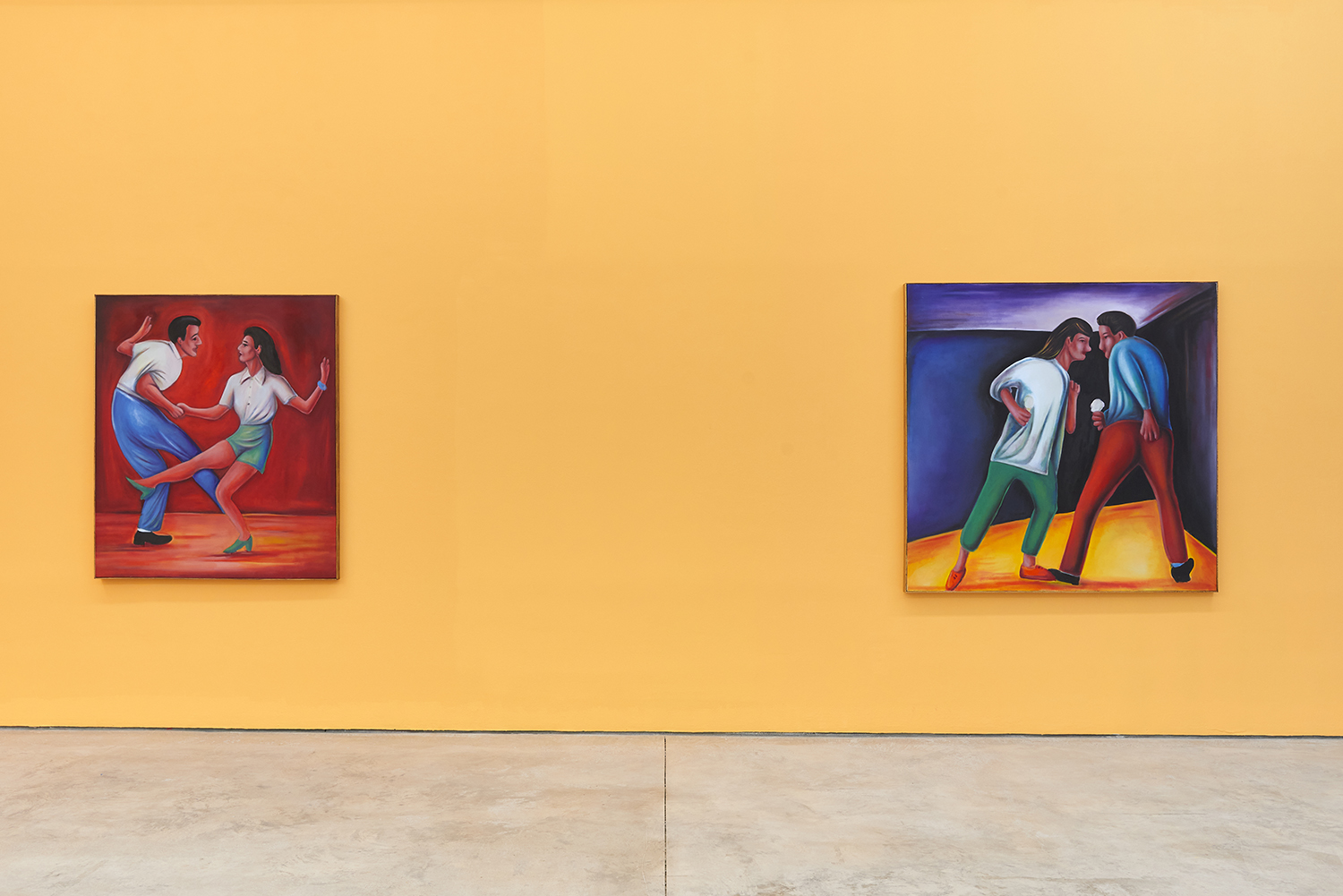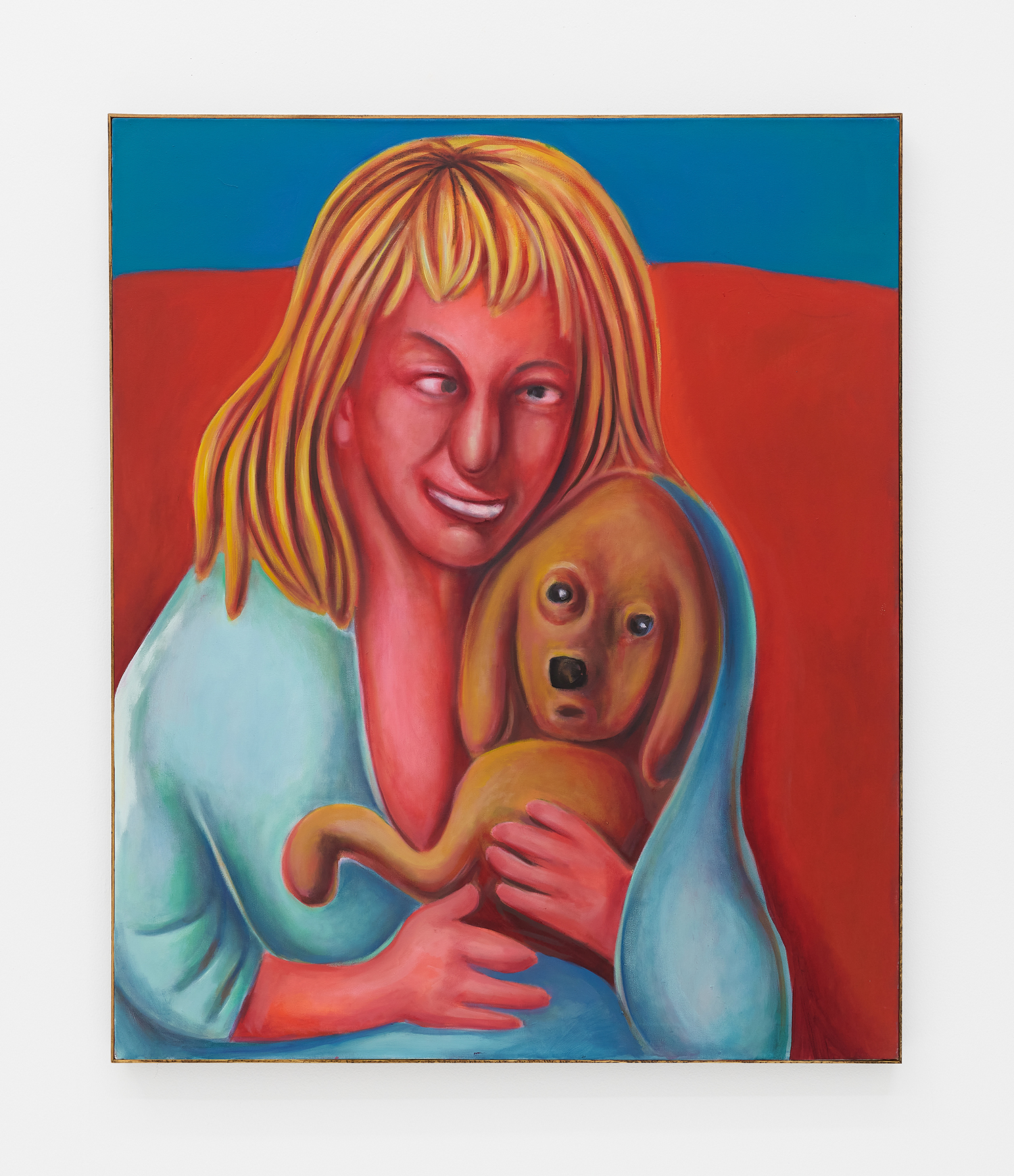 Vassilis’s subjects, from a very popular vaquero to a quartet of slow-dancers, all seem aware of an external gaze, bracing for it. Off-kilter like a thrift store discovery, gnarly like a found photo in a stranger’s family album, these fifteen paintings depict women, couples, dogs, dancing—and lots of ice cream. Scoundrel men, unattractive ladies or the actual puppy dogs offered might be referenced by the title, which here feels like a mandate: “Must Love Dogs.”