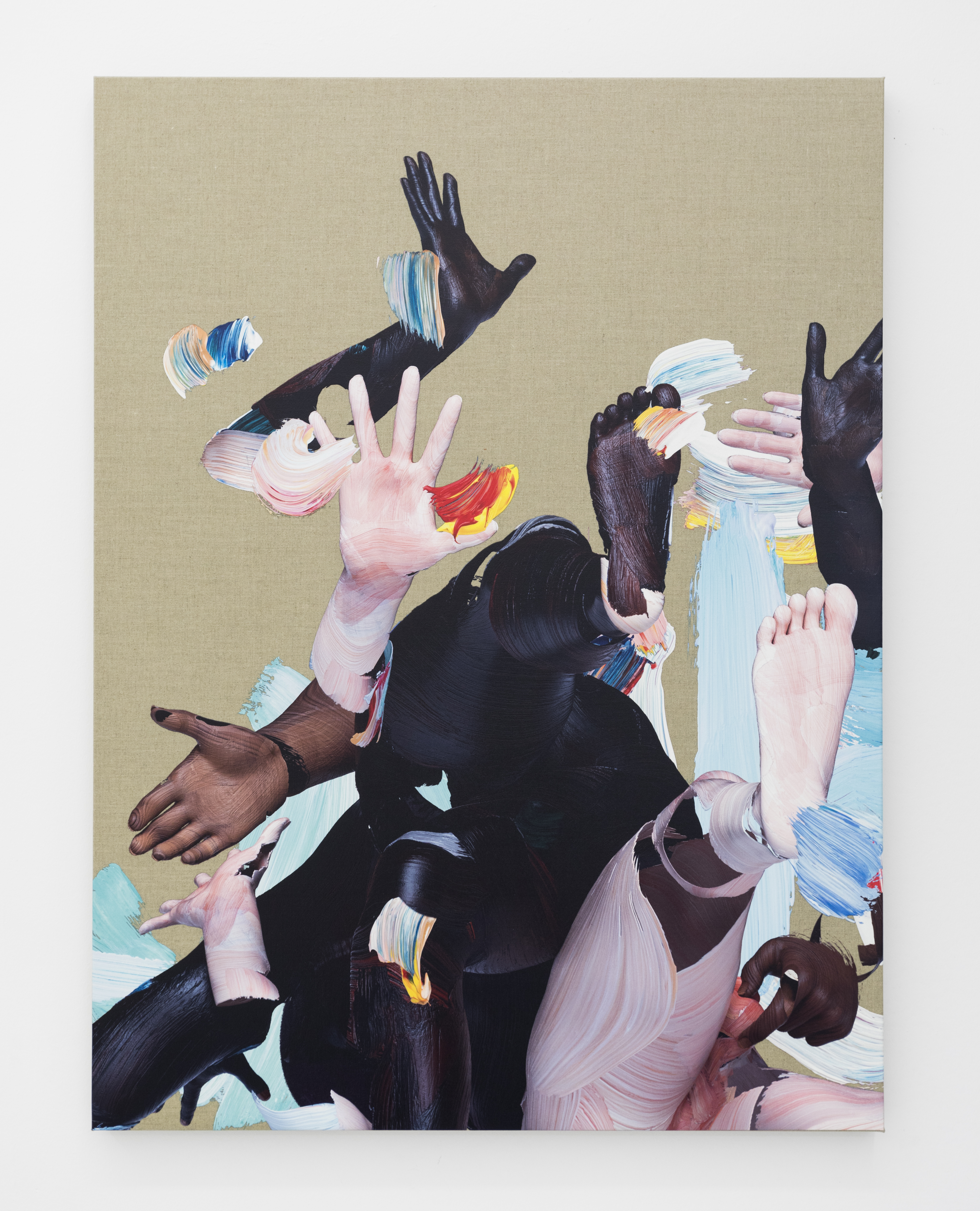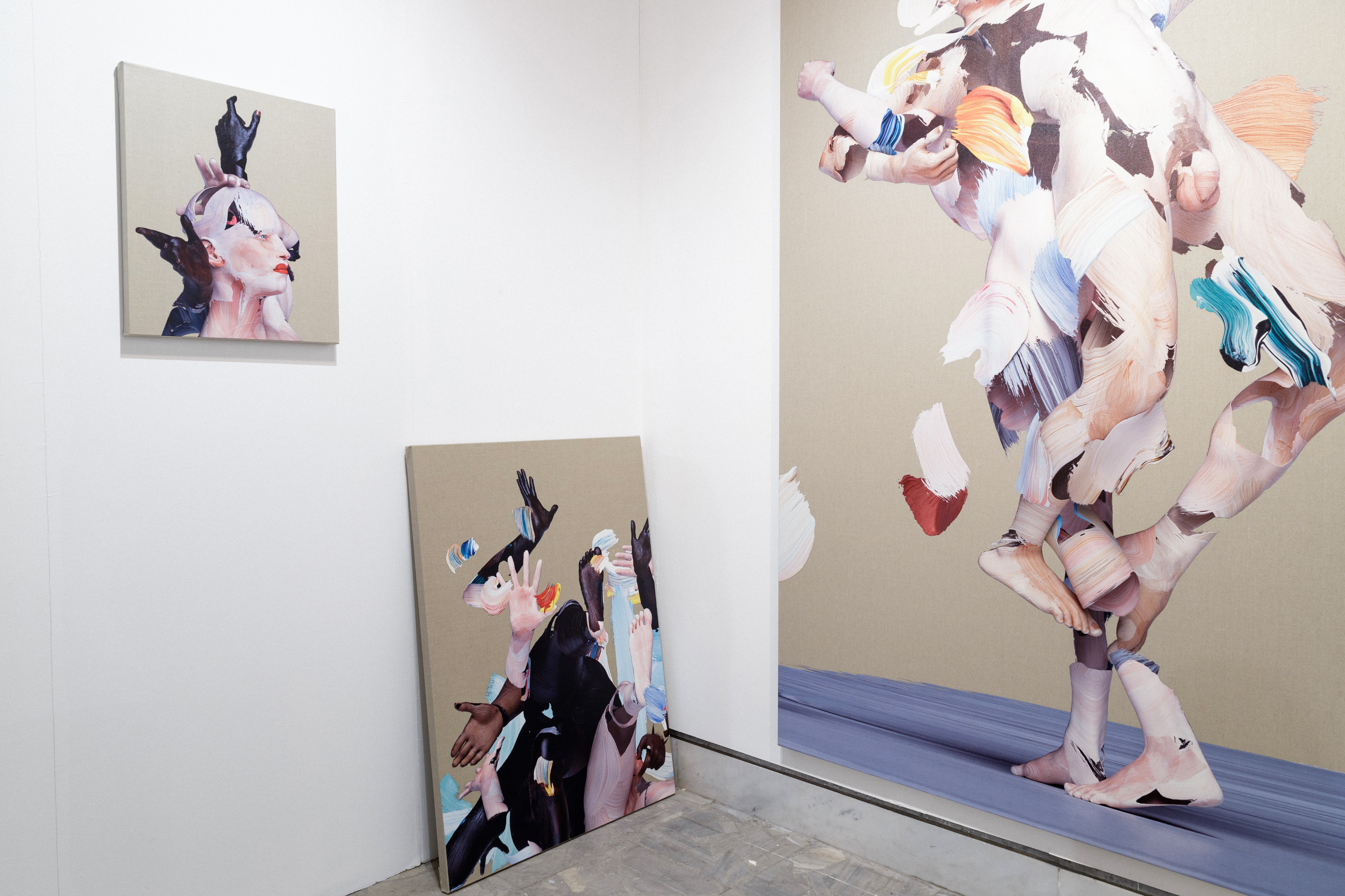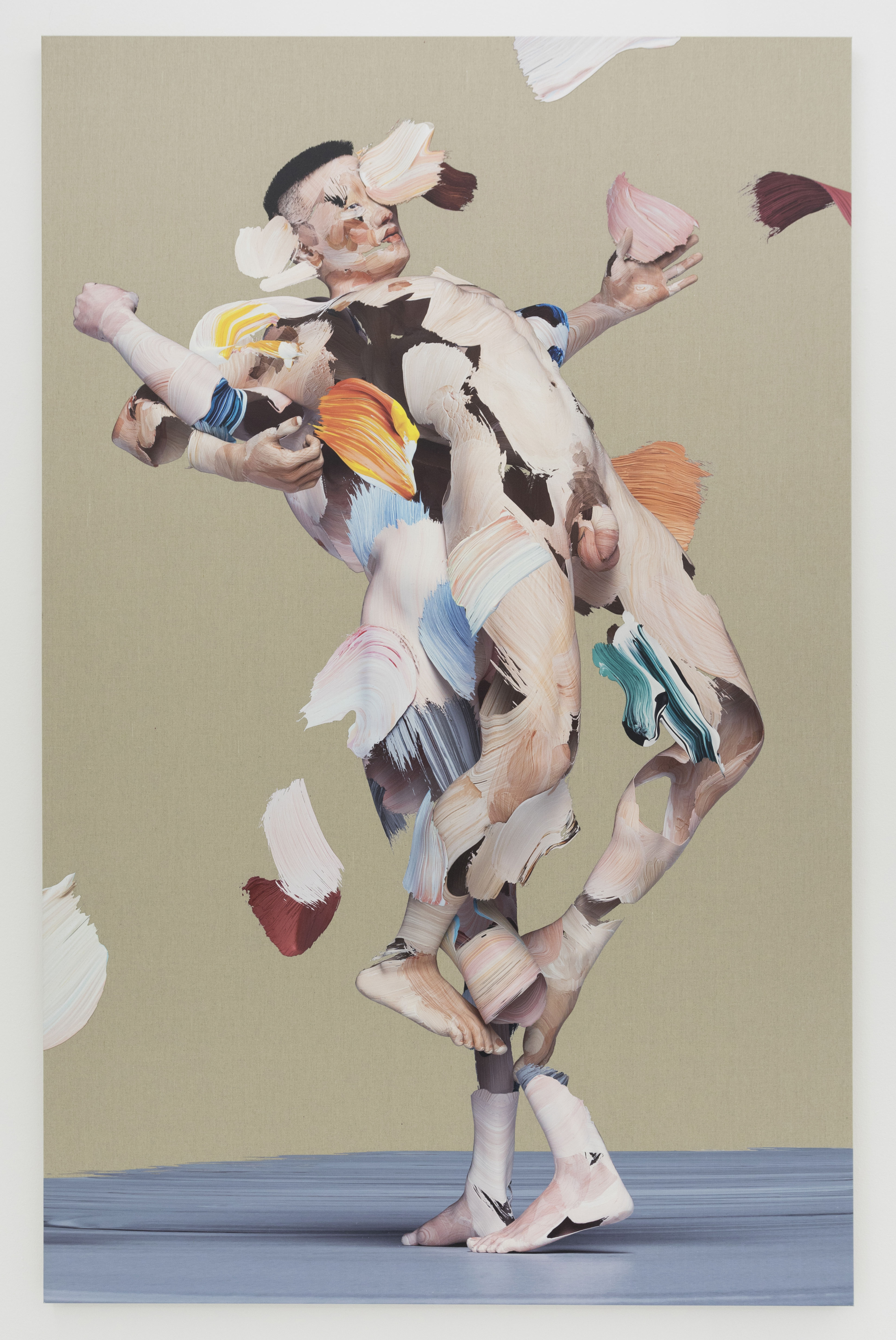 Matthew Stone offers a new digital approach to traditional painting: by photographing paint strokes made on glass and working in various 3D software, the artist is able to sculpt bodies in three dimensions using layers of these painted marks. These 3D compositions are then printed onto linen canvas. The resulting imagery intersects photography, painting, and sculpture; analog and digital, hyper-real, disrupting the tradition of painting in art history. Besides exploring the interaction of two and three dimensionality, where painted strokes become sculpture that then becomes a stretched painting on linen, one key territory these works explore is the technological. Stone has always believed there to be a spiritual component to art making and the entry point to these new springtime works would be plant-consciousness, technology, and the body. Instead of the works trying to teach the viewer, these works are approached by artist, gallerist, and viewer from the position of a creative strategy “newly planted.” Stone graduated with a BA from the Camberwell College of Arts at the University of the Arts of London. His current show, NEOPHYTE, is his fourth solo show with The Hole and runs through June 24.