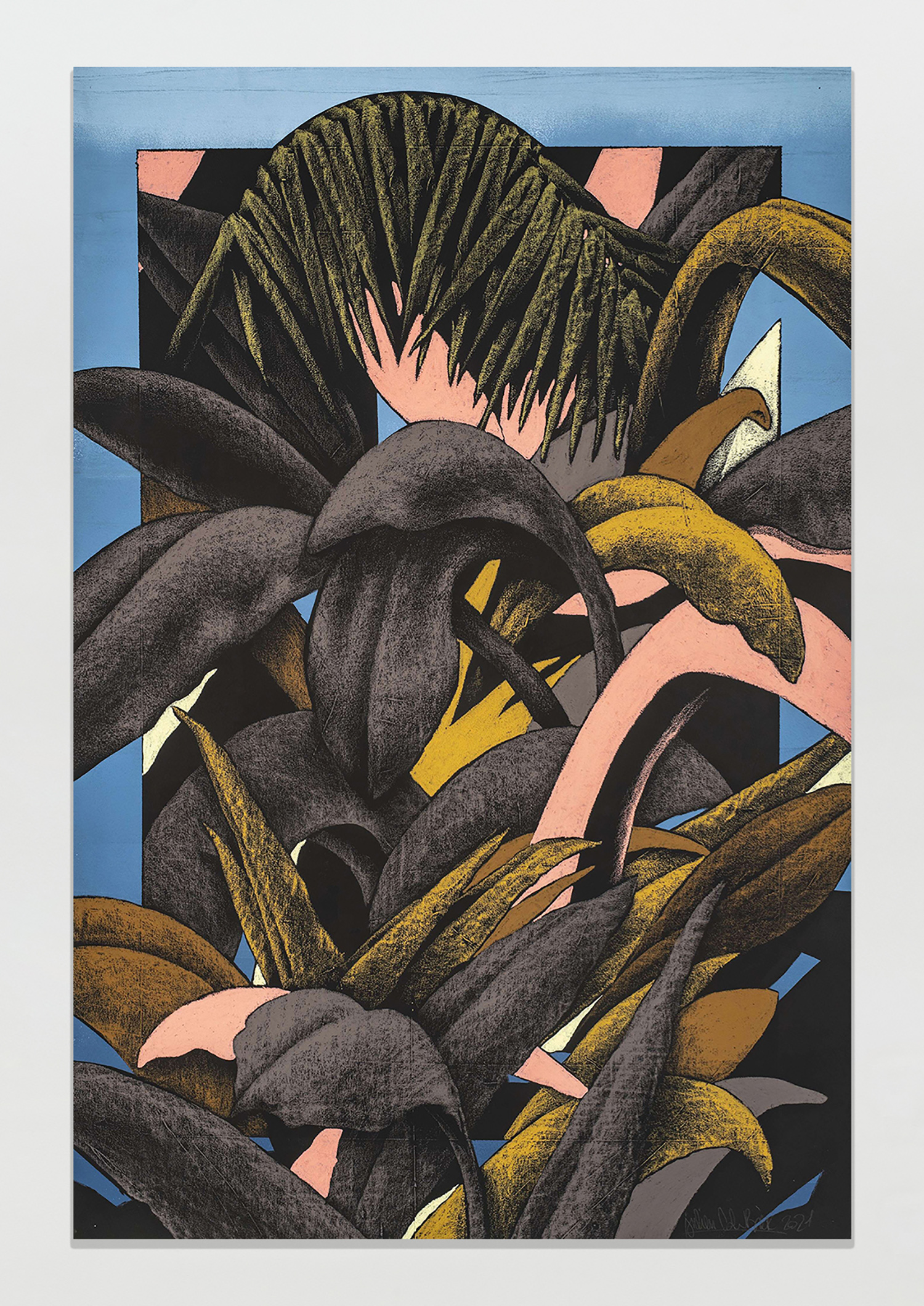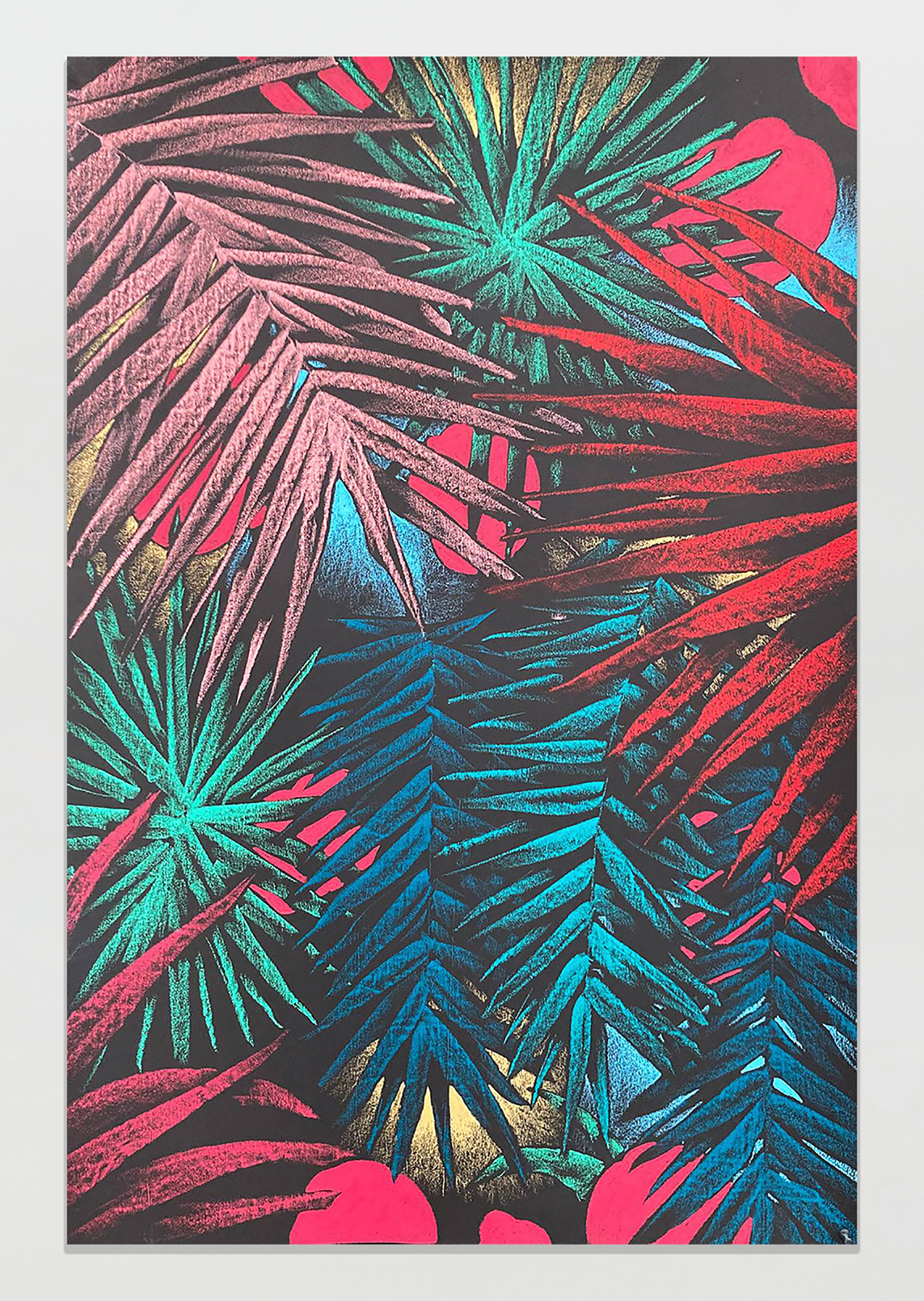 Julien Colombier, The Great Escape, 2021. Acrylic and pastel on paper and canvas, 47 x 32 inches, 120 x 80 cm.