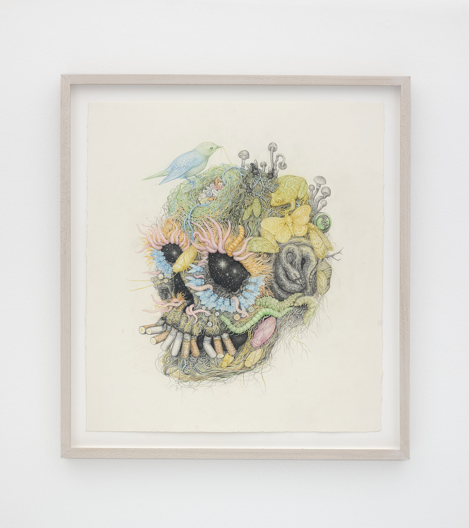 Aurel Schmidt, Necromancer, 2021. Colored pencil on paper, Paper Dimensions: 17 x 15 inches, 43 x 38 cm. Framed Dimensions: 21 x 19 inches, 53 x 48 cm.